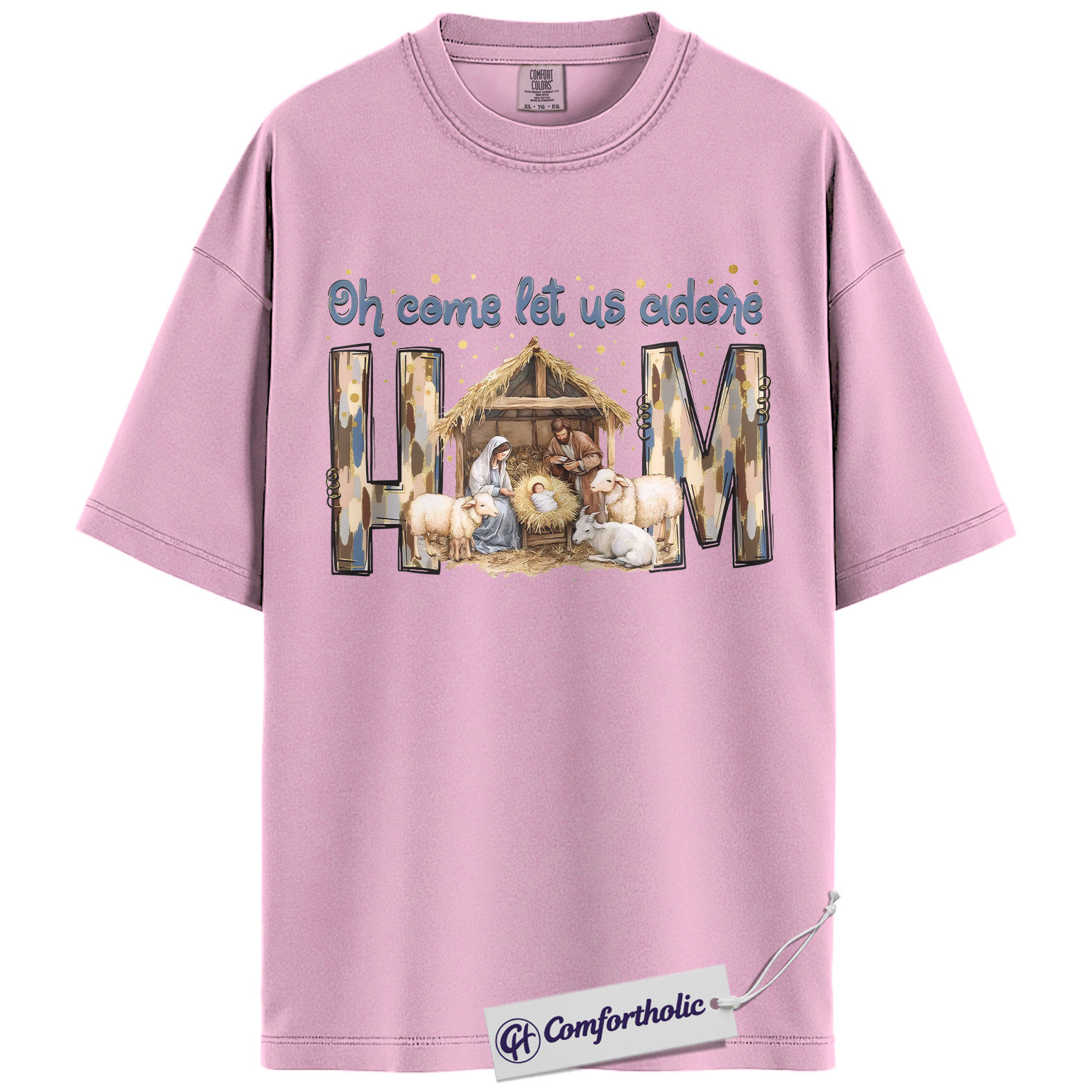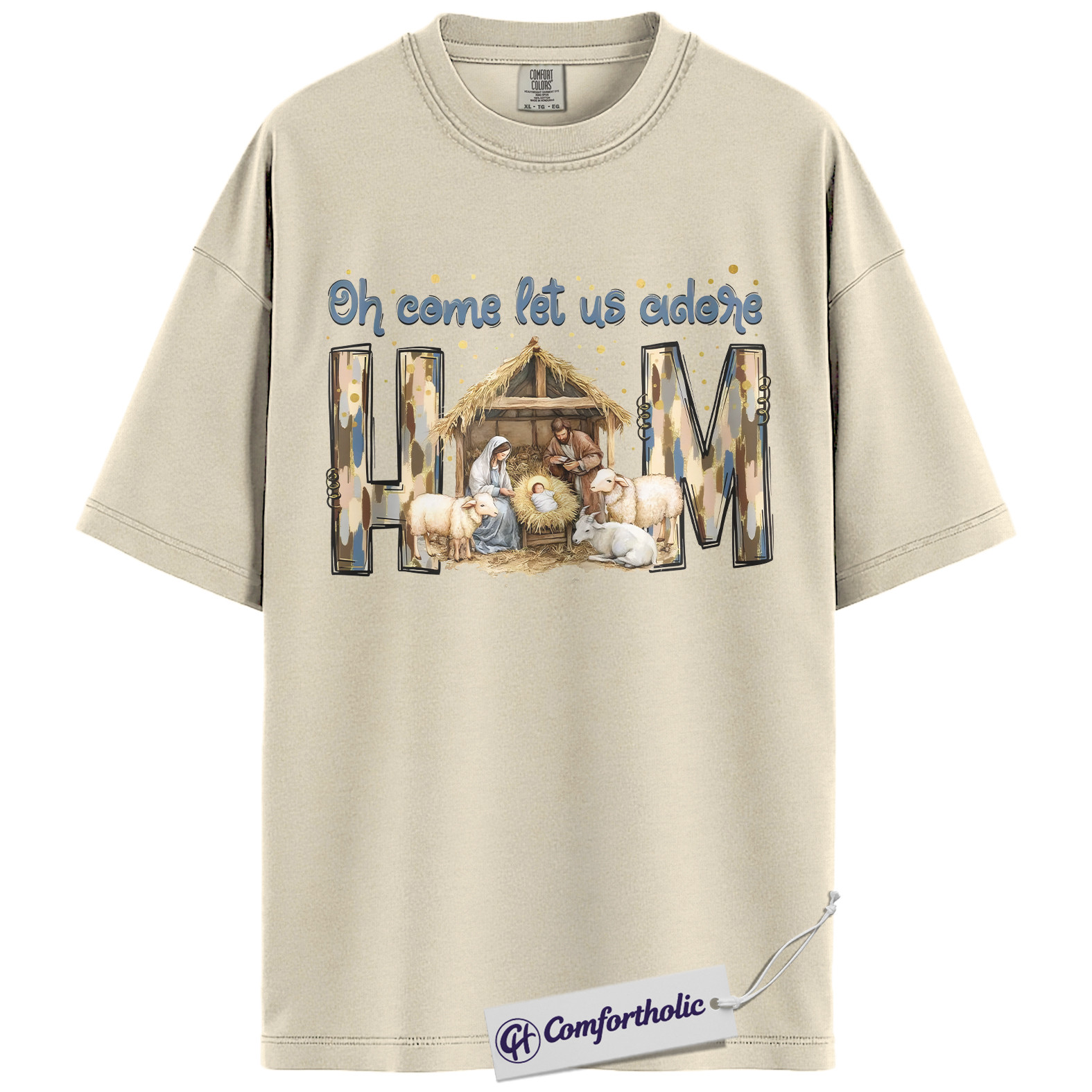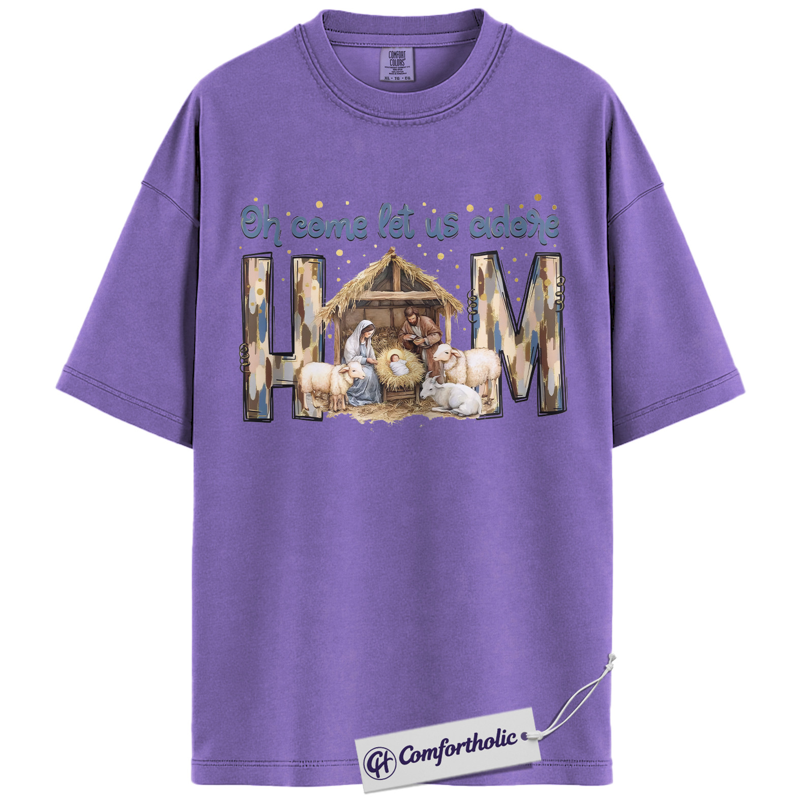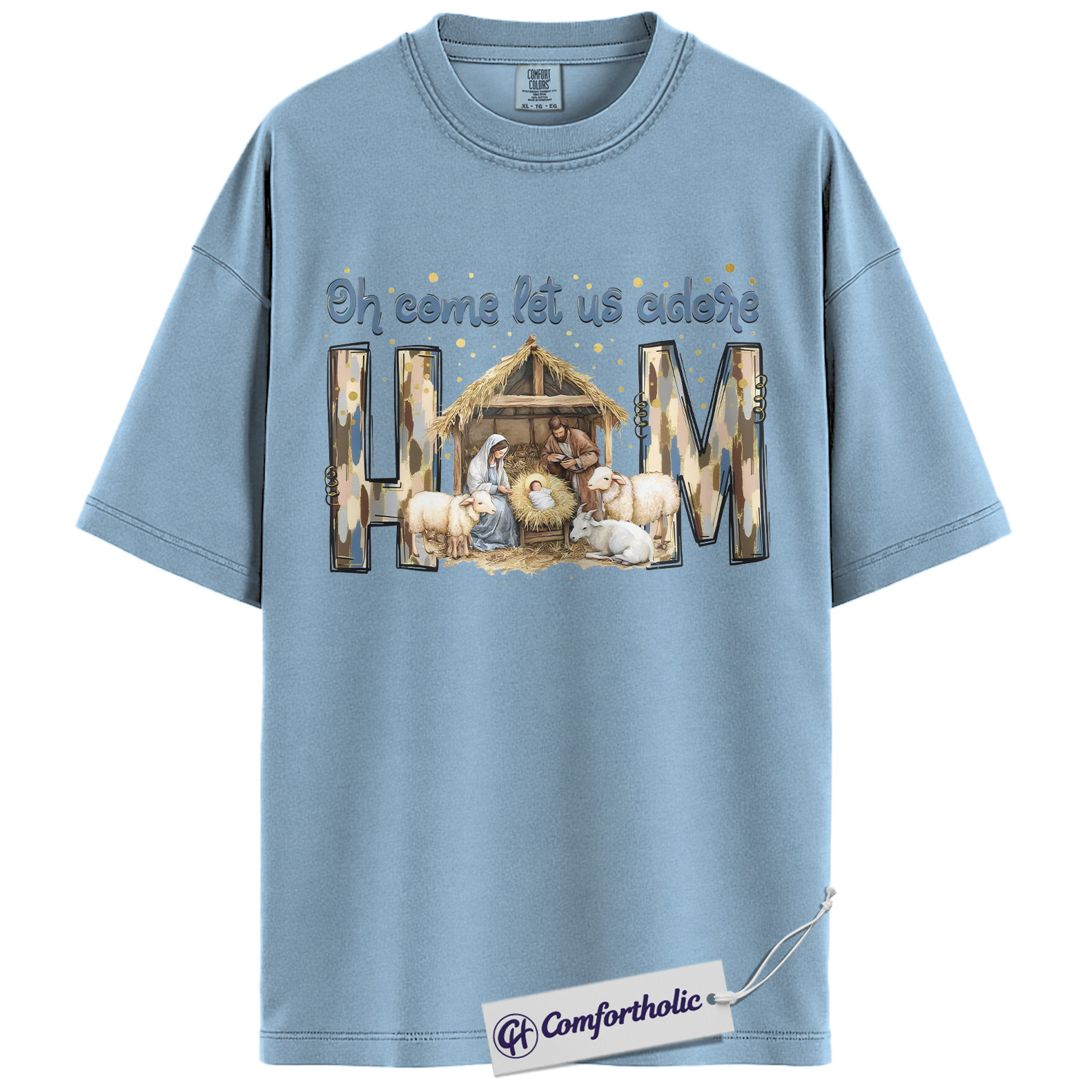 Oh Come Let Us Adore Him Shirt, Christian Nativity Scene T-Shirt, Religious Christmas Graphic Tee, Faith-Based Holiday Gift for Believers, Christmas Comfort Colors Shirt