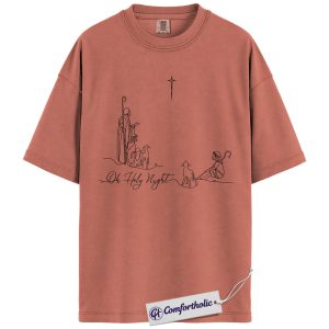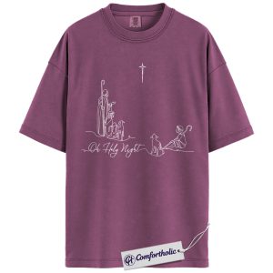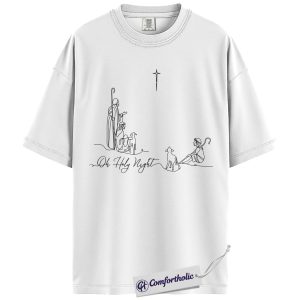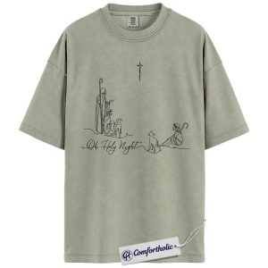 Oh Holy Night Shirt, Christian Nativity Scene T-Shirt, Minimalist Faith-Based Holiday Graphic Tee, Religious Gift for Women, Christmas Comfort Colors Shirt
