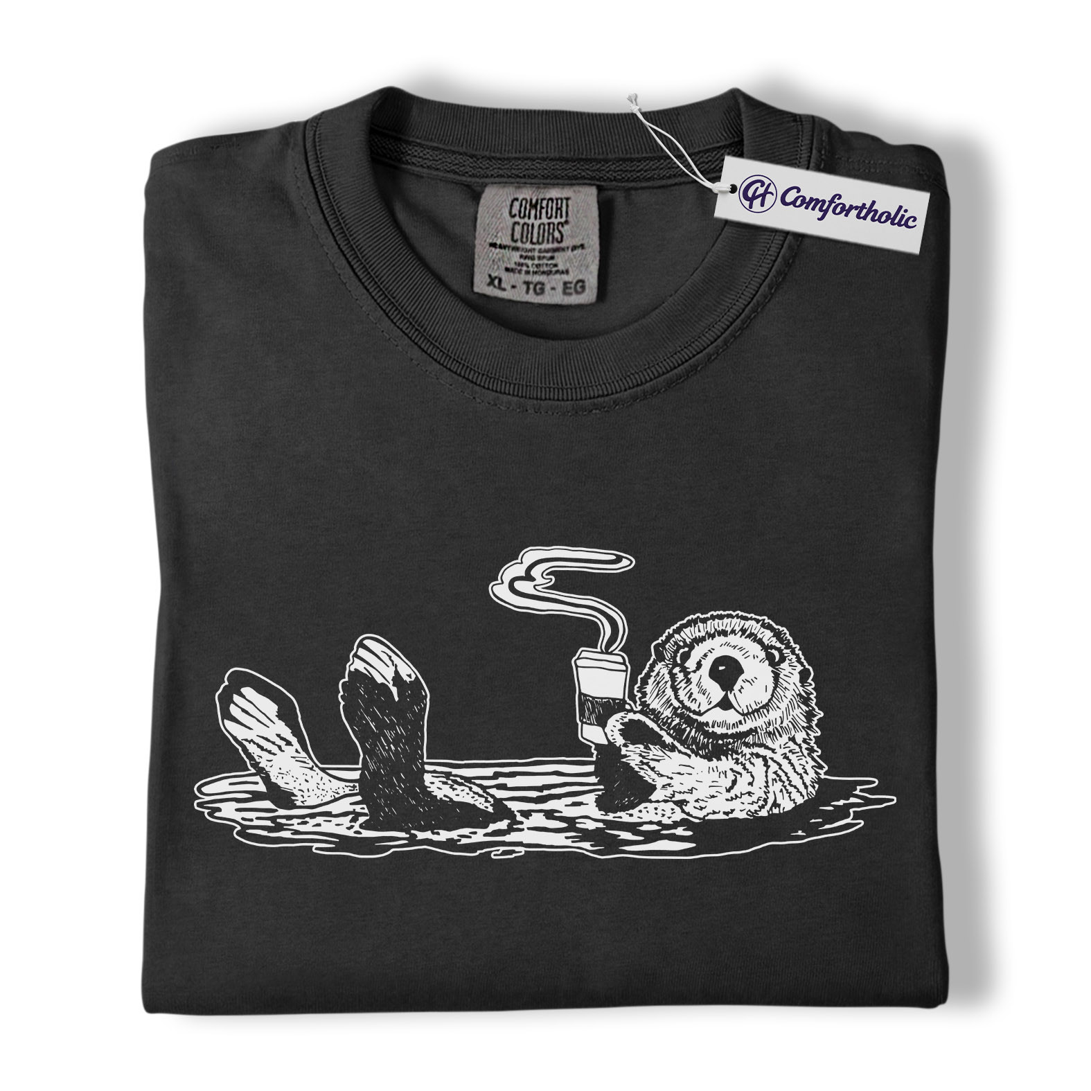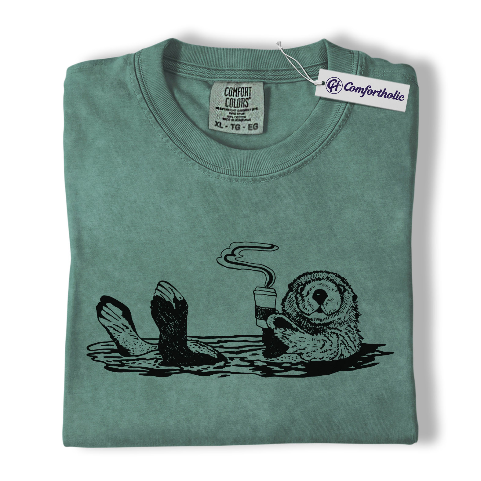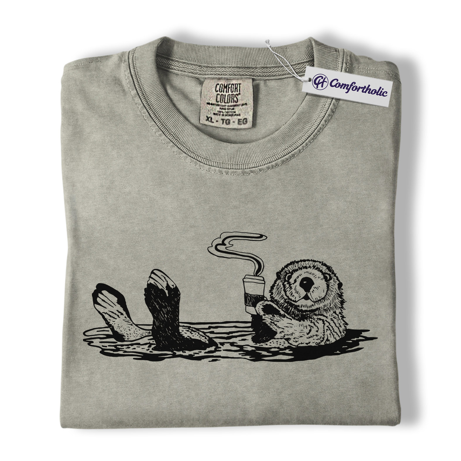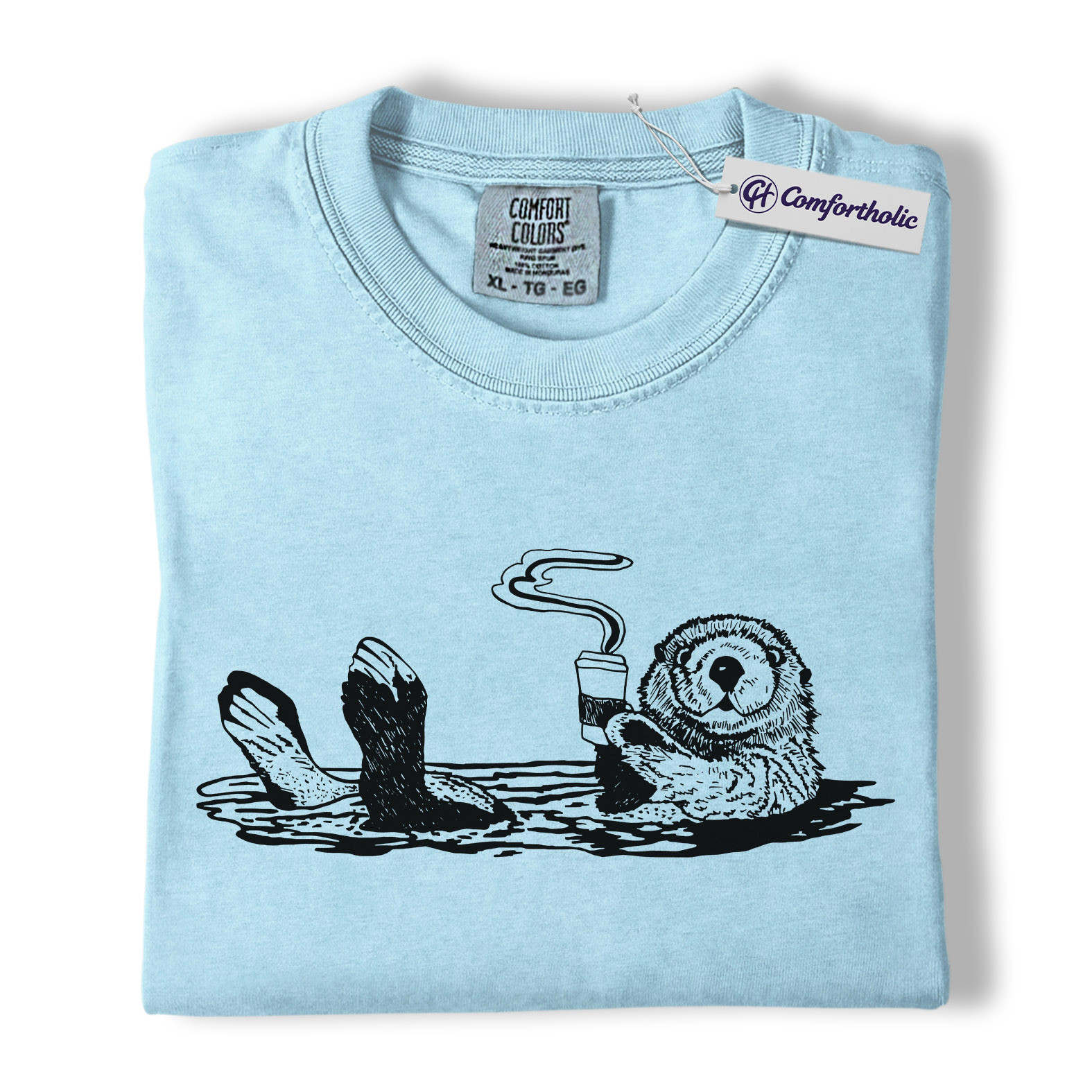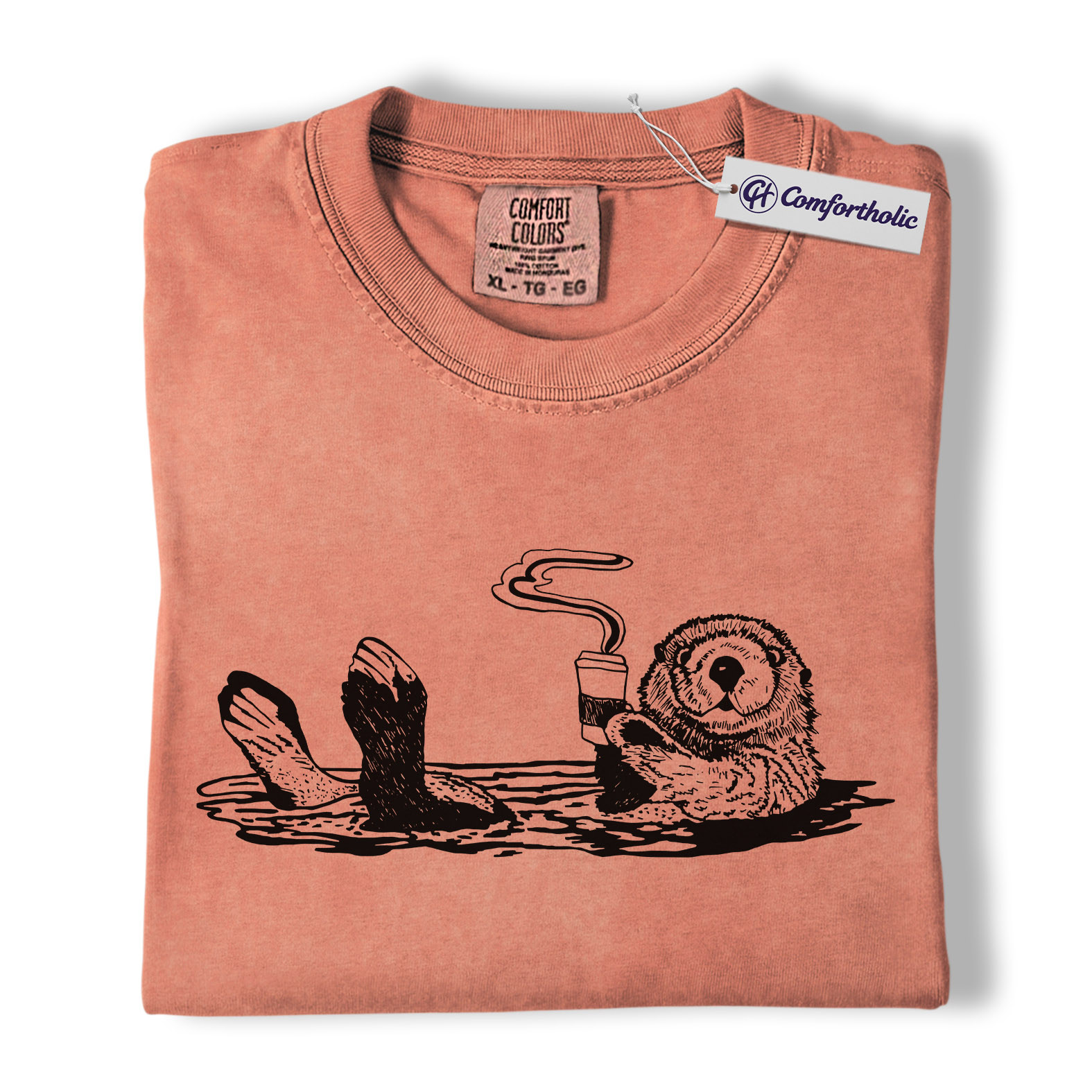 Otter Shirt, Cute Coffee Otter Graphic Tee, Funny Animal T-Shirt, Gift for Coffee & Otter Lovers, Comfort Colors Shirt