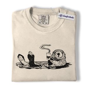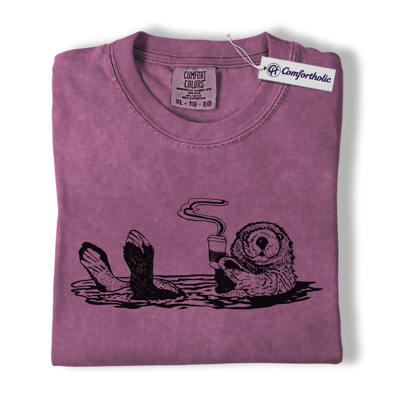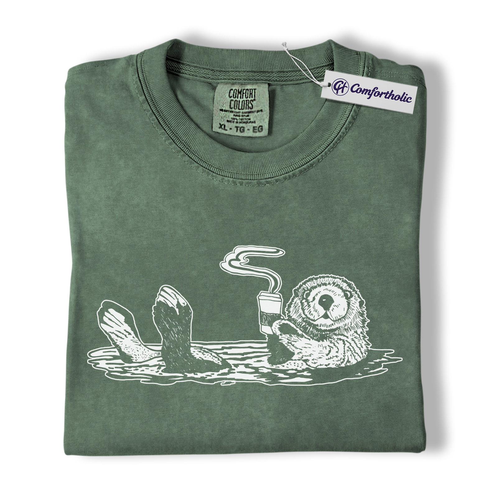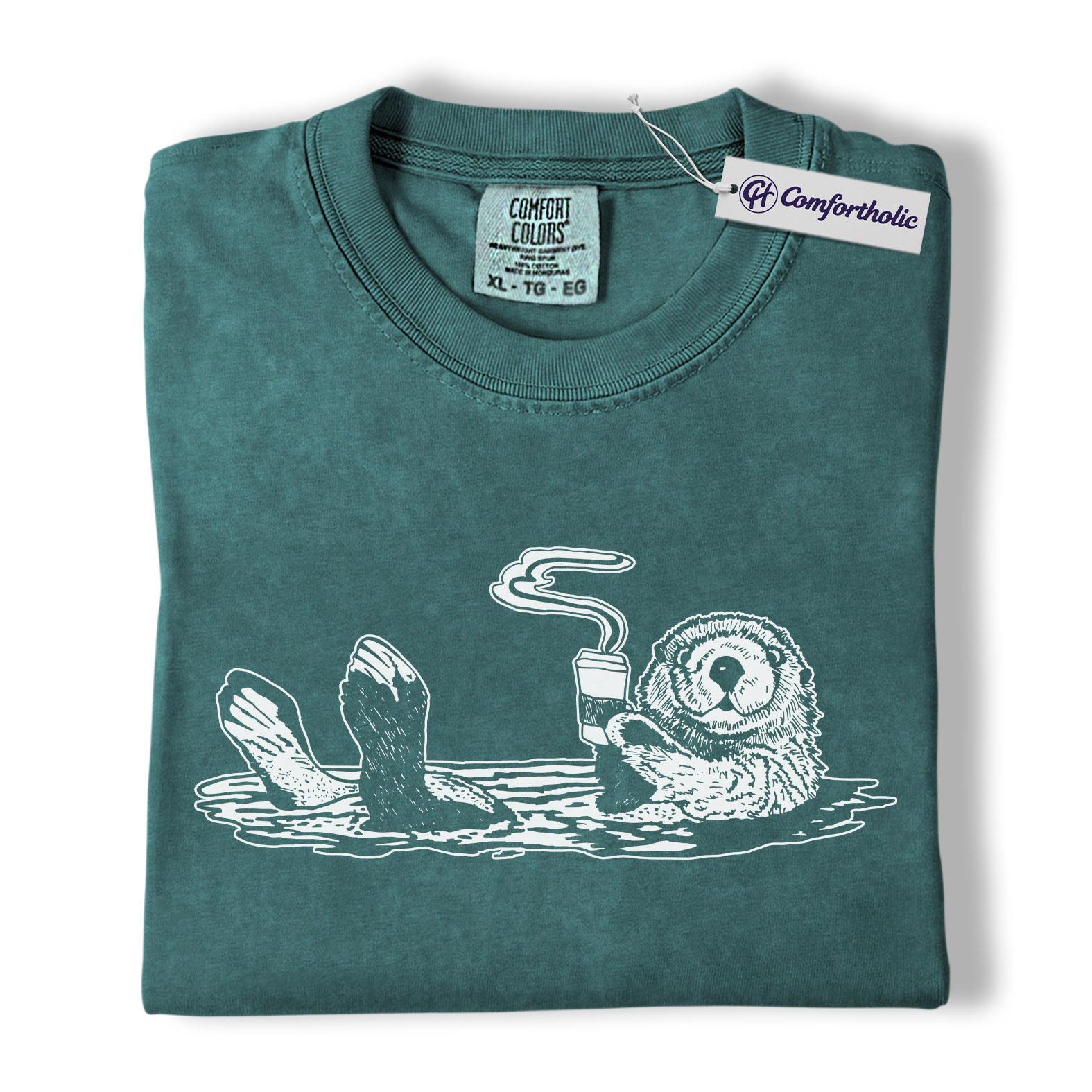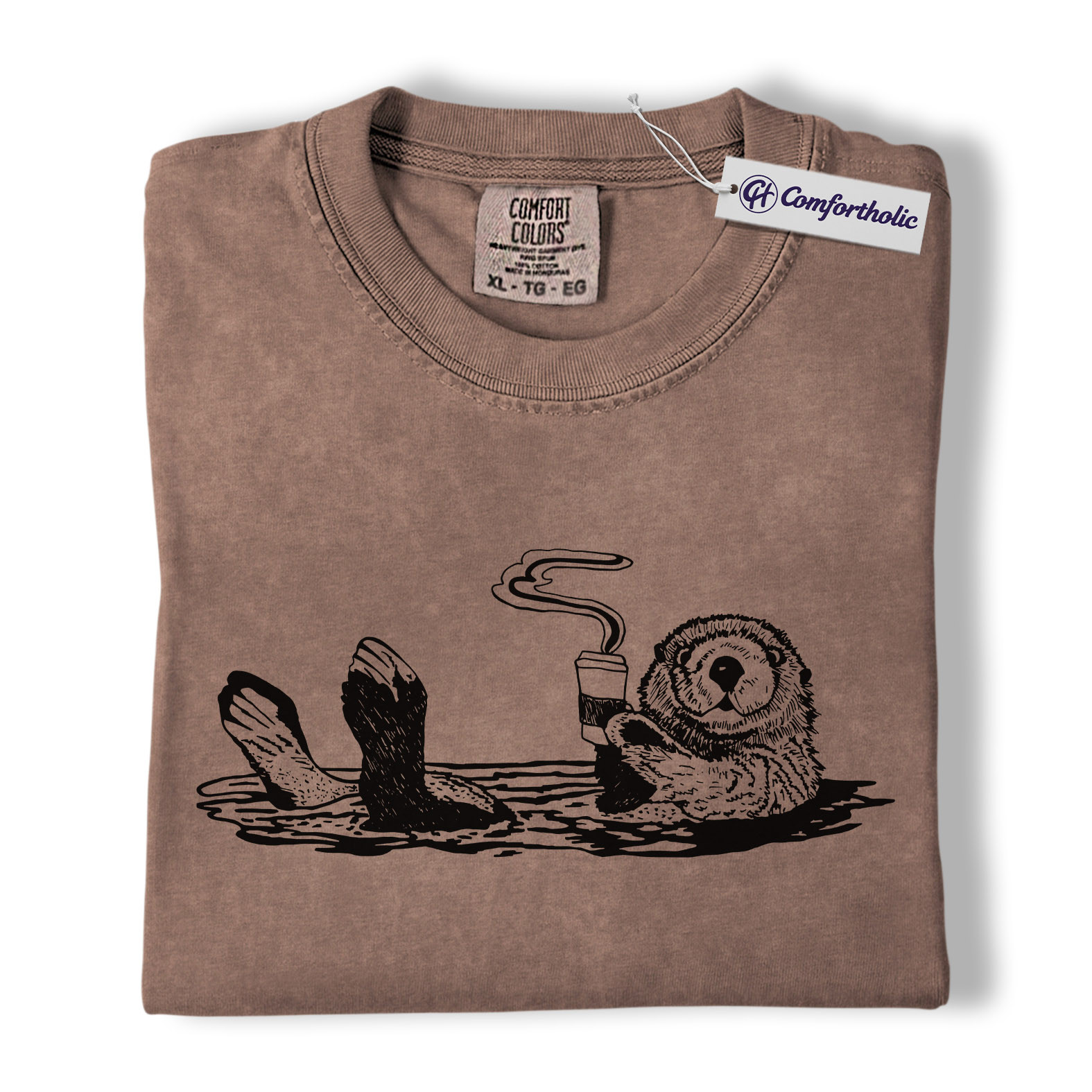 Otter Shirt, Cute Coffee Otter Graphic Tee, Funny Animal T-Shirt, Gift for Coffee & Otter Lovers, Comfort Colors Shirt