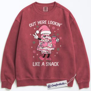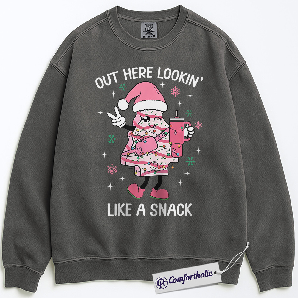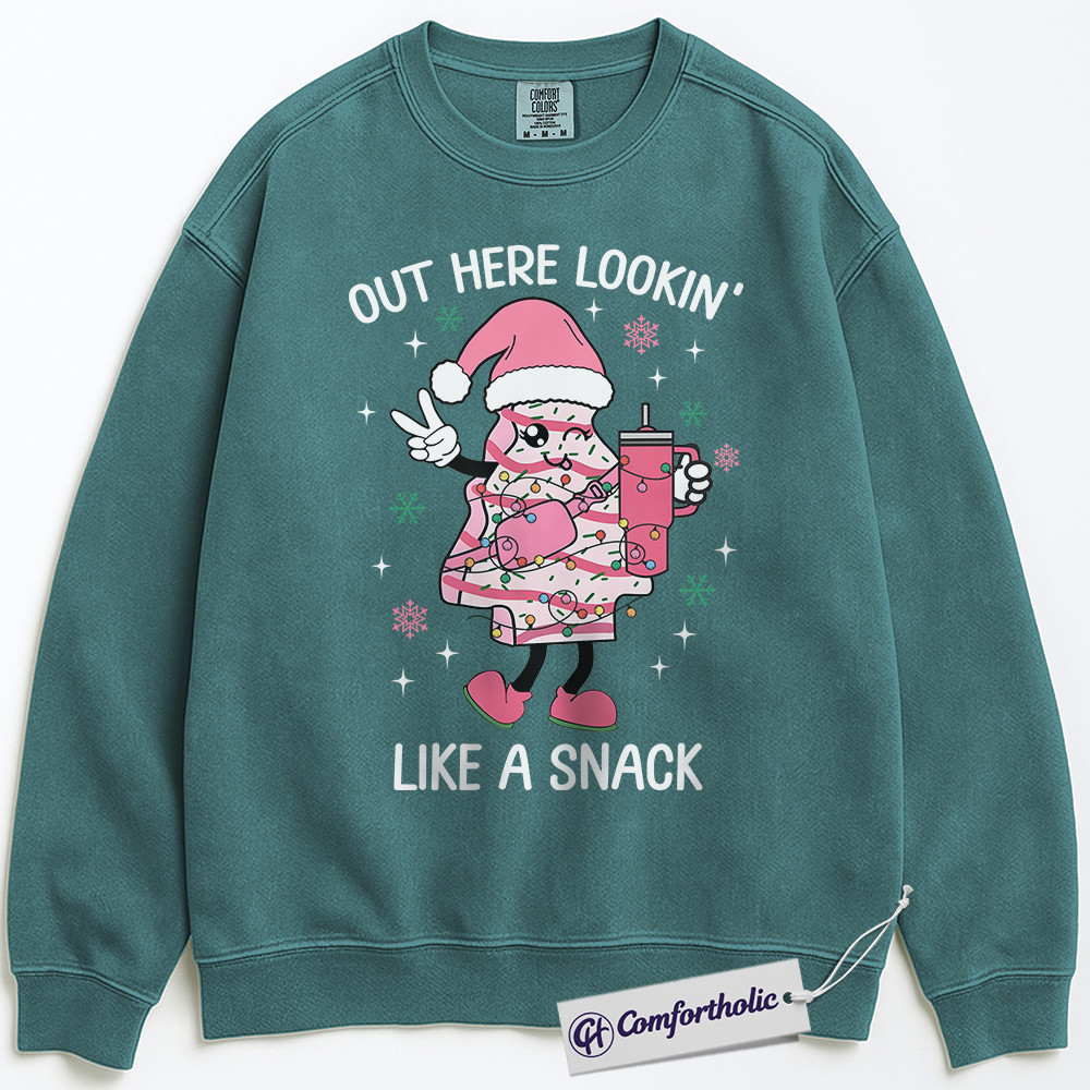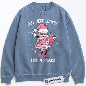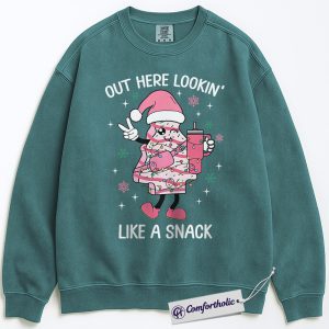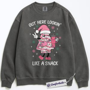 Out Here Lookin’ Like a Snack Sweatshirt, Funny Christmas Donut Sweatshirt, Cute Holiday Dessert Graphic Sweatshirt, Sweet Food Lover Gift, Christmas Comfort Colors Sweatshirt