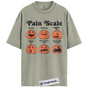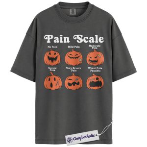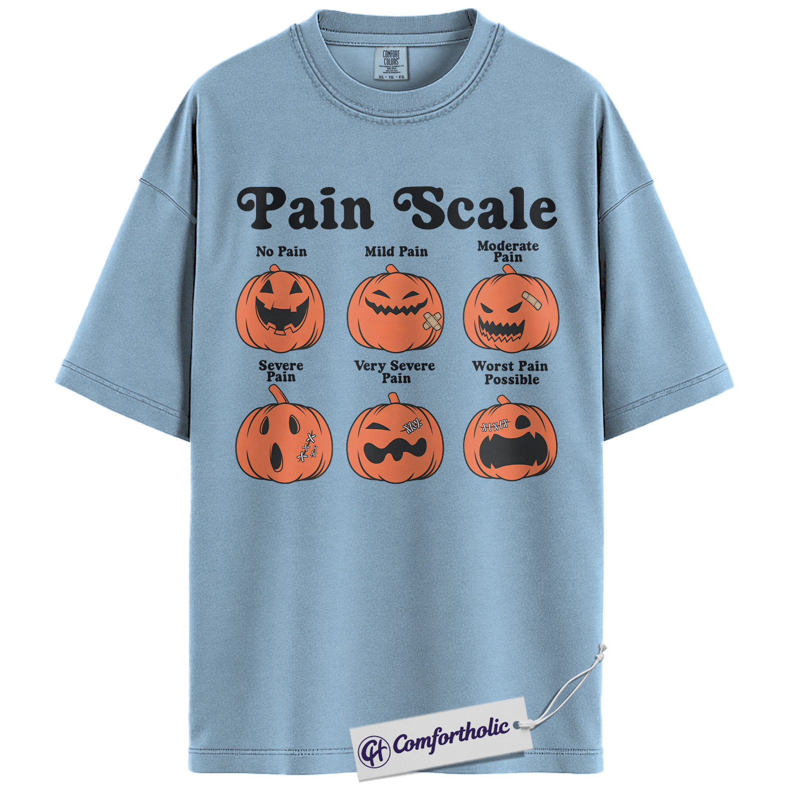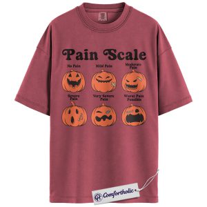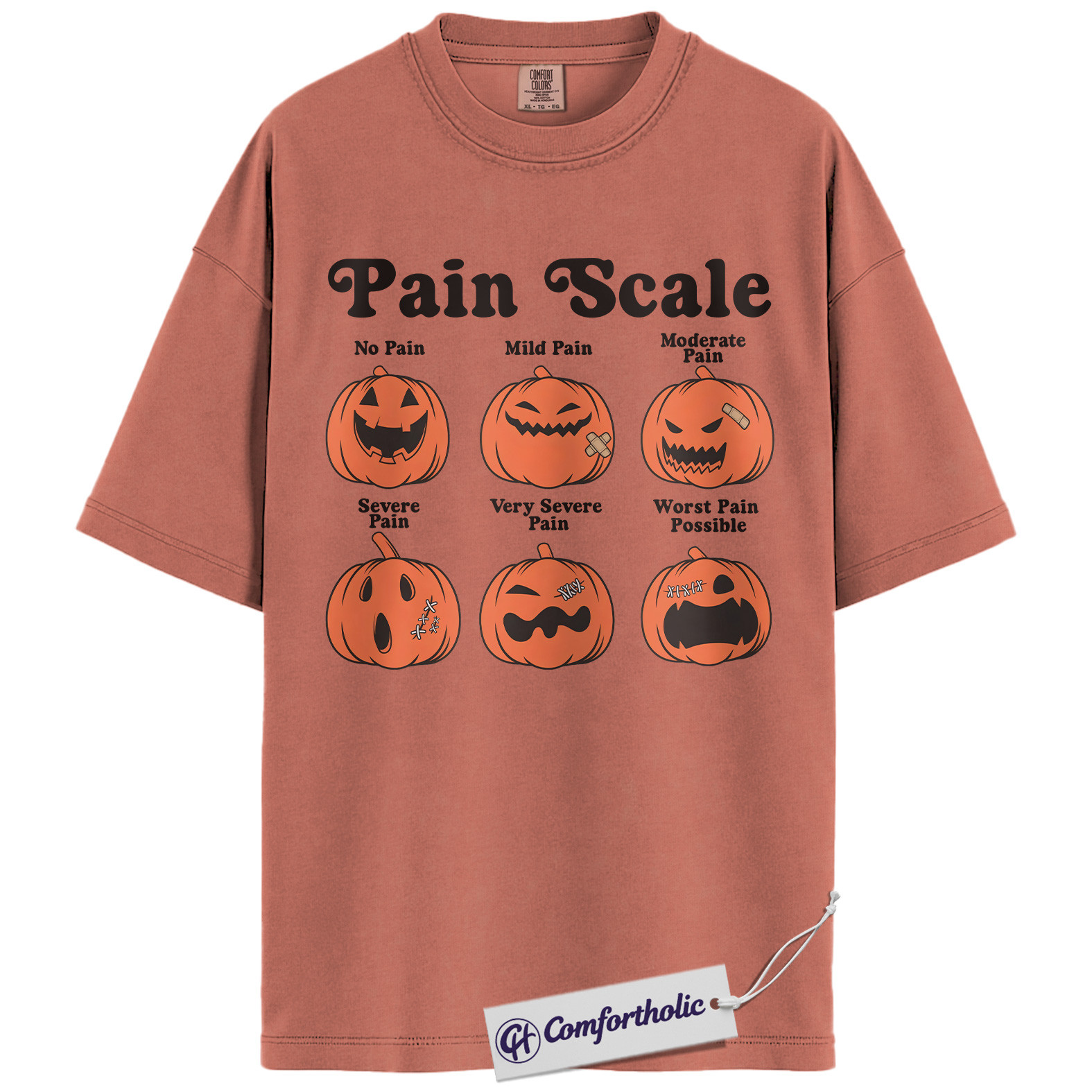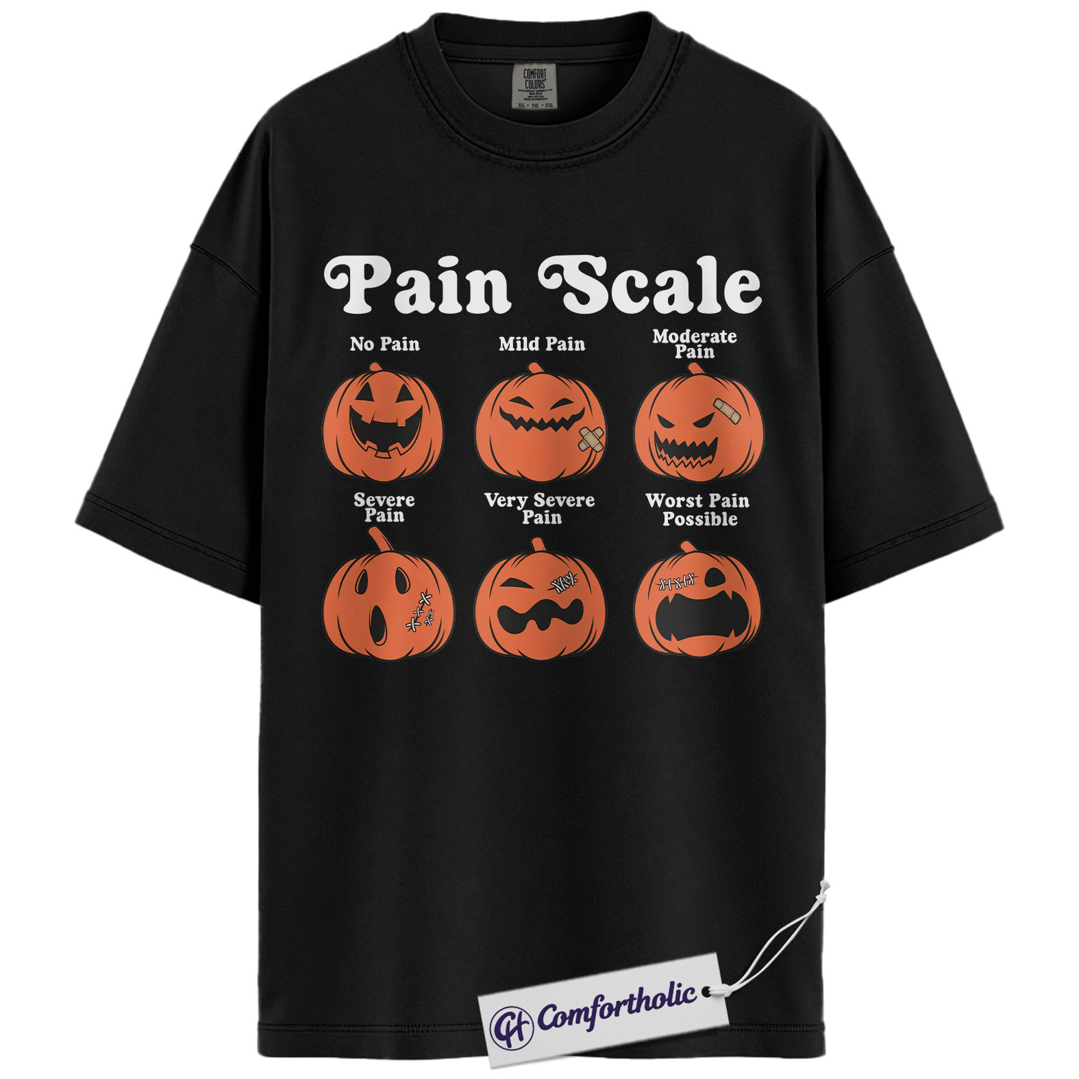 Pain Scale Halloween Shirt, Funny Nurse Medical T-Shirt, Pumpkin Face Pain Chart Tee, Healthcare Worker Halloween Gift, Halloween Comfort Colors Shirt