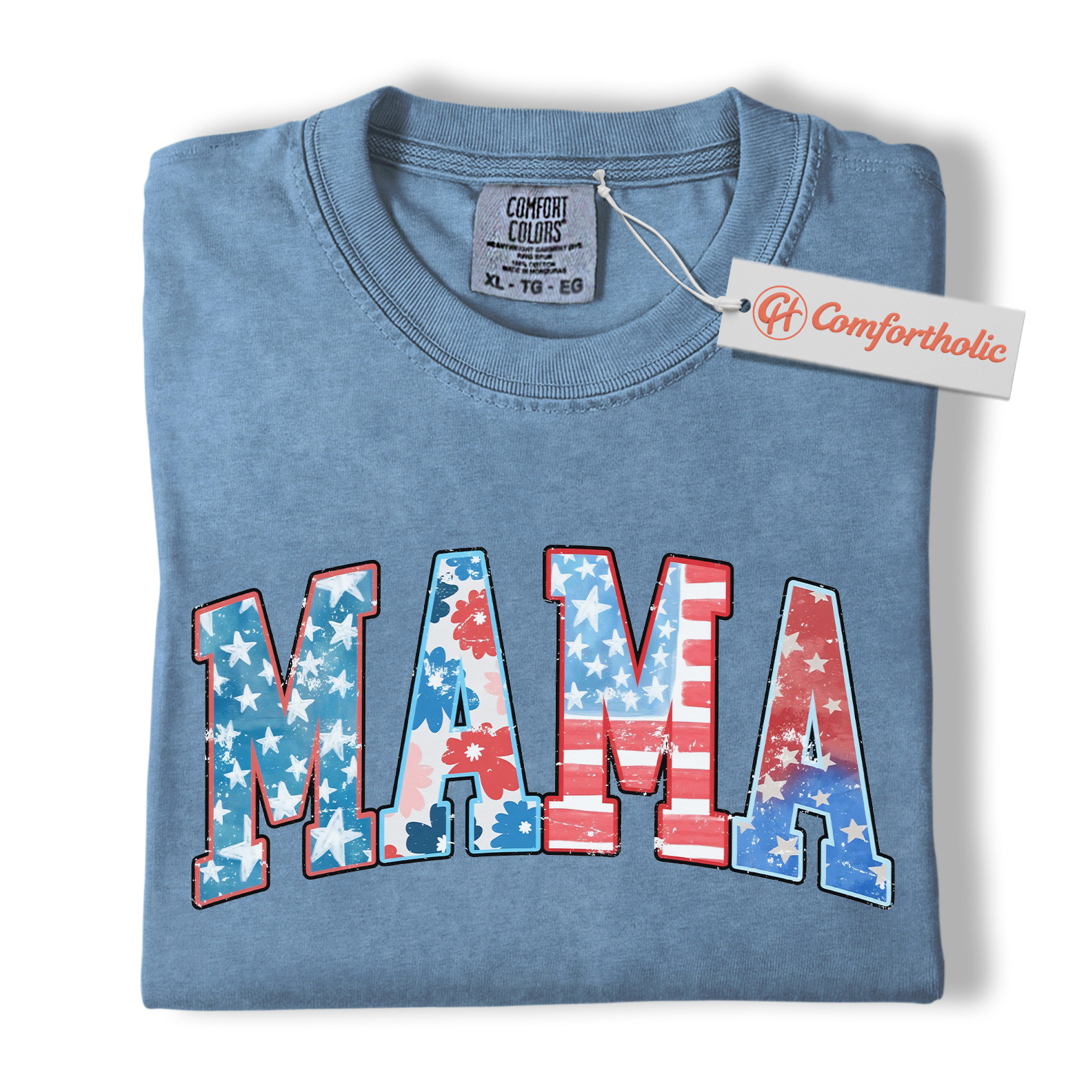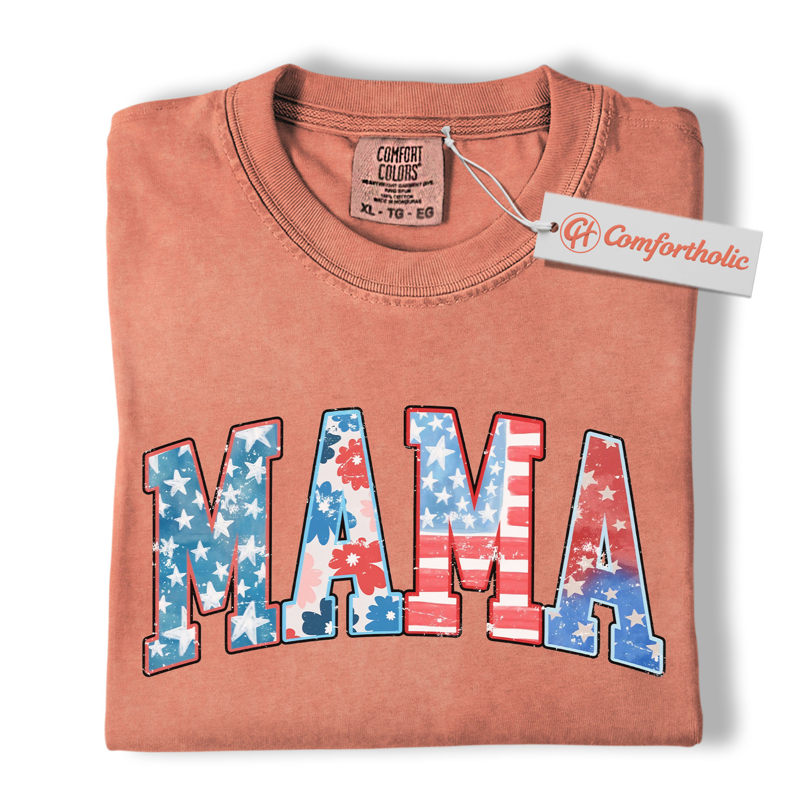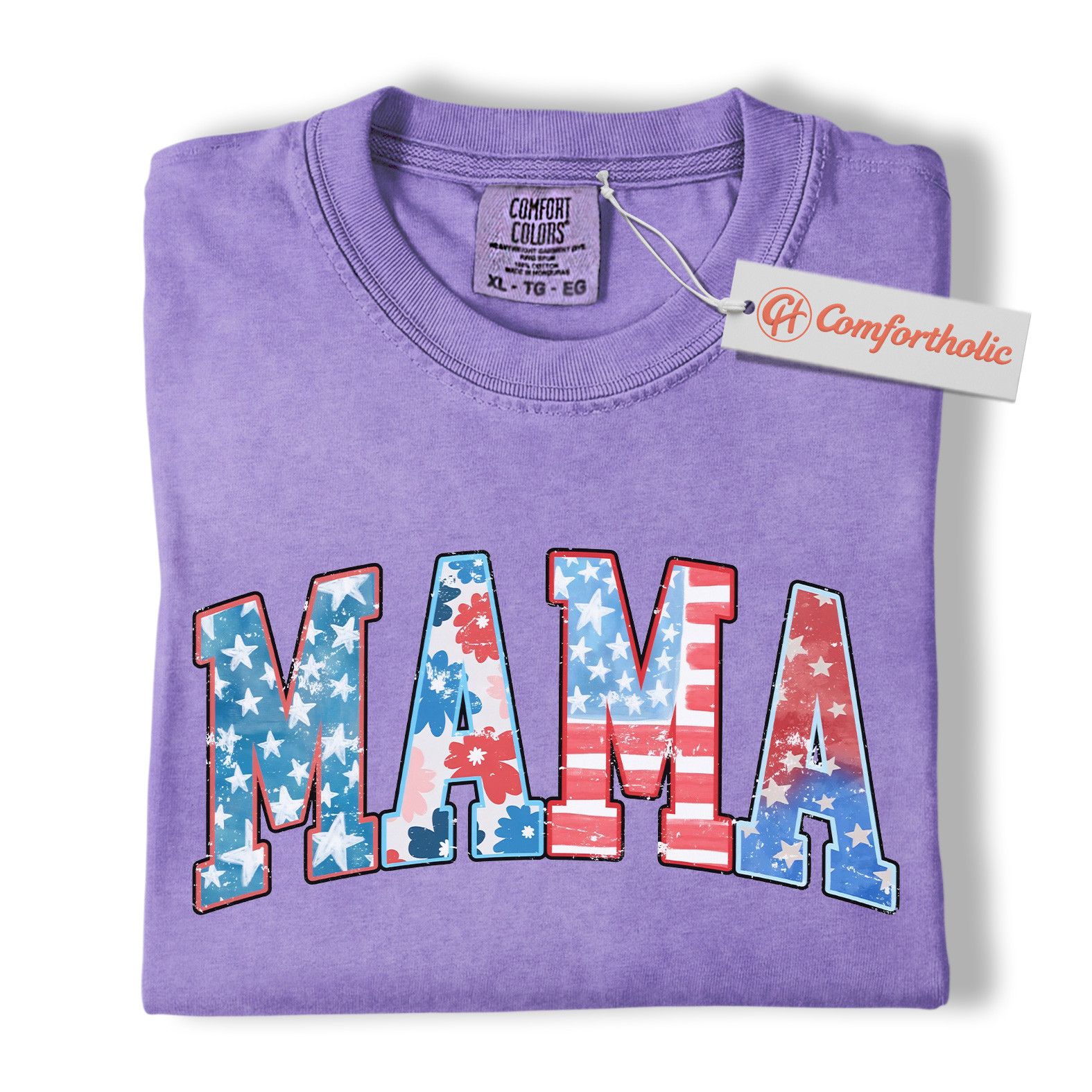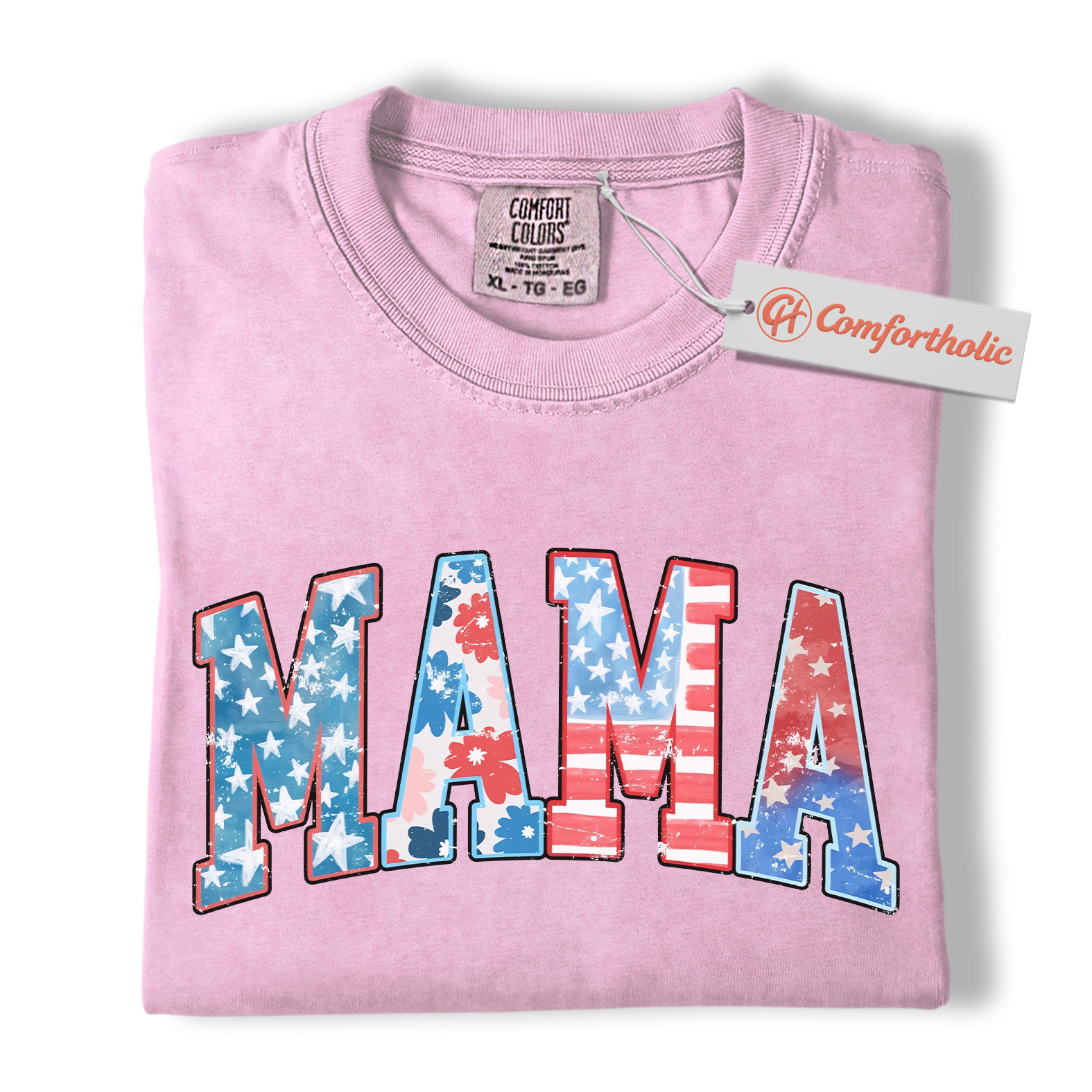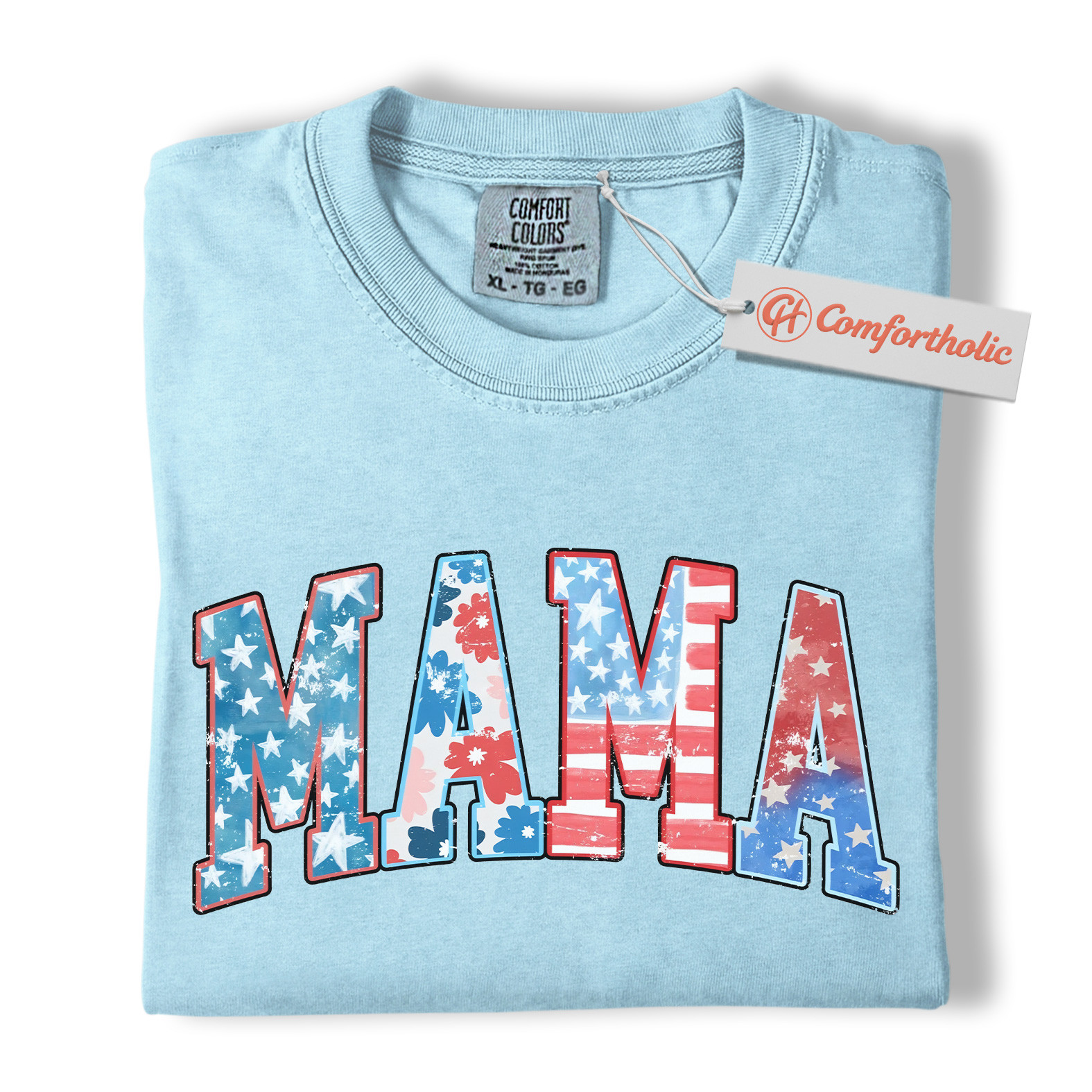 Patriotic Mama Shirt, 4th of July Mom Shirt, USA Flag Graphic Shirt, American Pride Comfort Colors Shirt