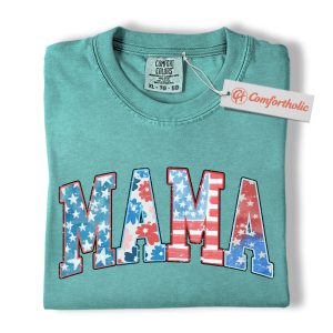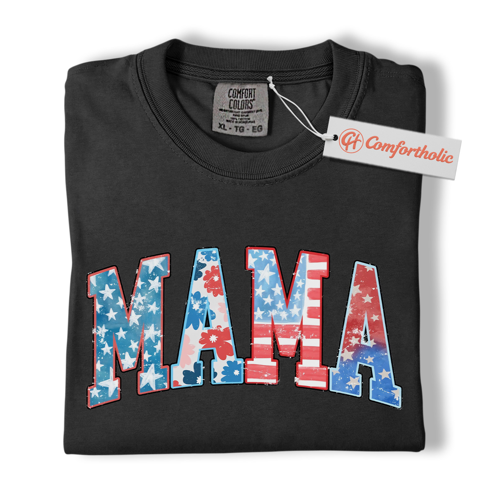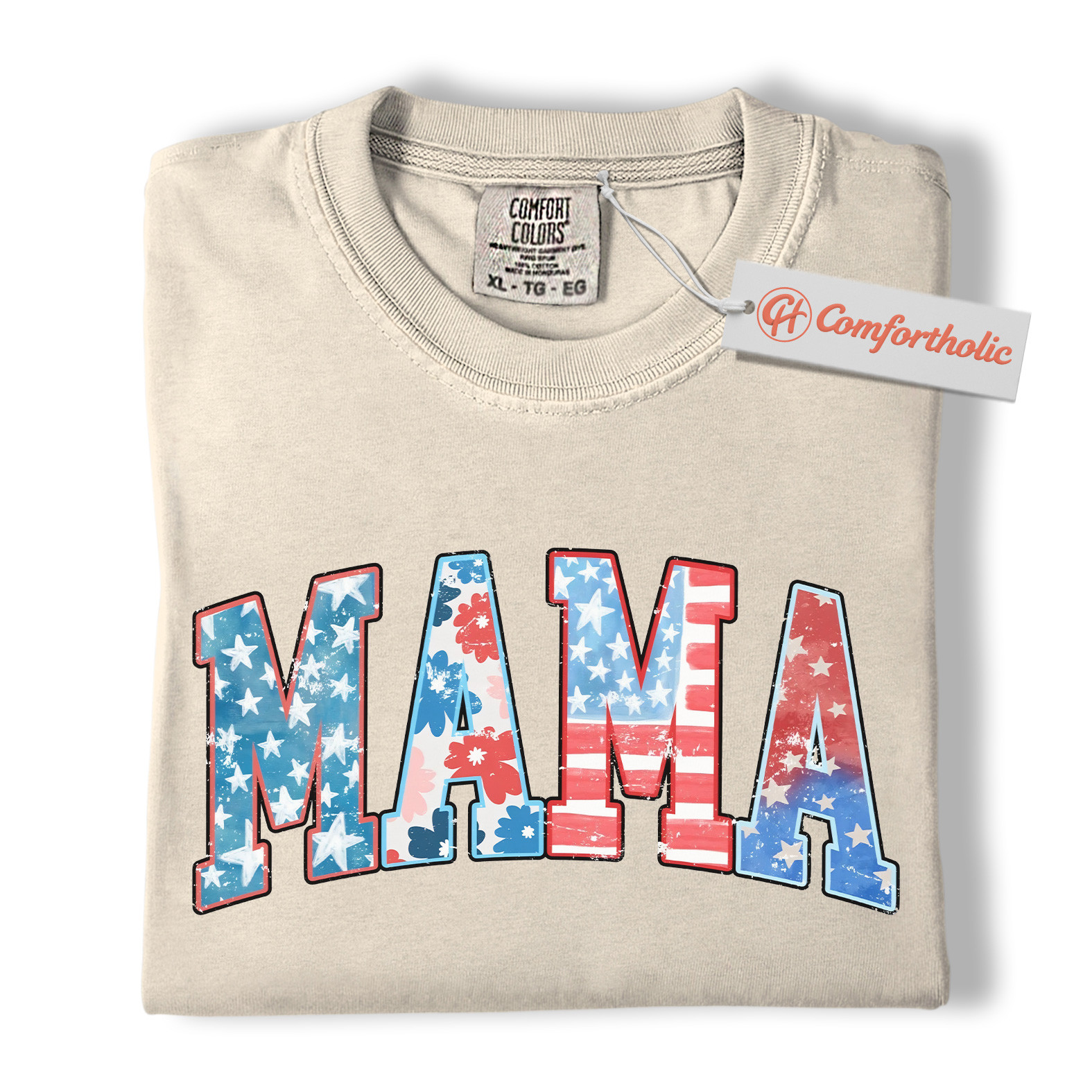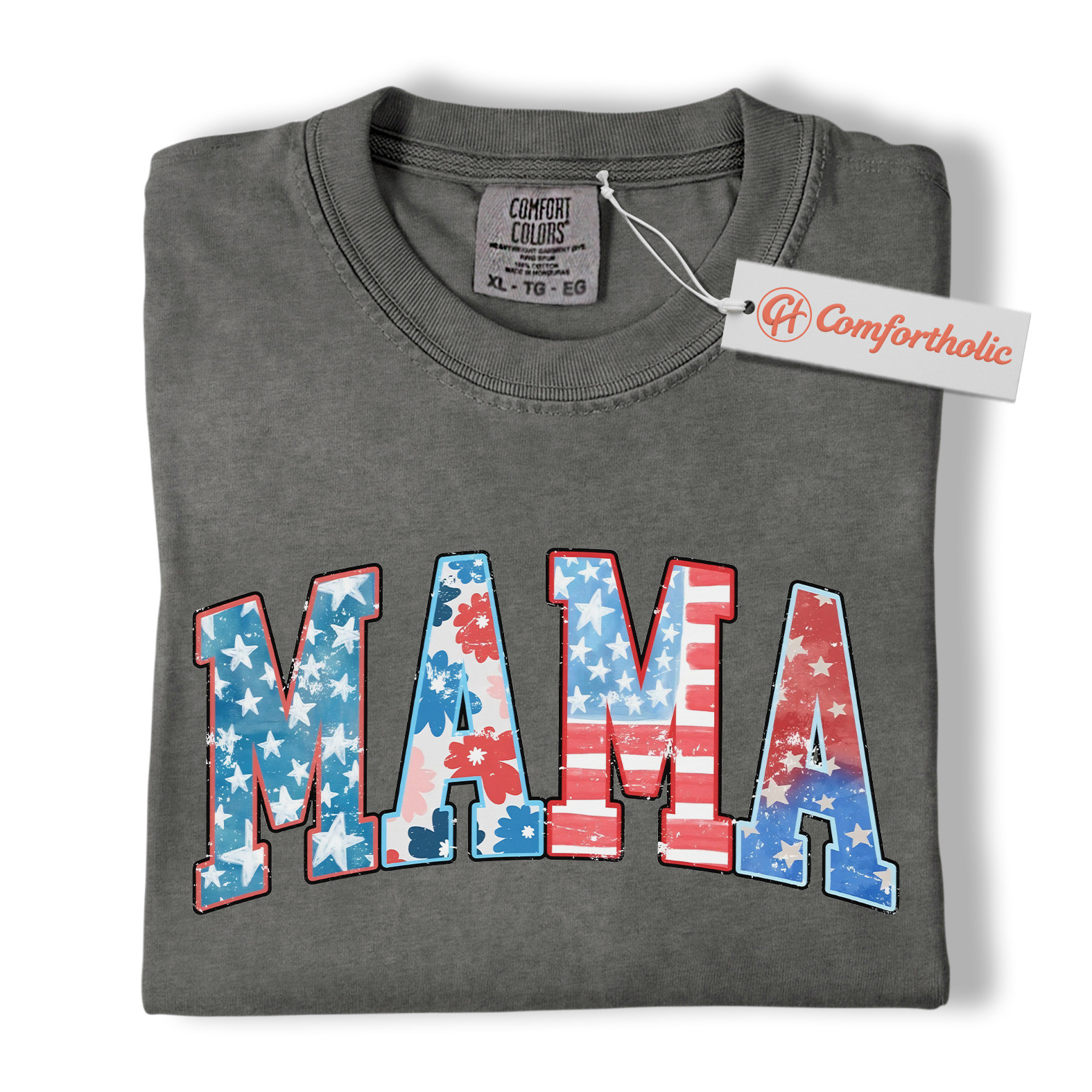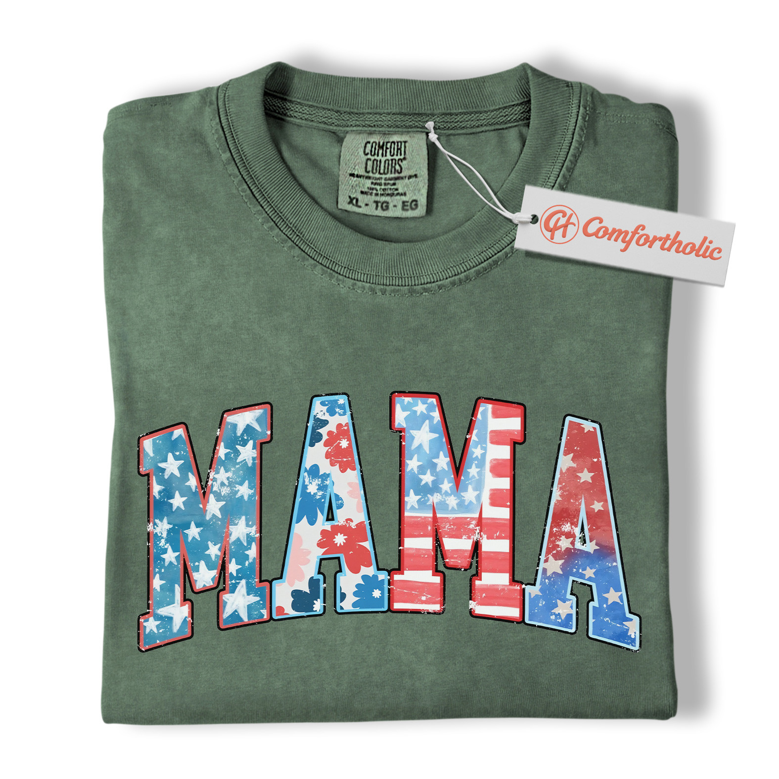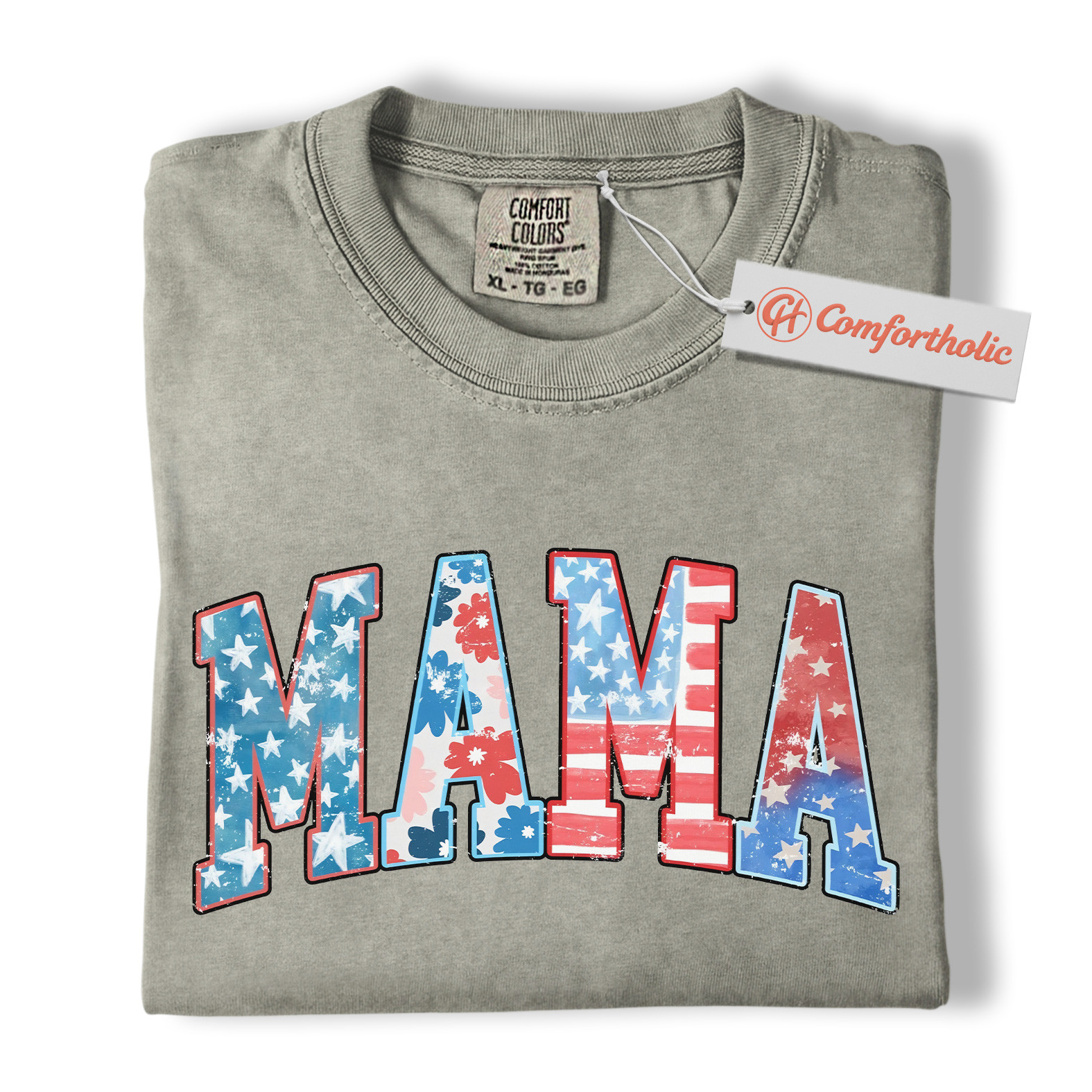 Patriotic Mama Shirt, 4th of July Mom Shirt, USA Flag Graphic Shirt, American Pride Comfort Colors Shirt