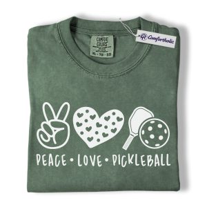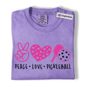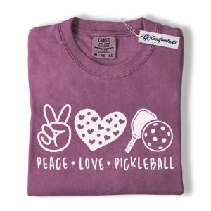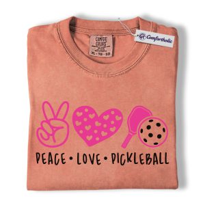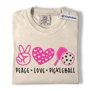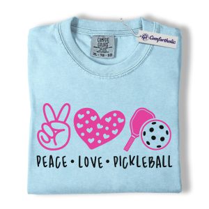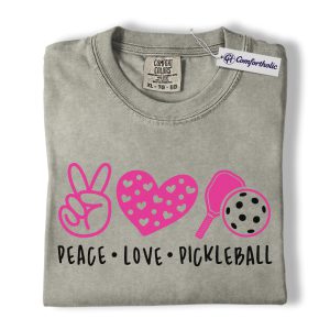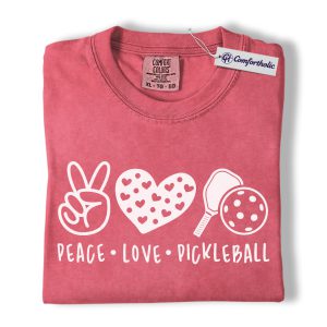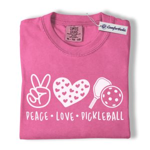 Peace Love Pickleball Shirt, Cute Pink Paddle Graphic Tee, Pickleball Player T-Shirt, Gift for Pickleball Lovers, Comfort Colors Shirt