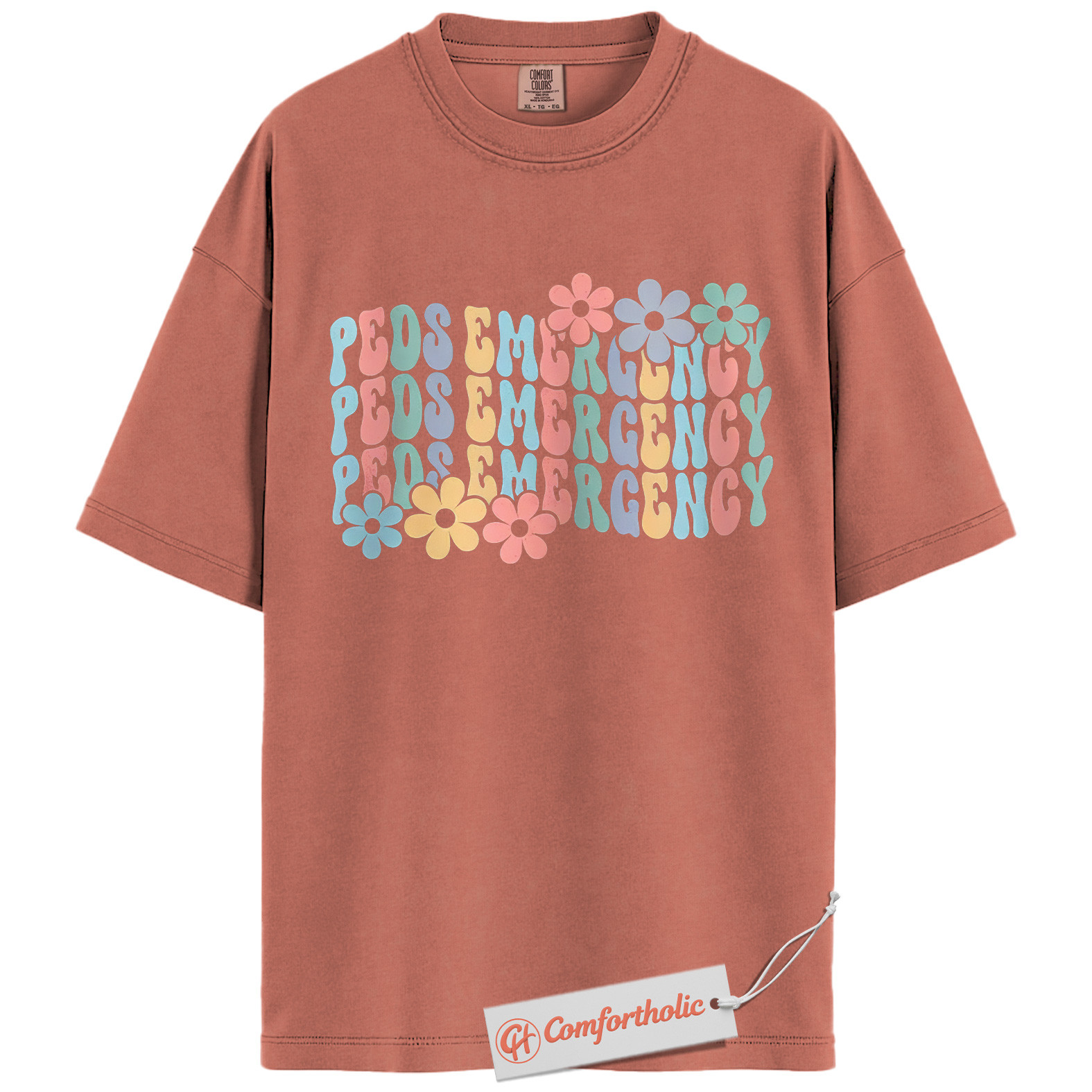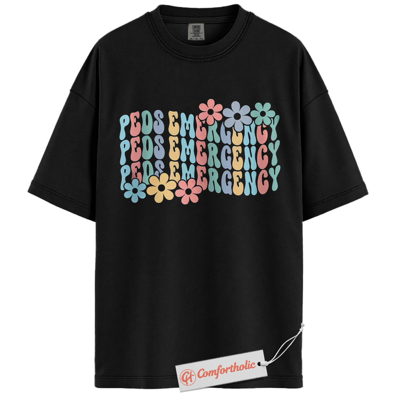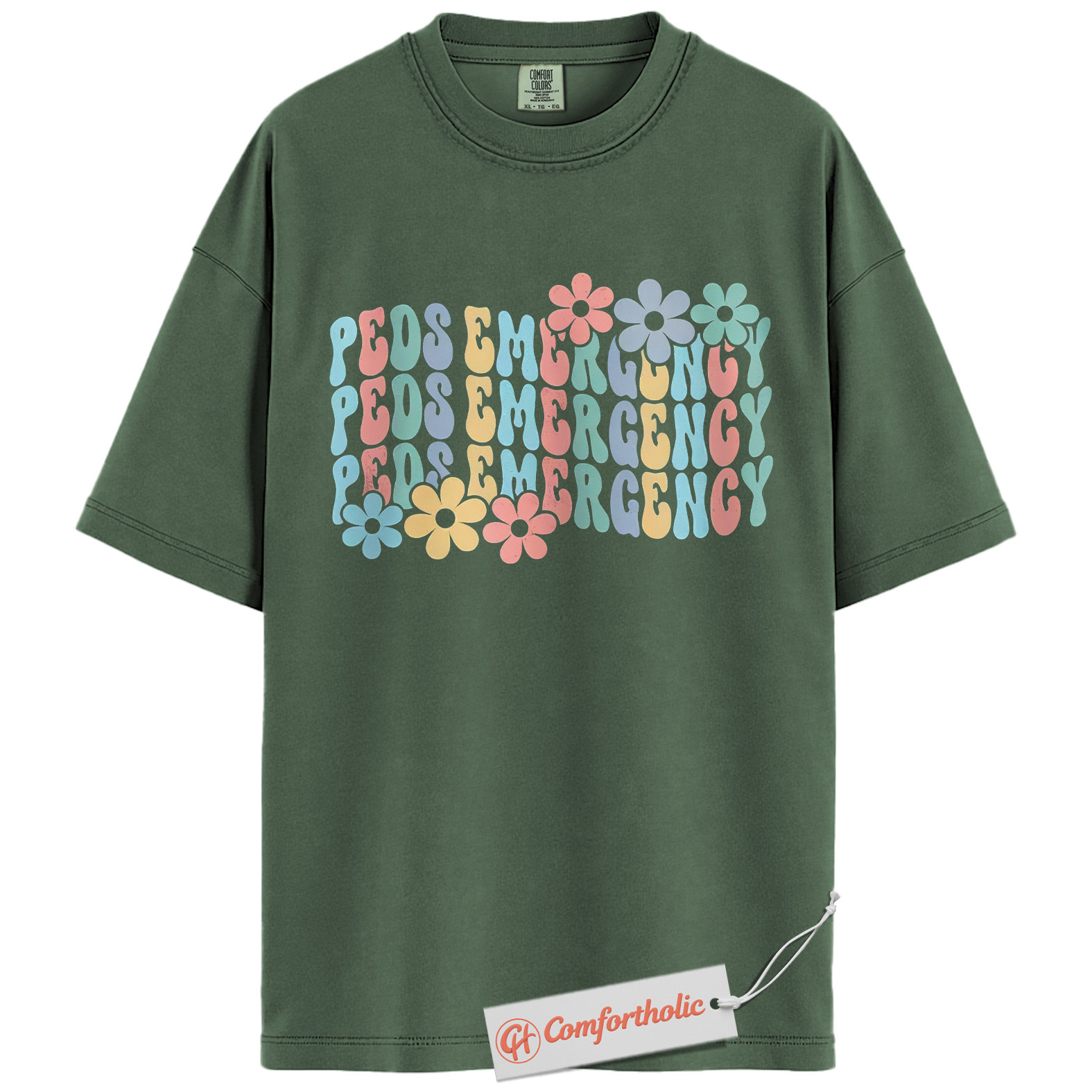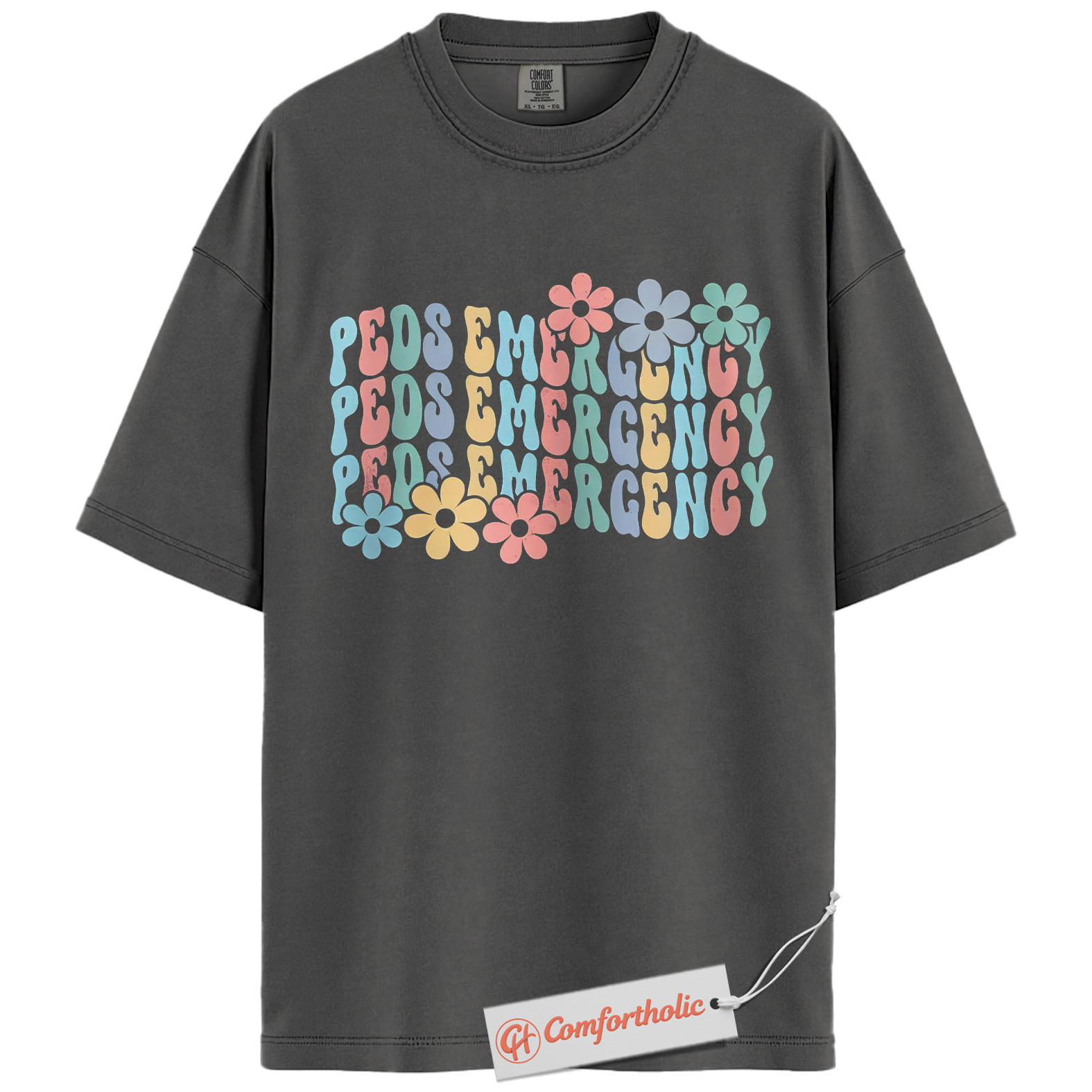 Peds Emergency Shirt, Pediatric Nurse T-Shirt, Retro Floral ER Graphic Tee, Colorful Hospital Staff Comfort Colors Shirt