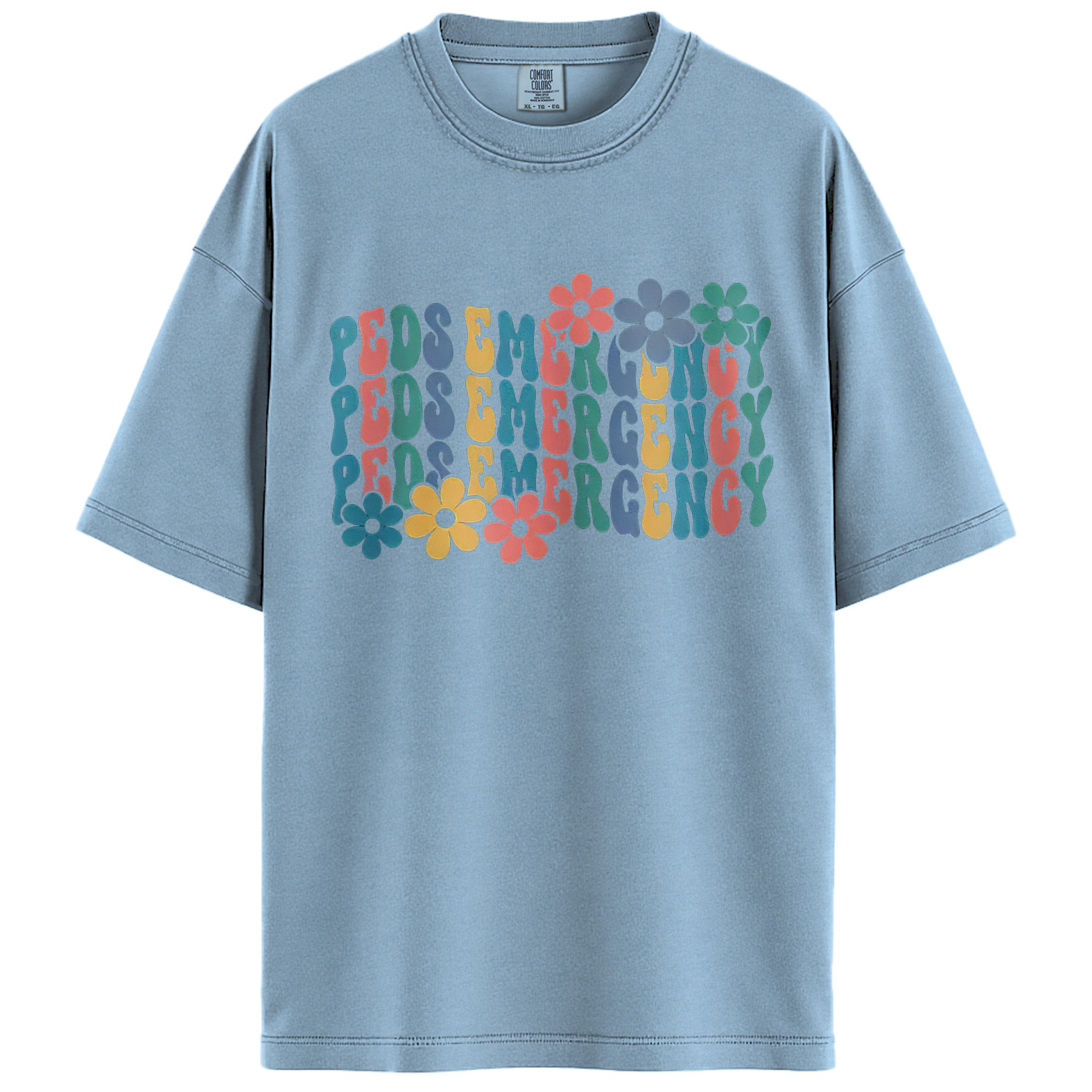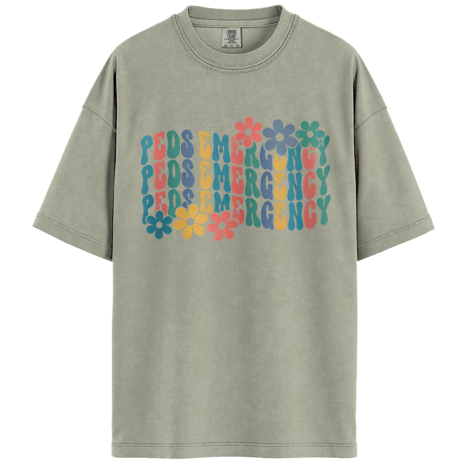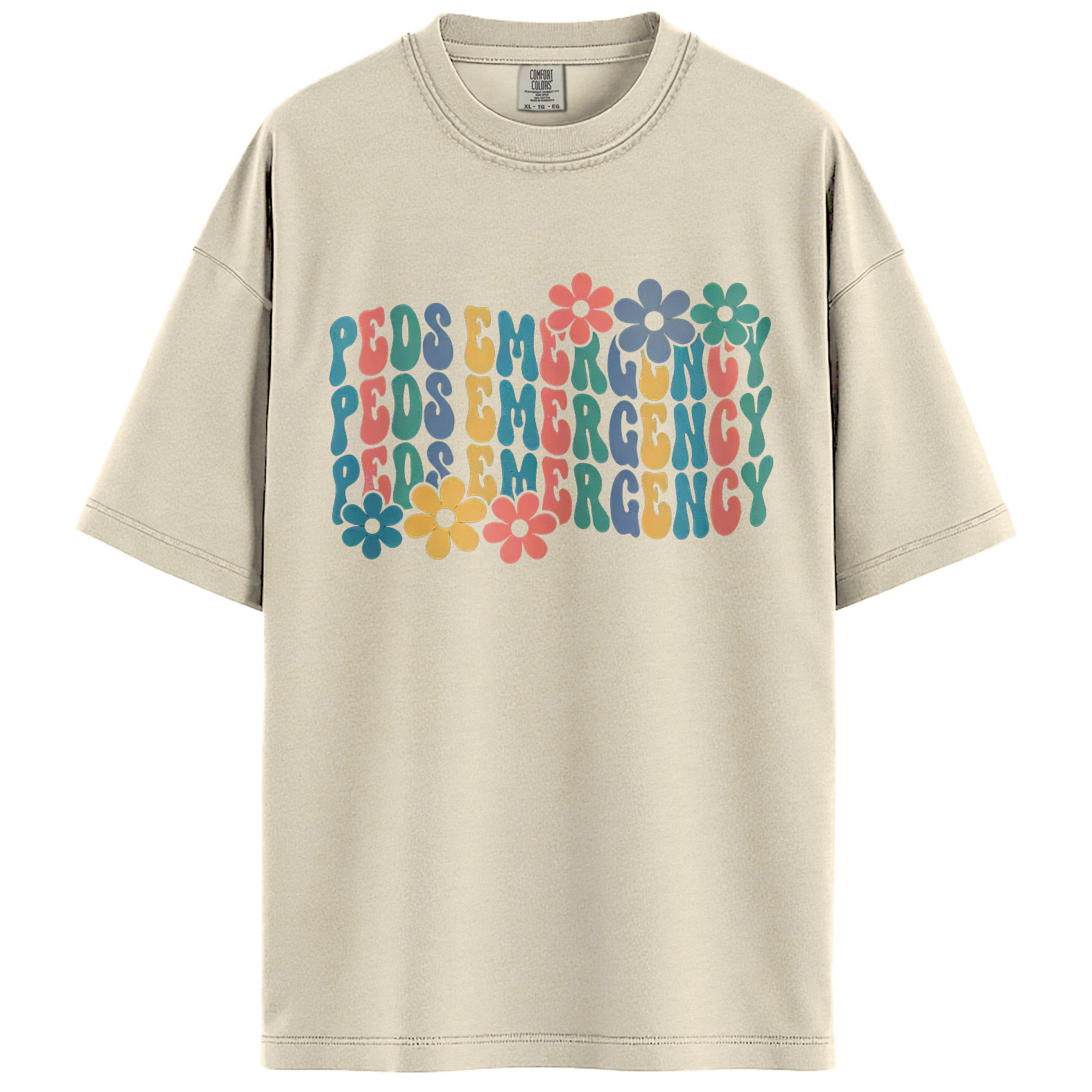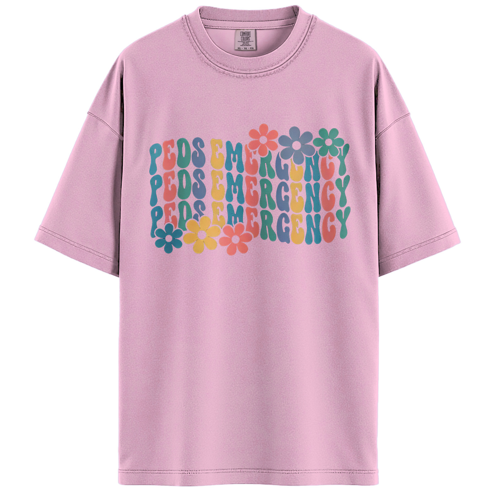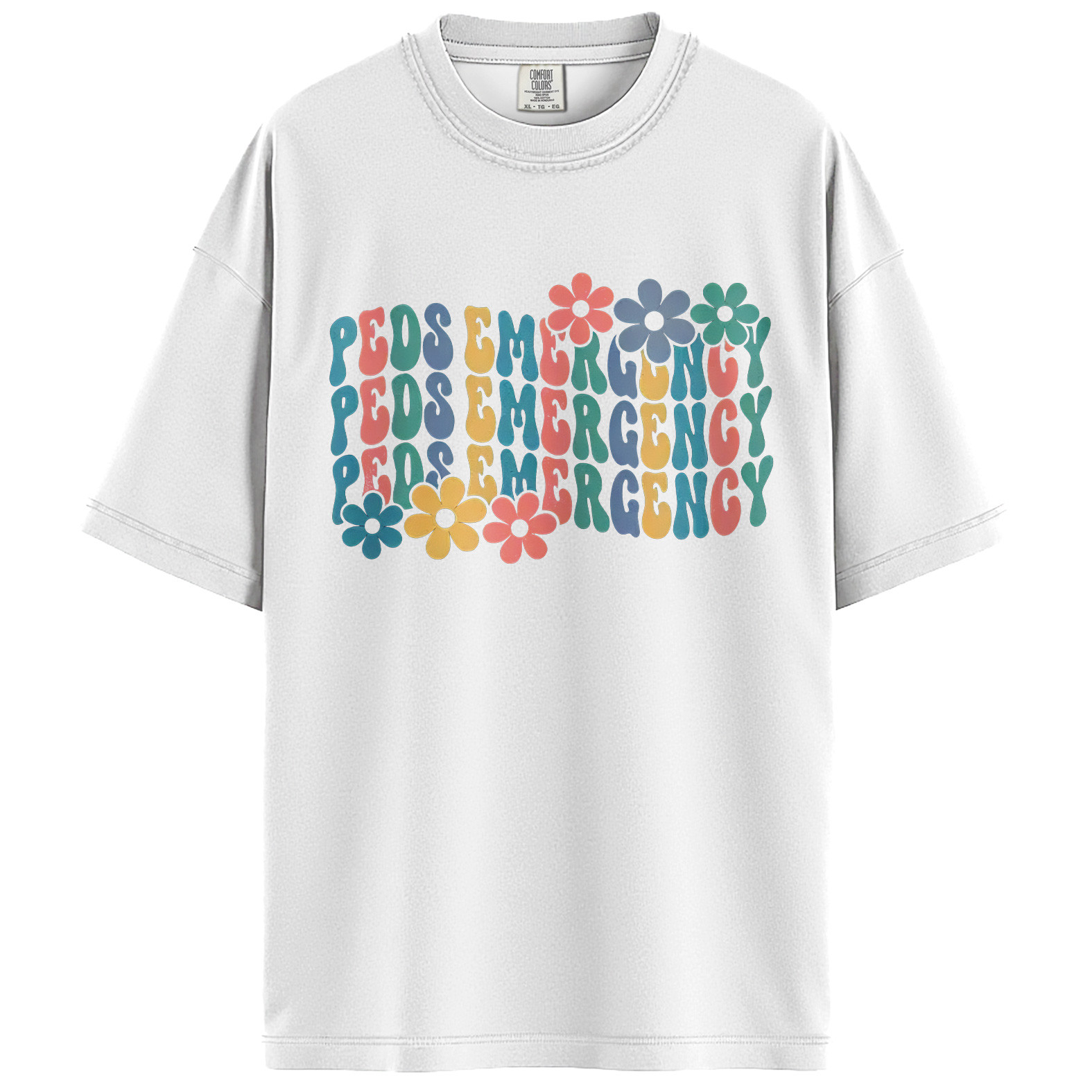 Peds Emergency Shirt, Pediatric Nurse T-Shirt, Retro Floral ER Graphic Tee, Colorful Hospital Staff Comfort Colors Shirt
