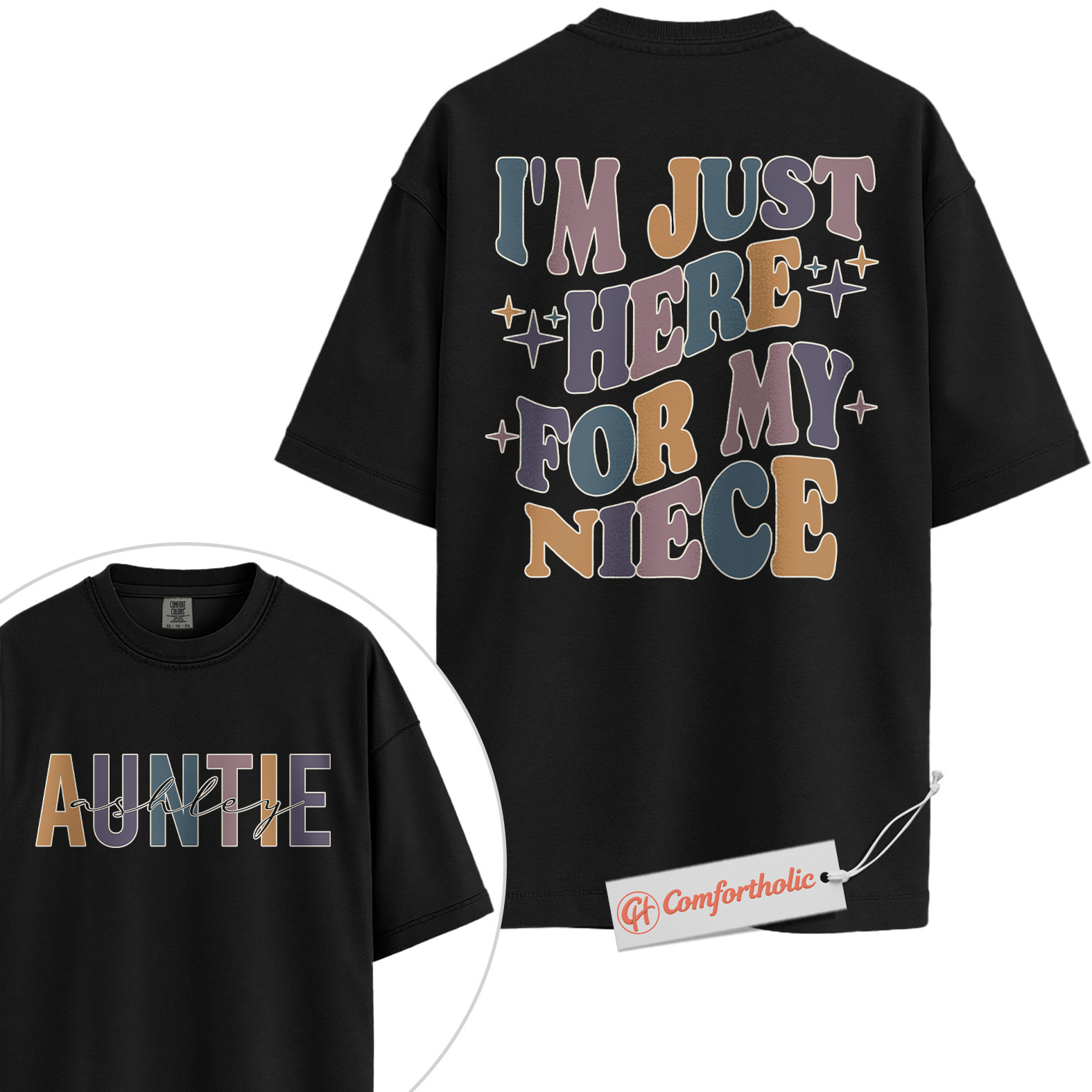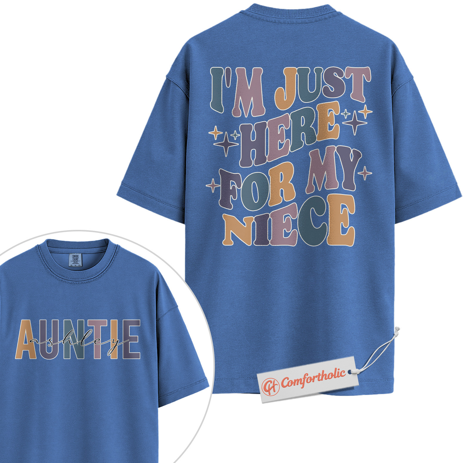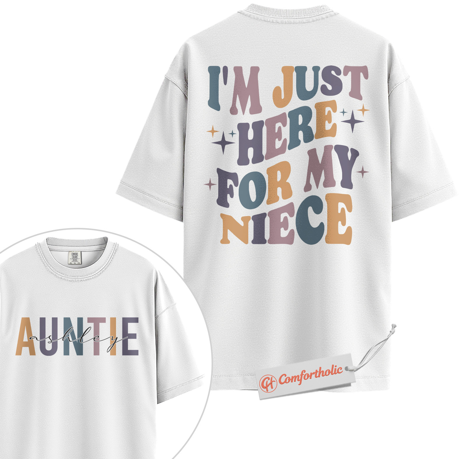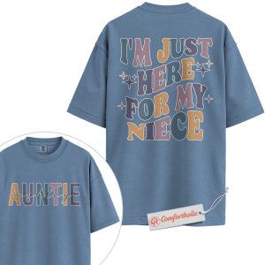 Personalized Auntie Shirt, I’m Just Here for My Niece T-Shirt, Funny Family Graphic Tee, Gift for Aunts, Custom Auntie Name Comfort Colors Shirt 2-Sided