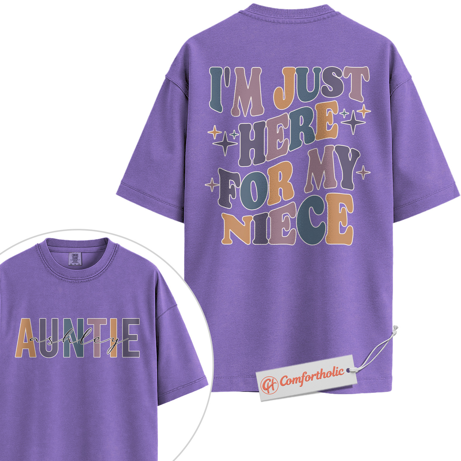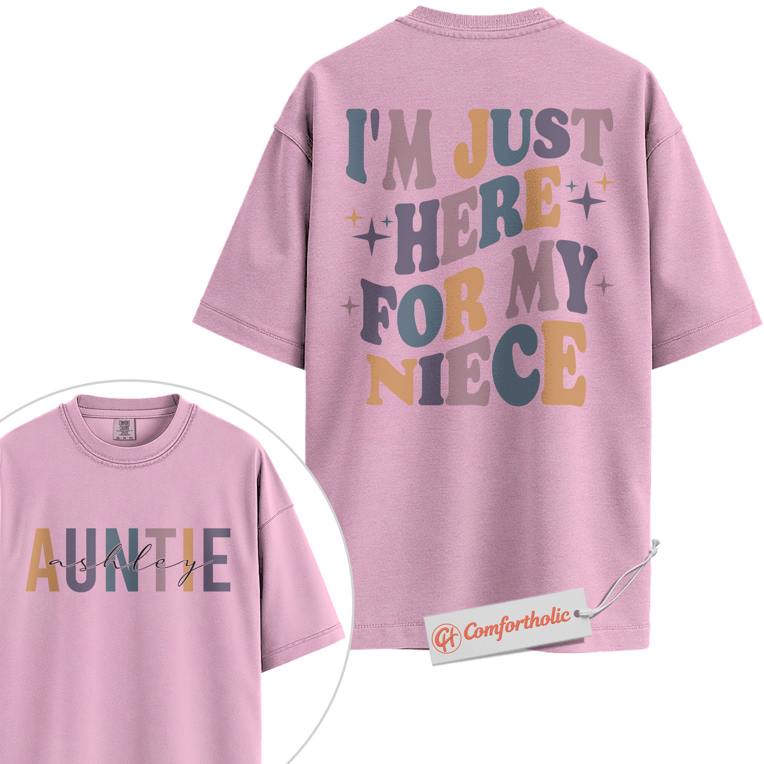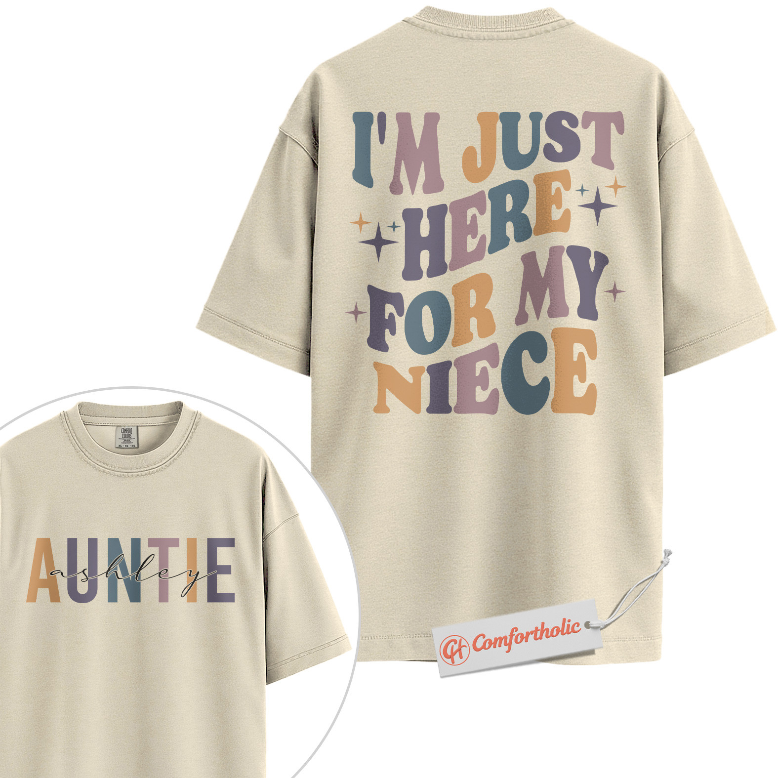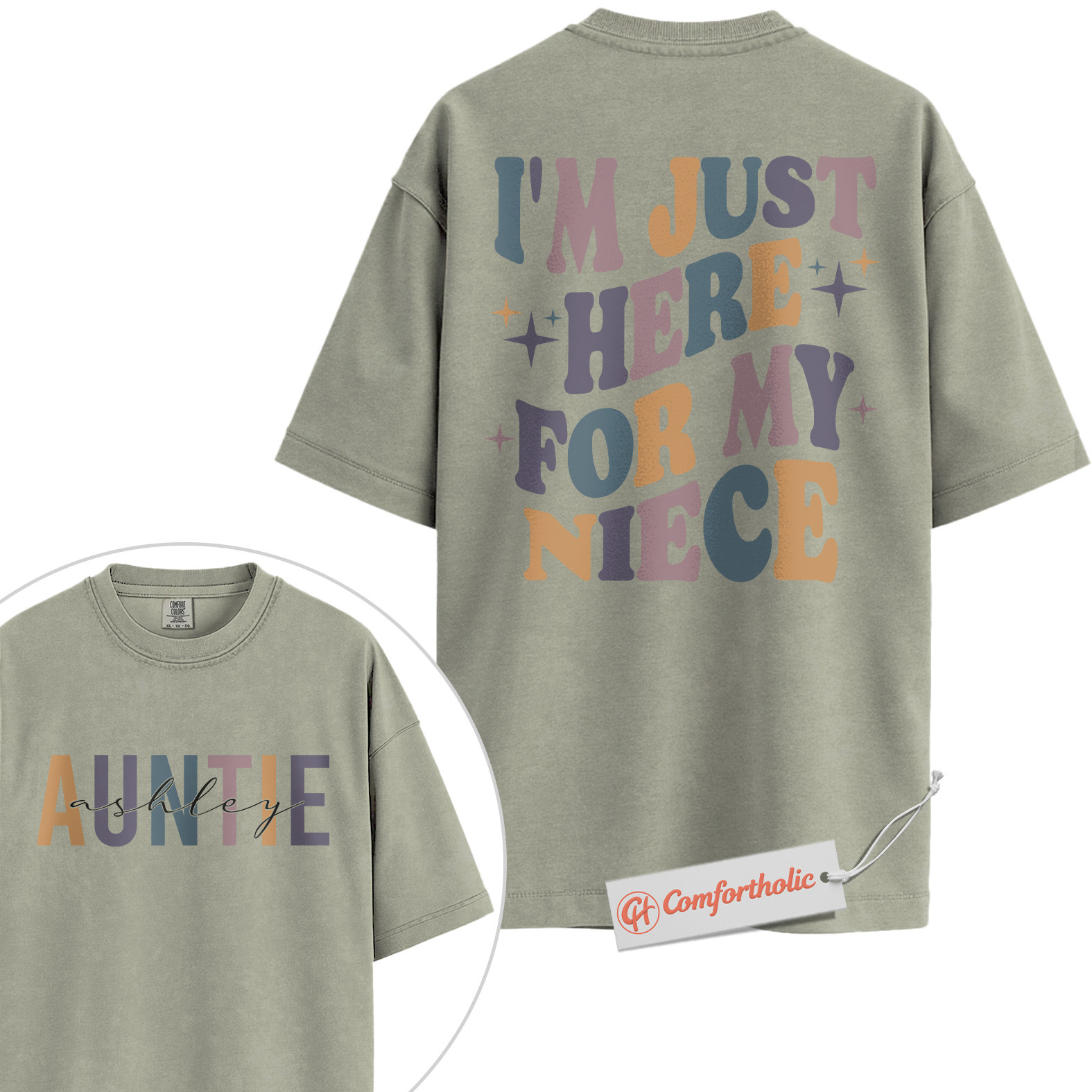 Personalized Auntie Shirt, I’m Just Here for My Niece T-Shirt, Funny Family Graphic Tee, Gift for Aunts, Custom Auntie Name Comfort Colors Shirt 2-Sided