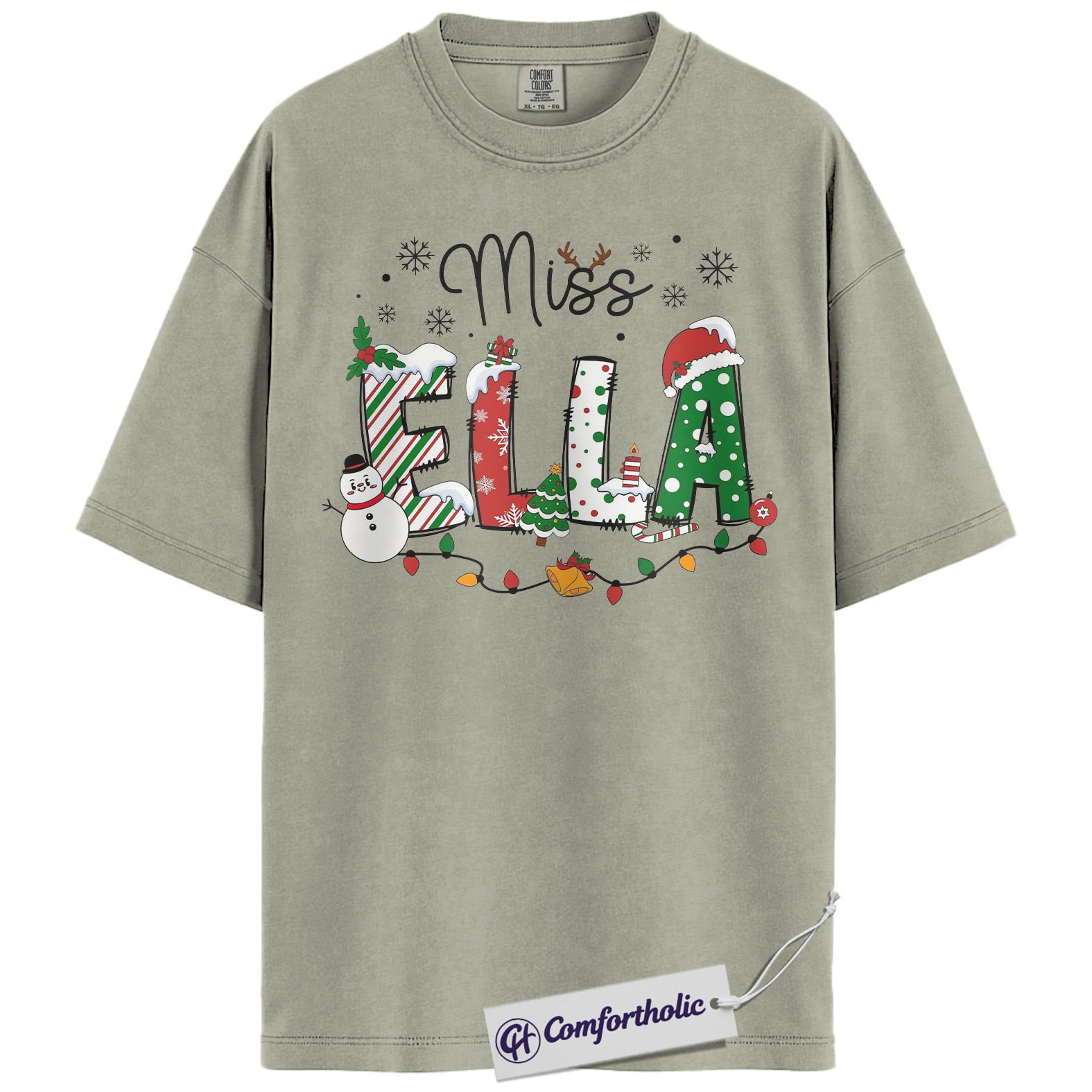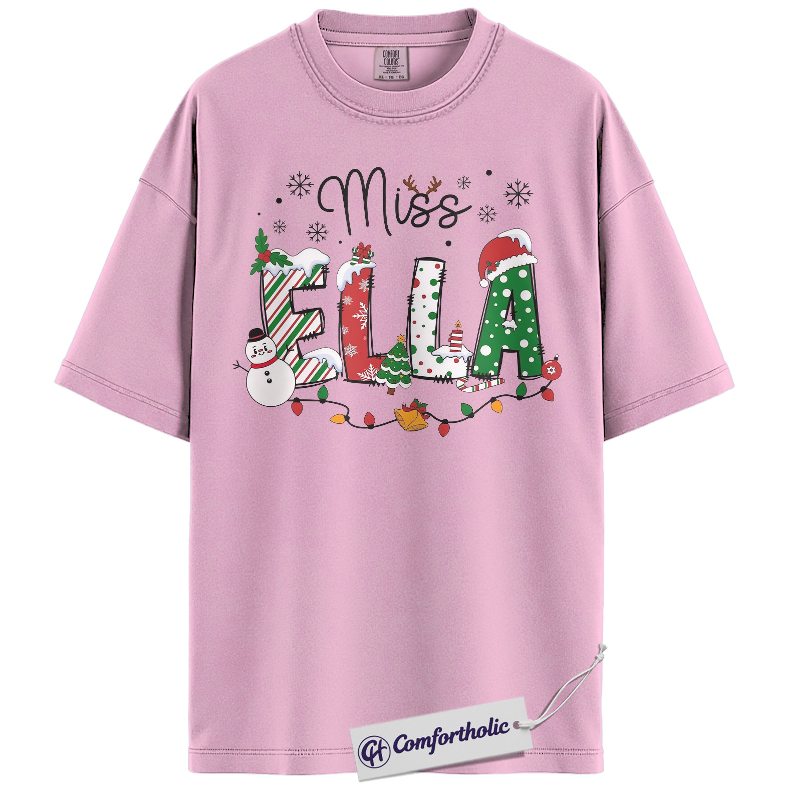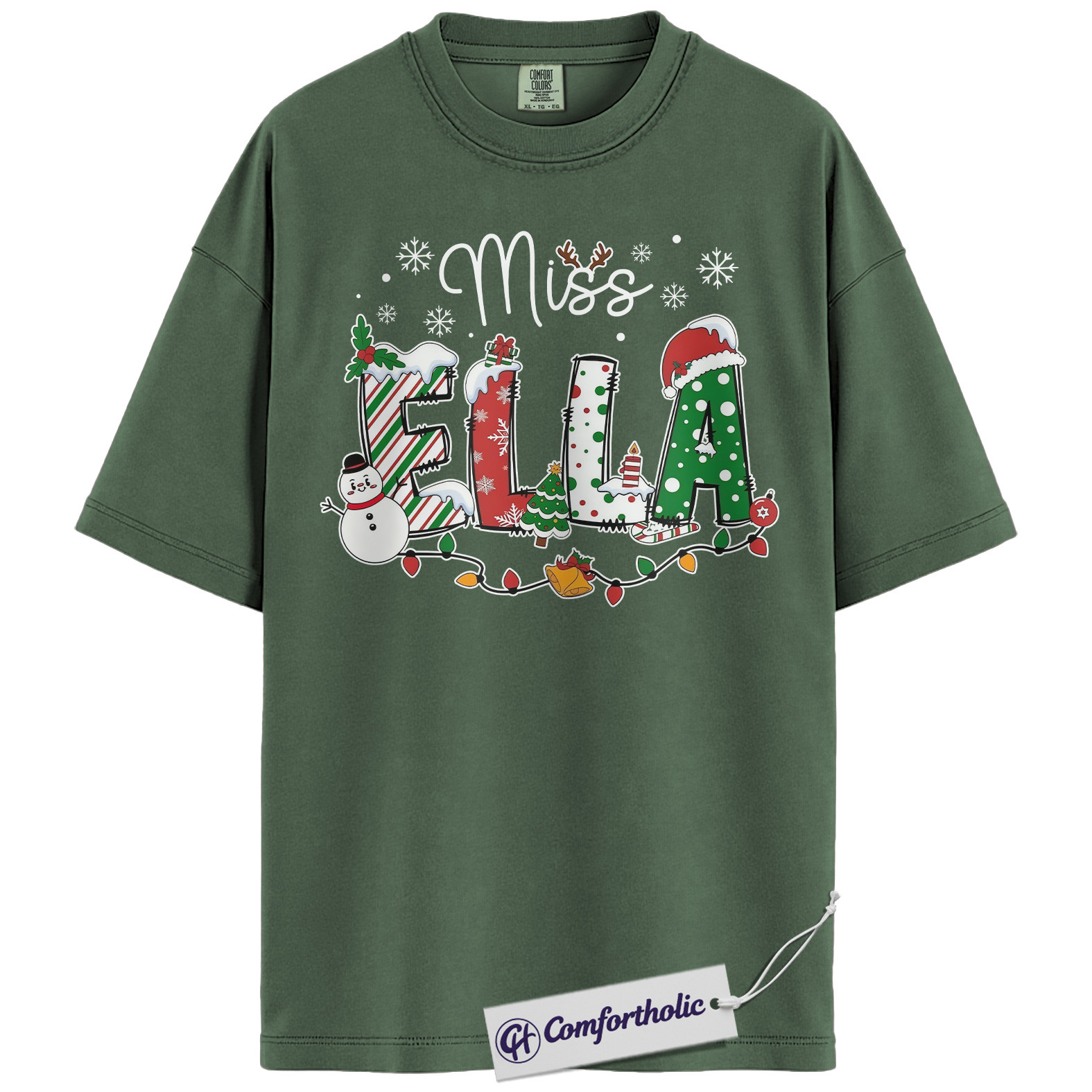 Personalized Christmas Teacher Shirt, Custom Name Holiday T-Shirt, Cute Festive Graphic Tee, Gift for Teachers & Educators, Christmas Comfort Colors Shirt