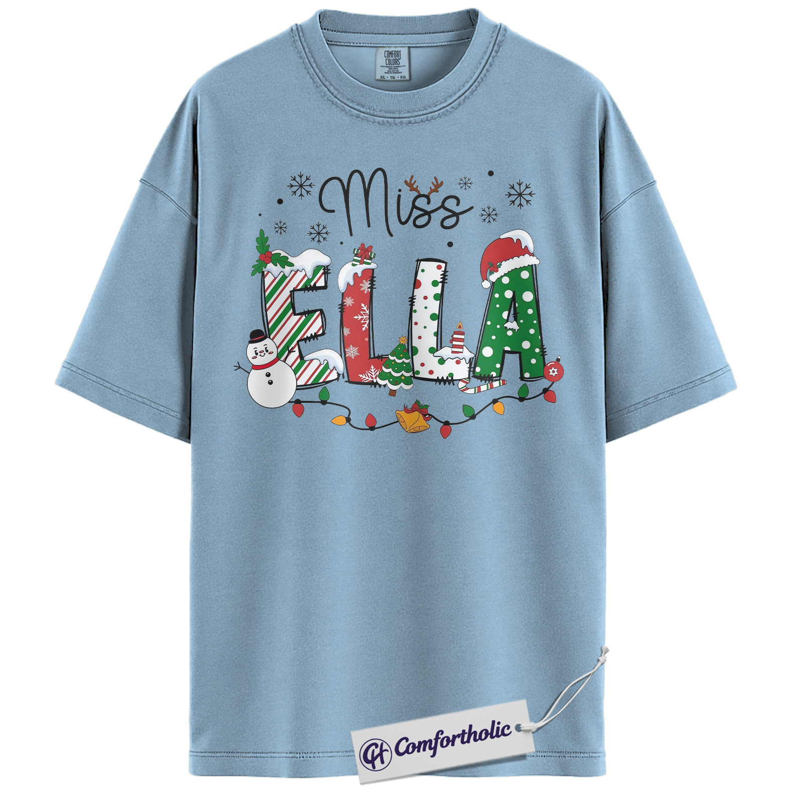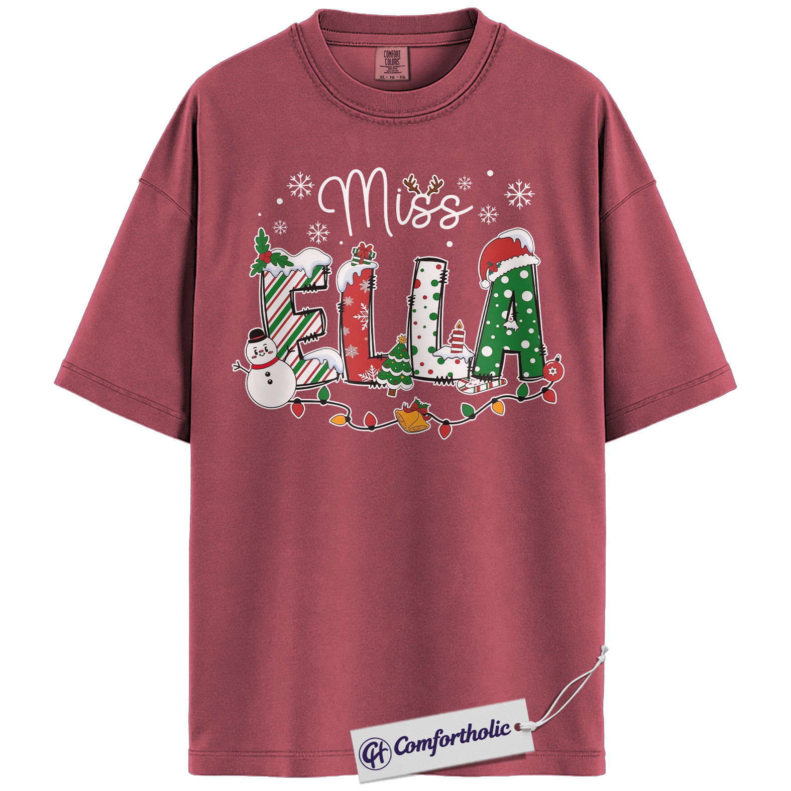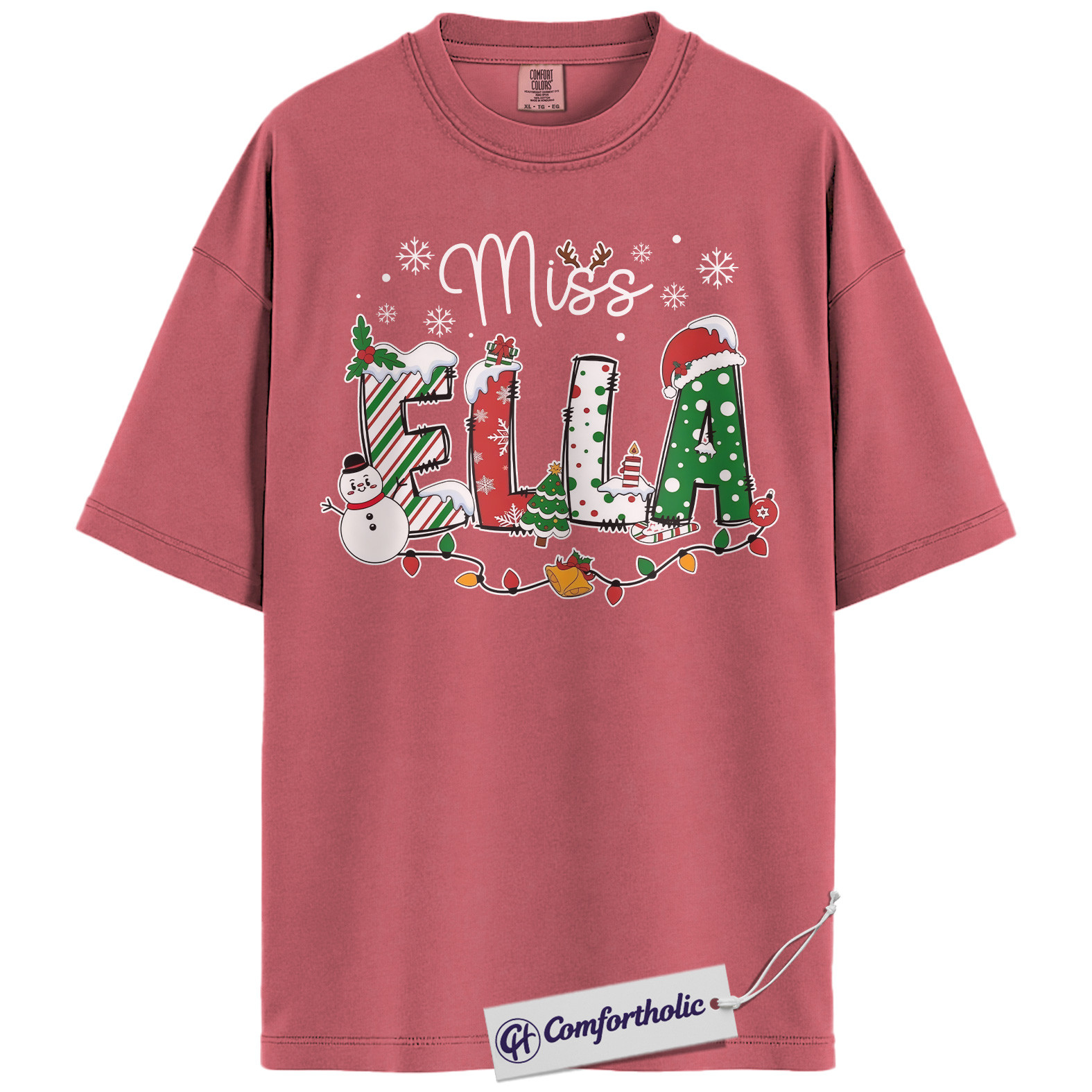 Personalized Christmas Teacher Shirt, Custom Name Holiday T-Shirt, Cute Festive Graphic Tee, Gift for Teachers & Educators, Christmas Comfort Colors Shirt