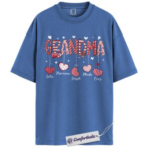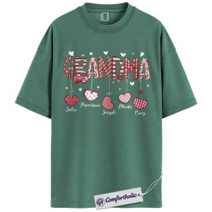 Personalized Grandma Valentine Shirt, Custom Heart Graphic Tee with Grandkids’ Names, Family T-Shirt, Gift for Grandma, Comfort Colors Shirt