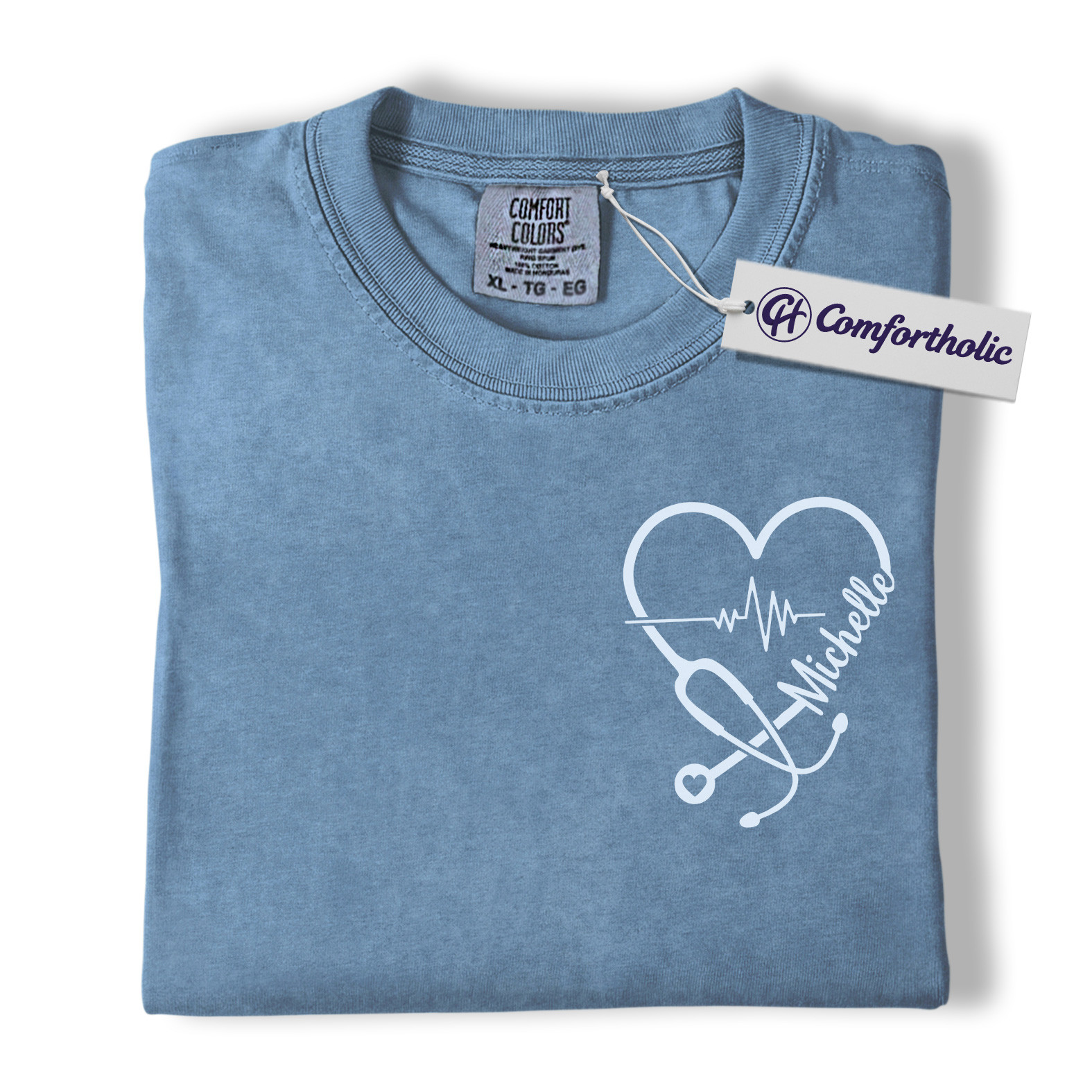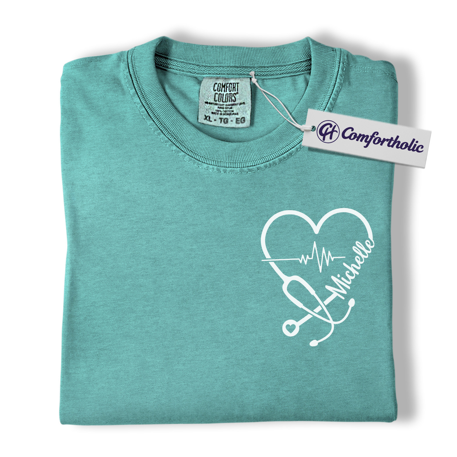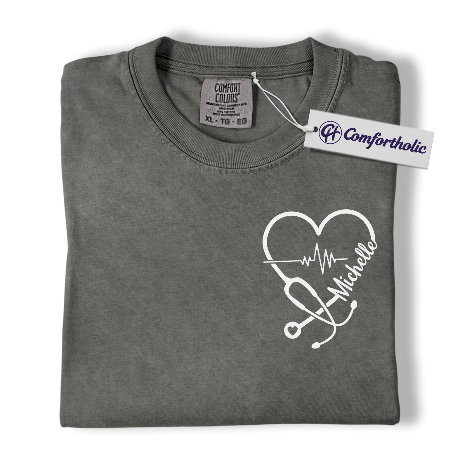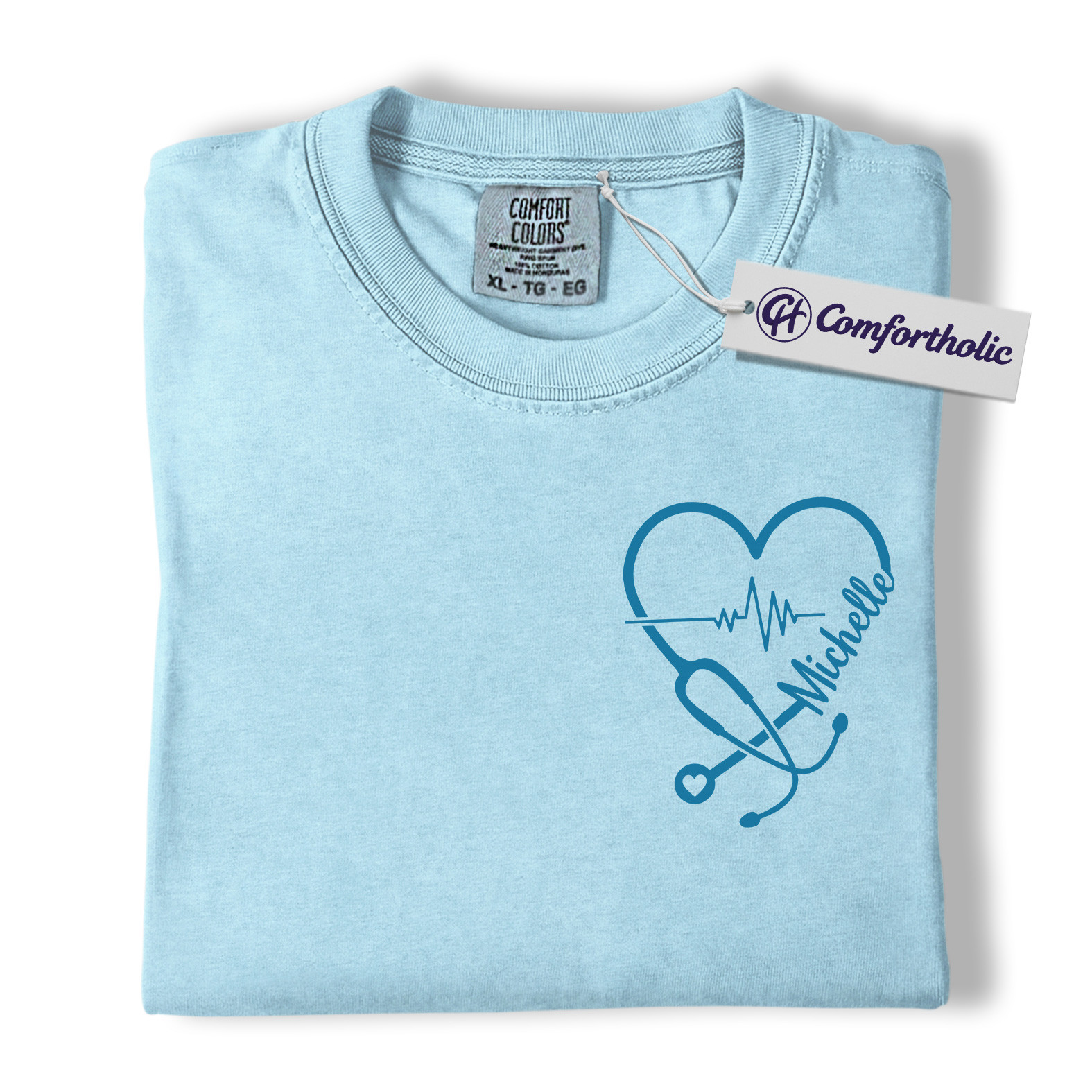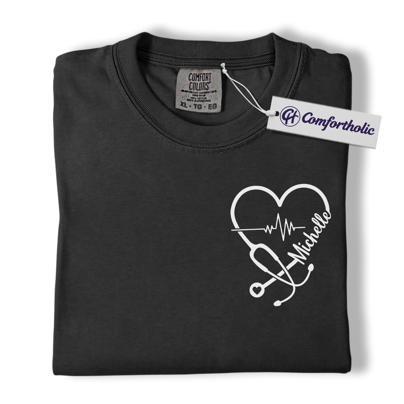 Personalized Nurse Heartbeat Shirt, Custom Stethoscope Name T-Shirt, Medical Professional Graphic Tee, Gift for Healthcare Workers, Comfort Colors Shirt
