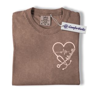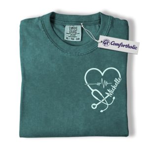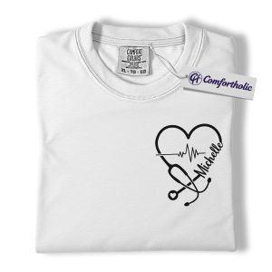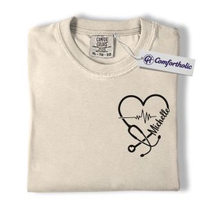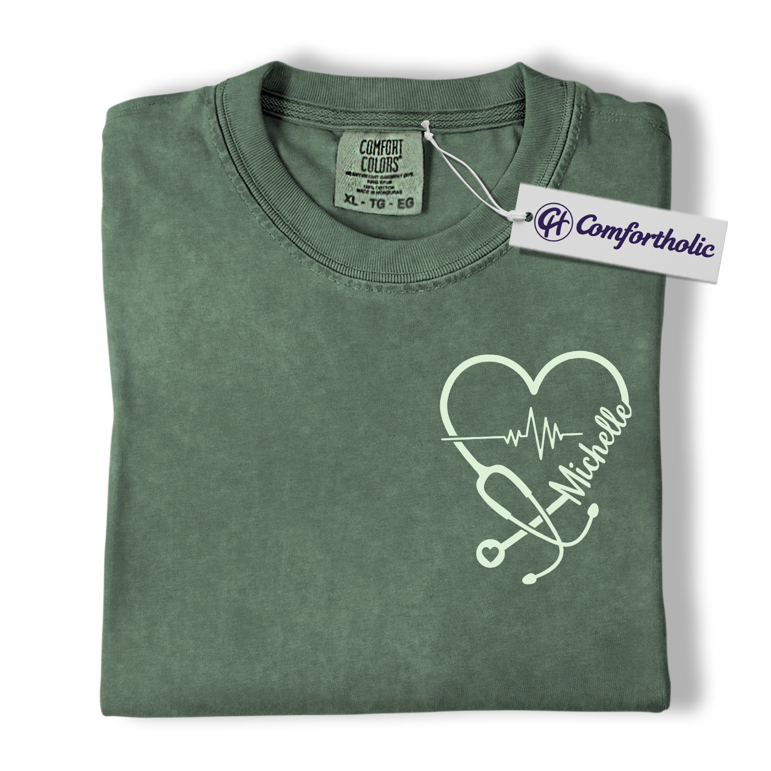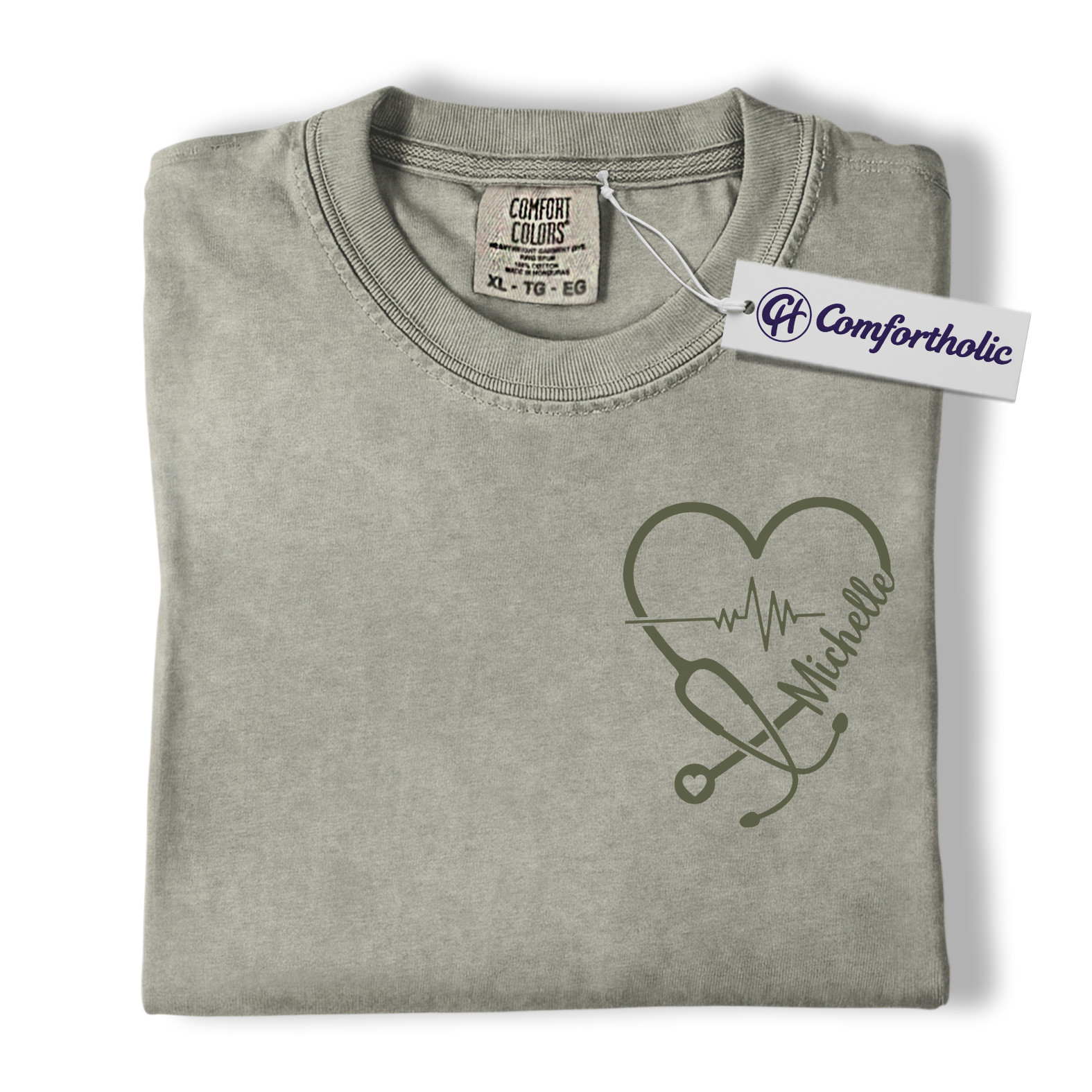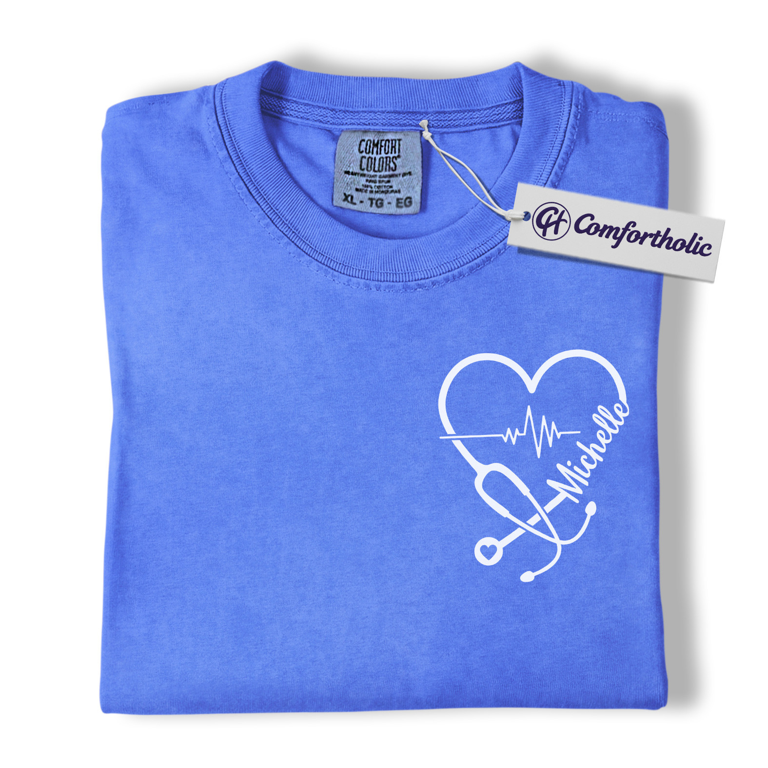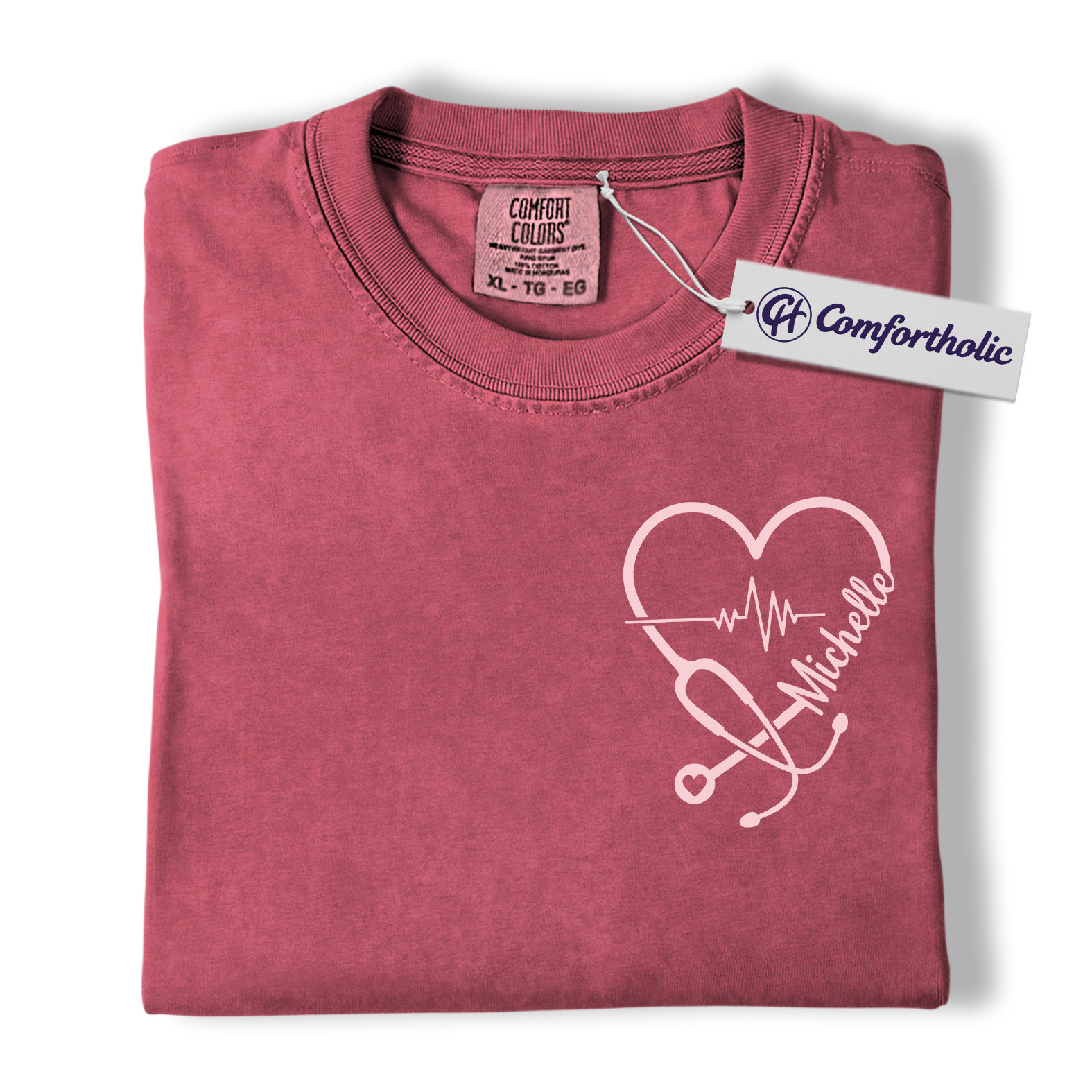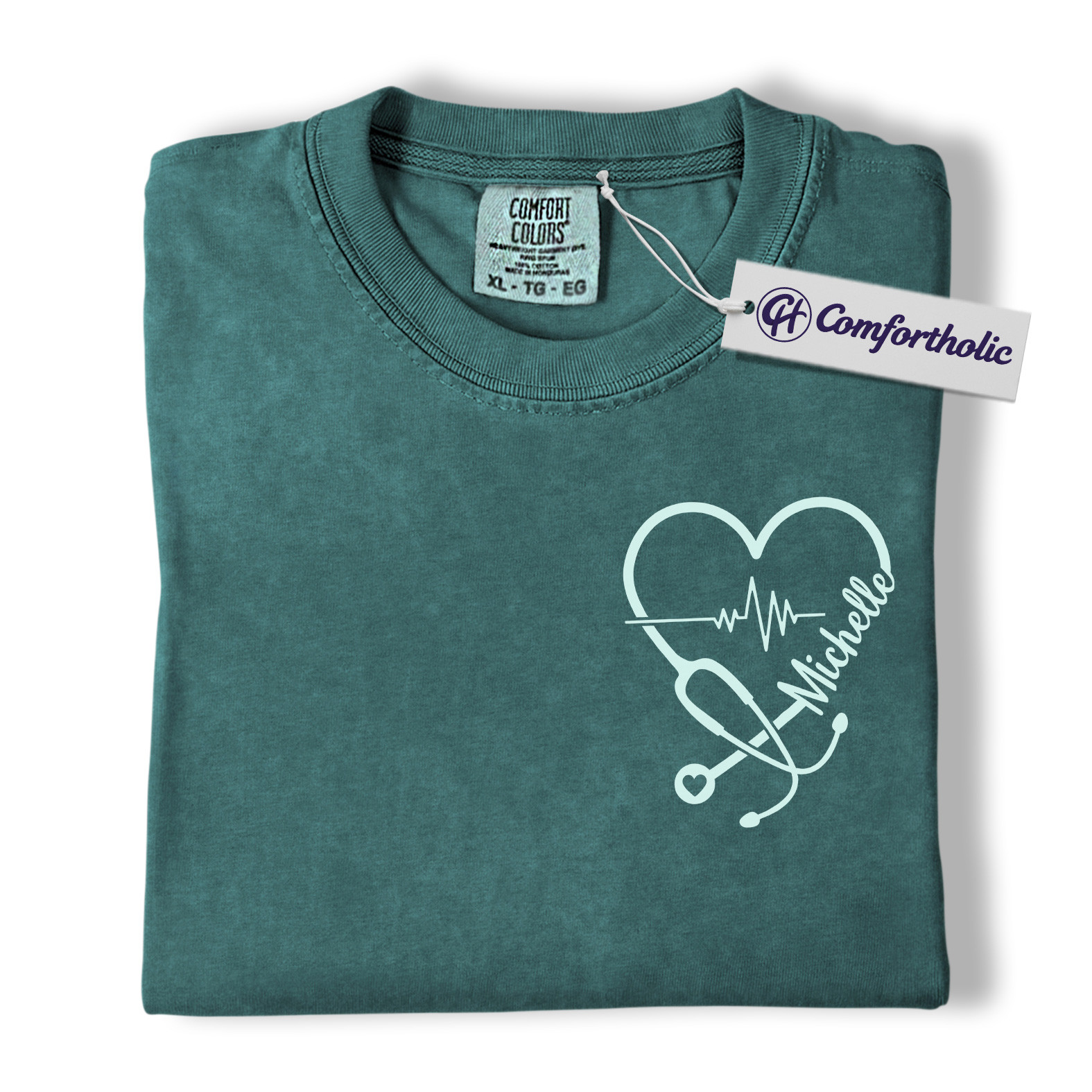 Personalized Nurse Heartbeat Shirt, Custom Stethoscope Name T-Shirt, Medical Professional Graphic Tee, Gift for Healthcare Workers, Comfort Colors Shirt