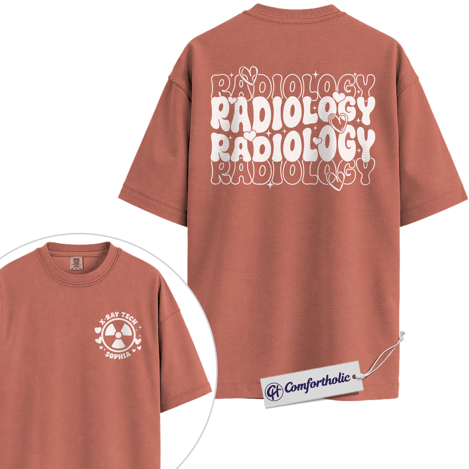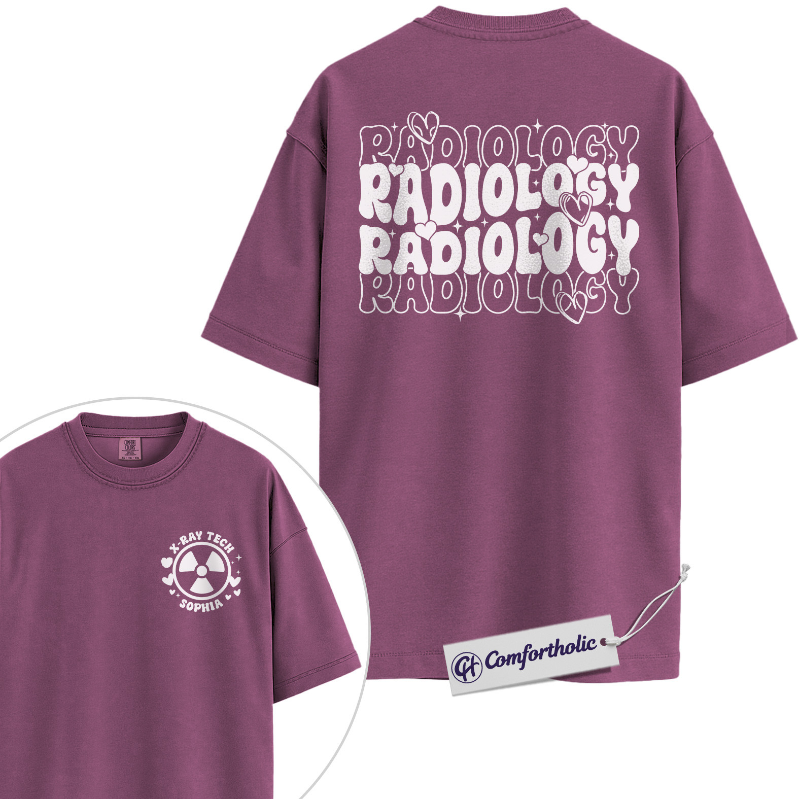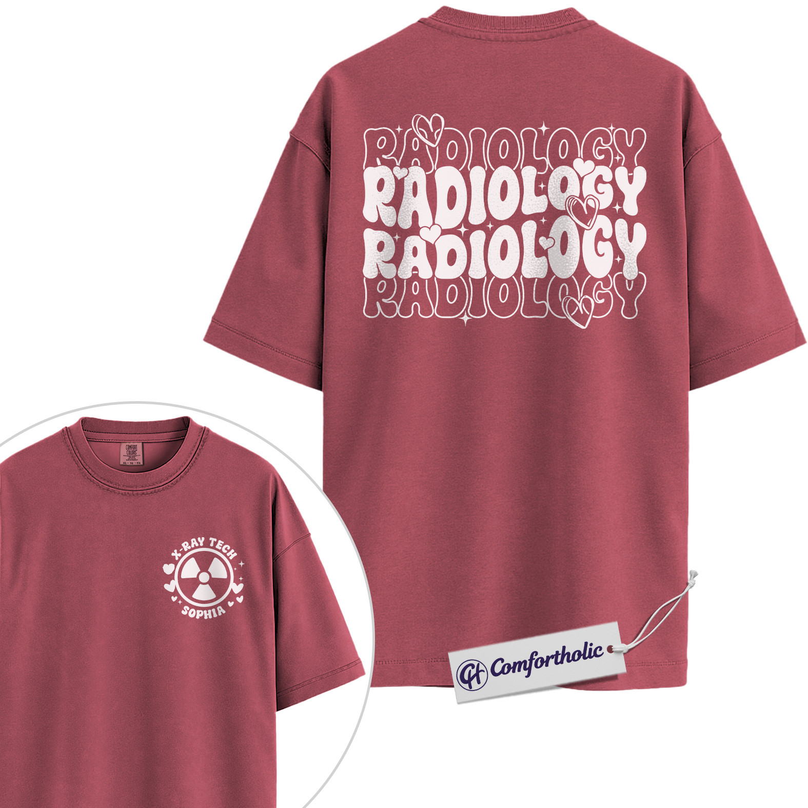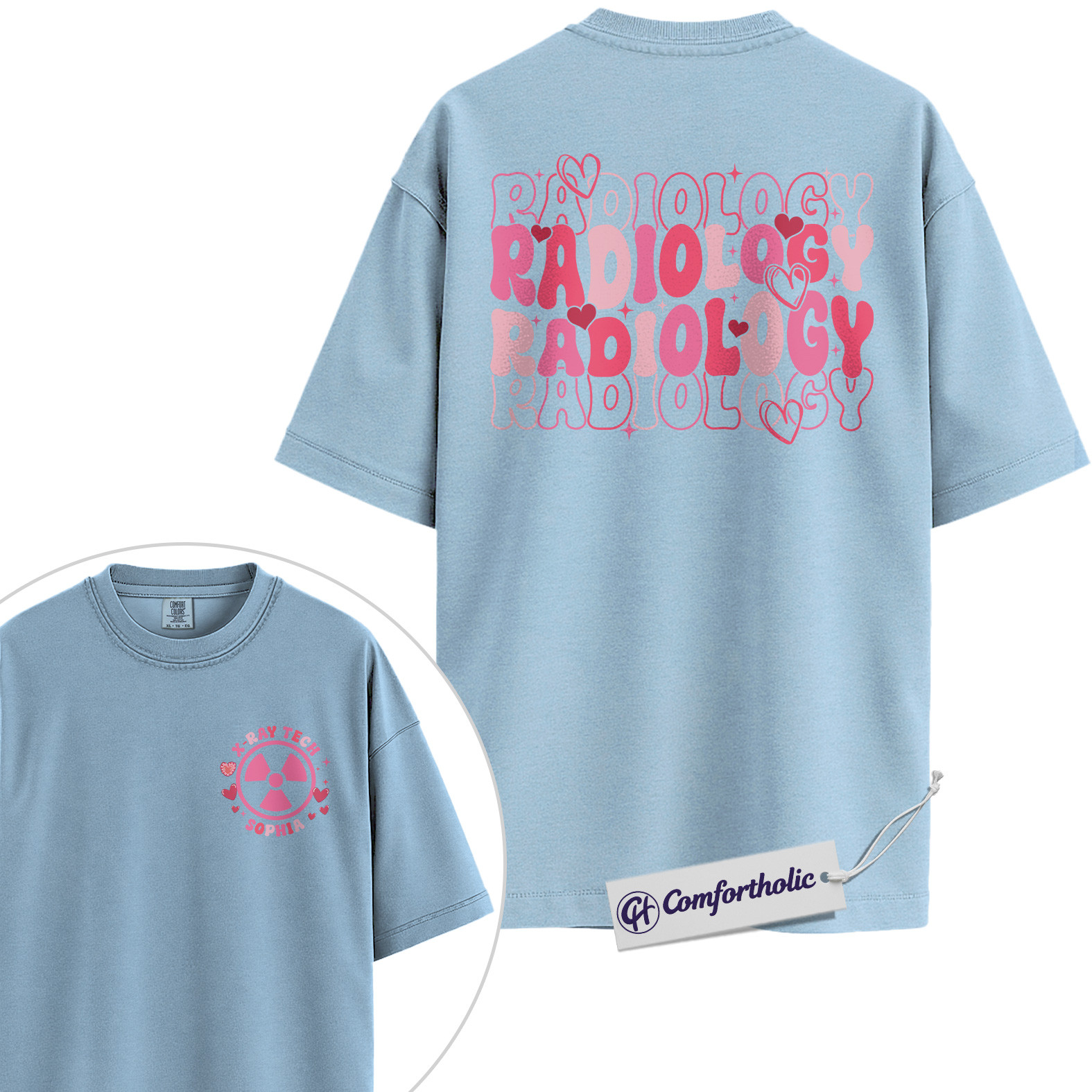 Personalized Radiology Shirt, Custom Name X-Ray Tech Graphic Tee, Cute Medical Rad Tech T-Shirt, Gift for Radiology Technologists, Comfort Colors Shirt 2-Sided