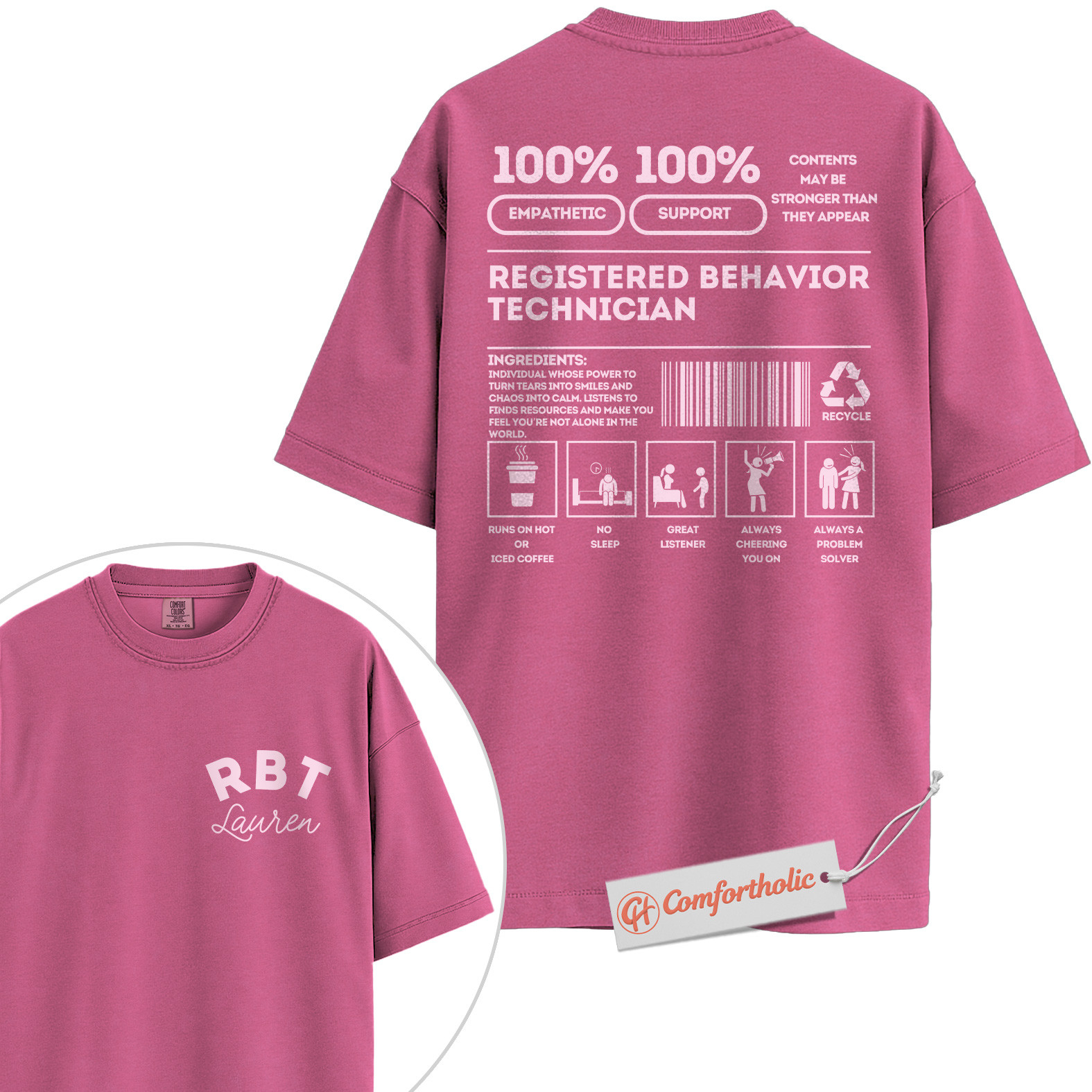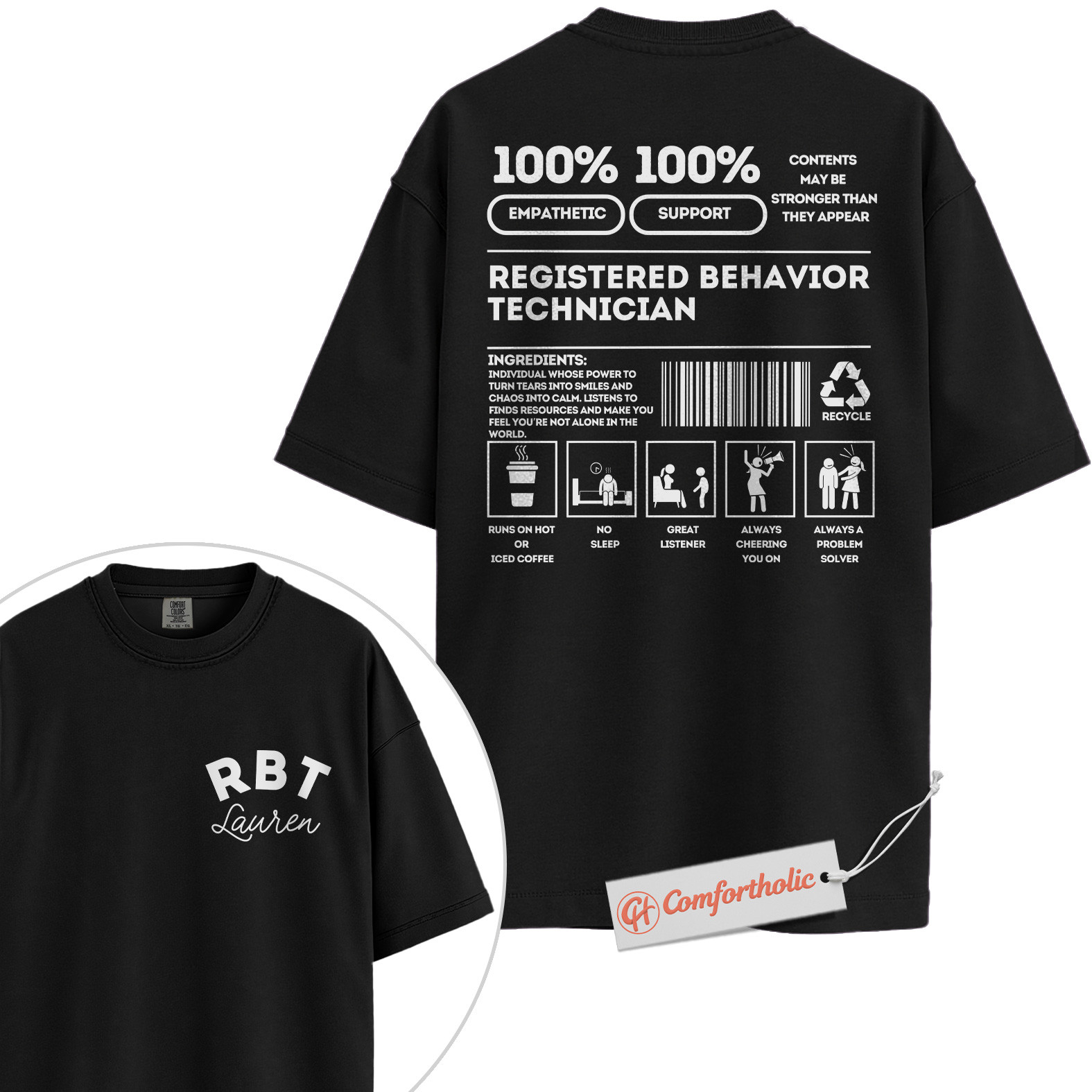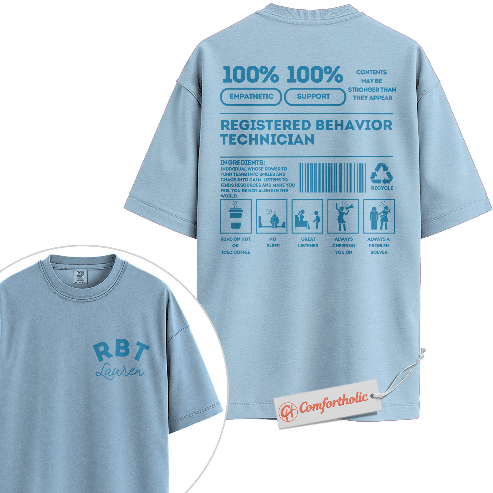 Personalized RBT Shirt, Funny Registered Behavior Technician T-Shirt, Custom ABA Therapist Tee, Cute Gift for RBTs, Behavioral Tech Staff Comfort Colors Shirt 2-Sided