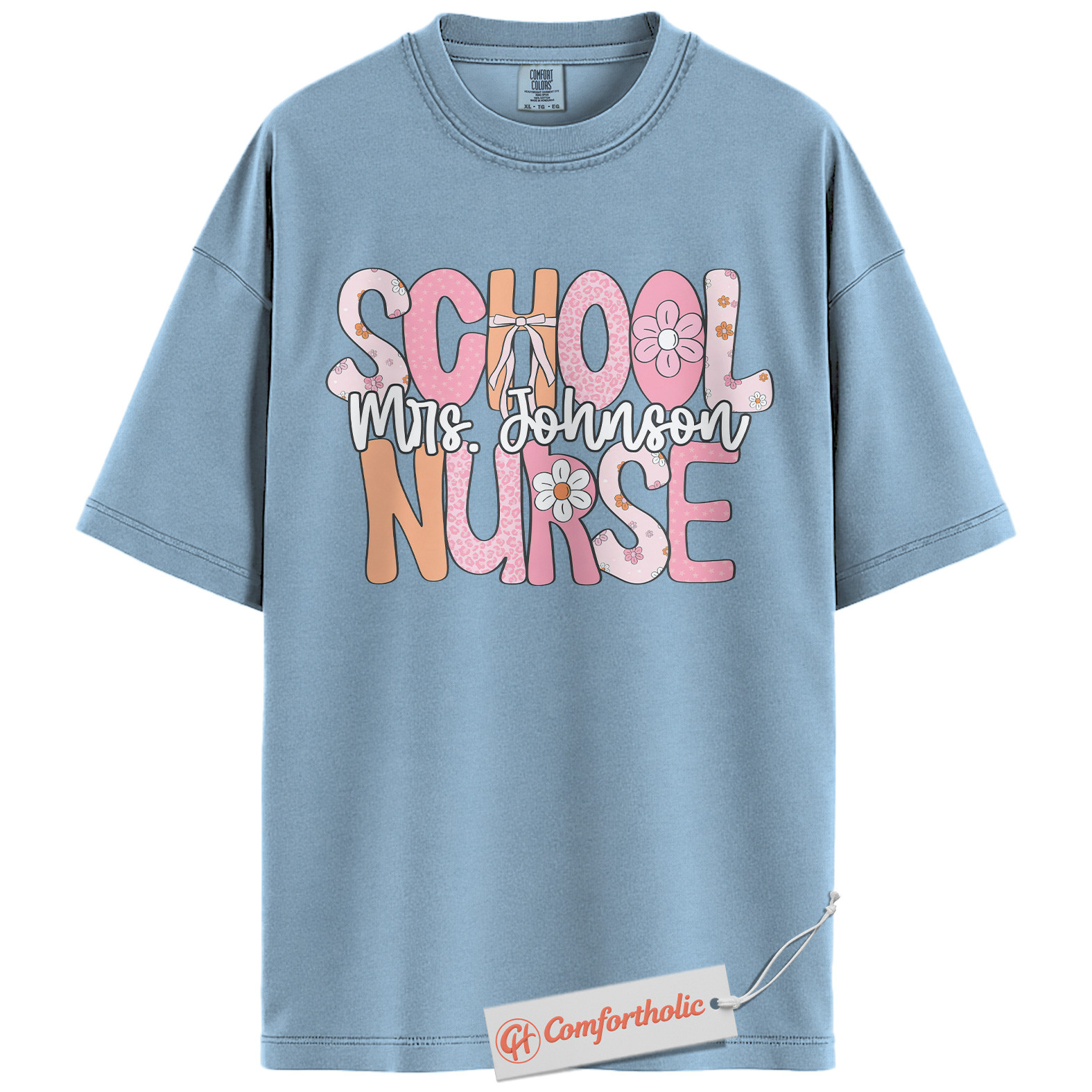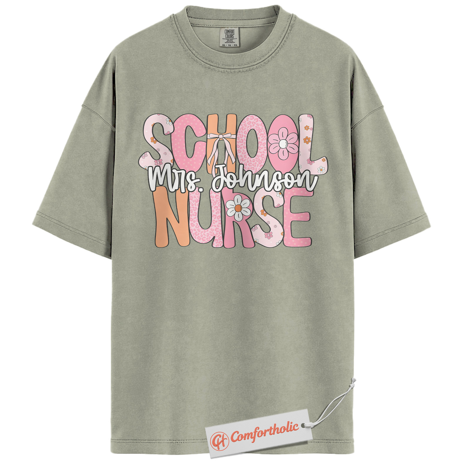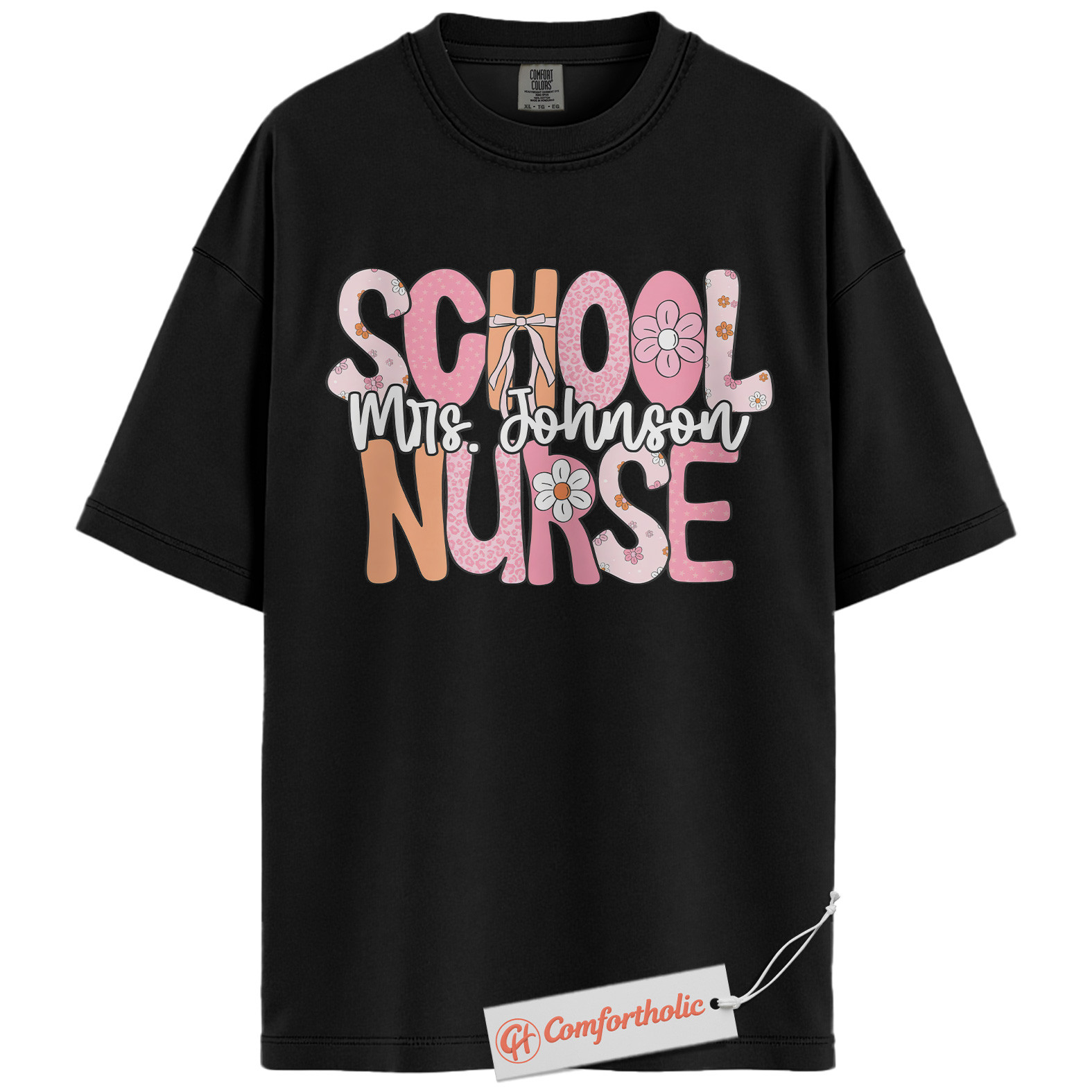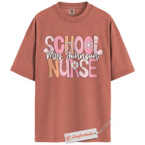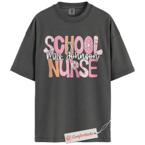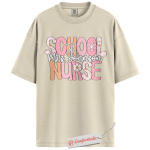 Personalized School Nurse Shirt, Custom Name T-Shirt for Nurses, Back to School Gift for Medical Staff, Cute Groovy Nurse Comfort Colors Shirt