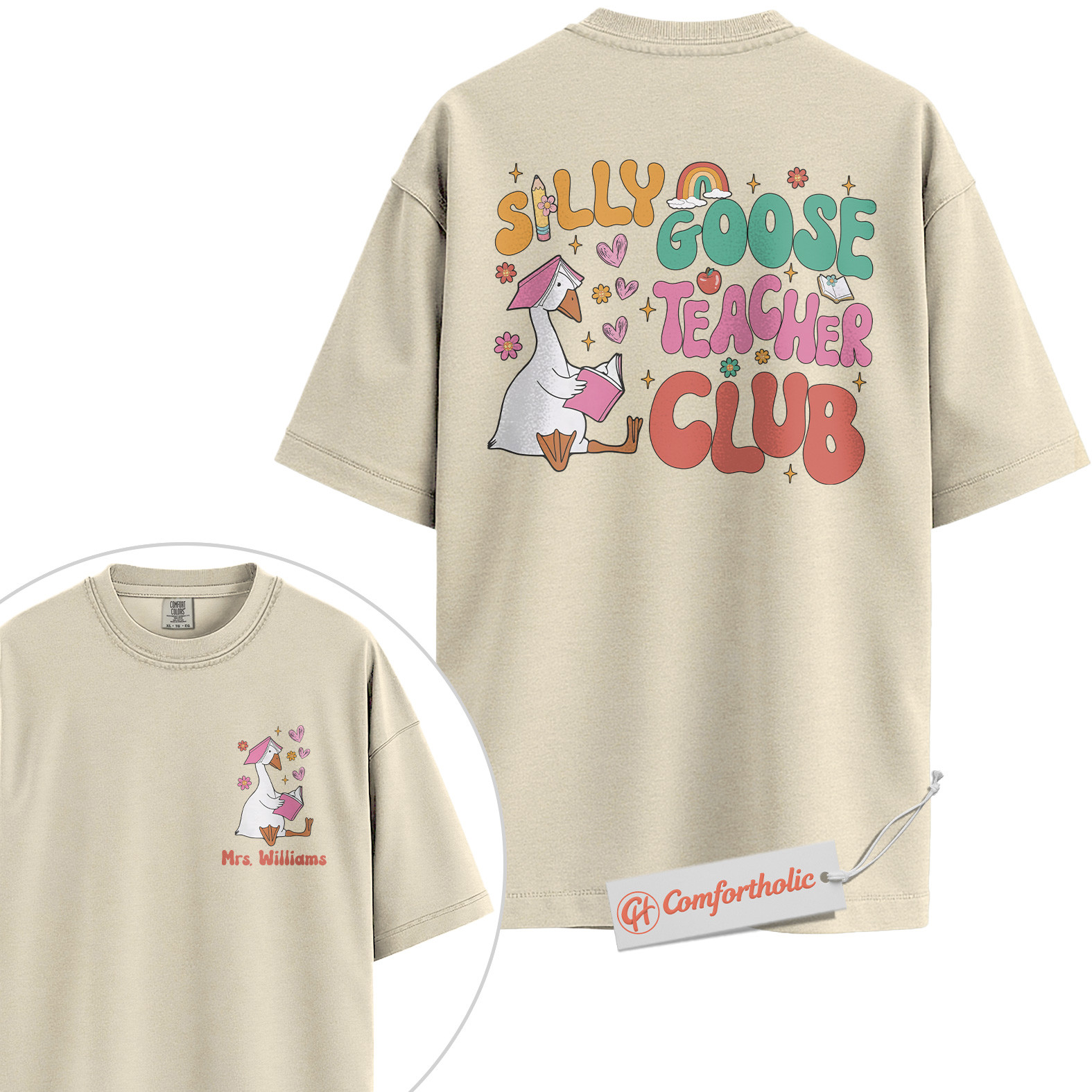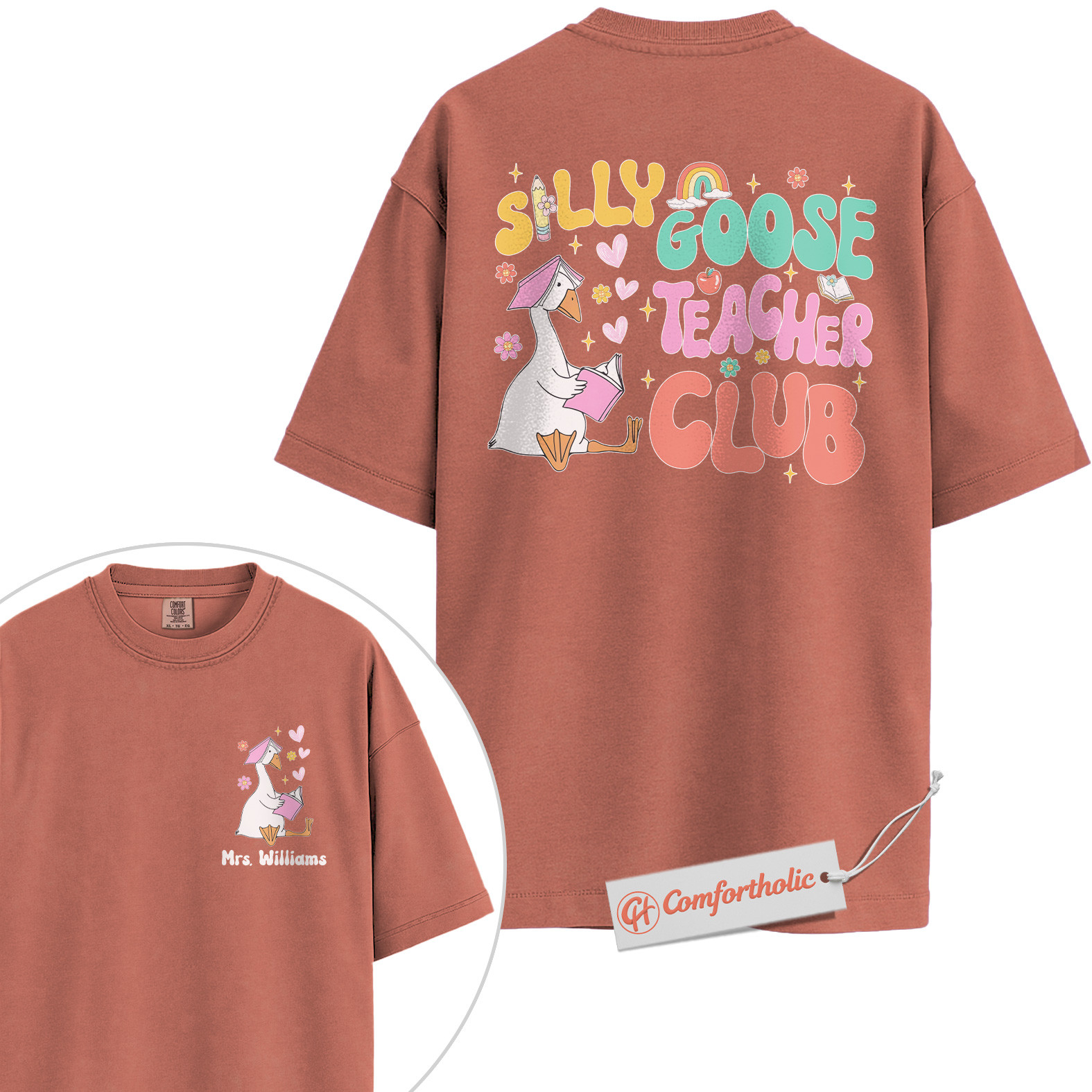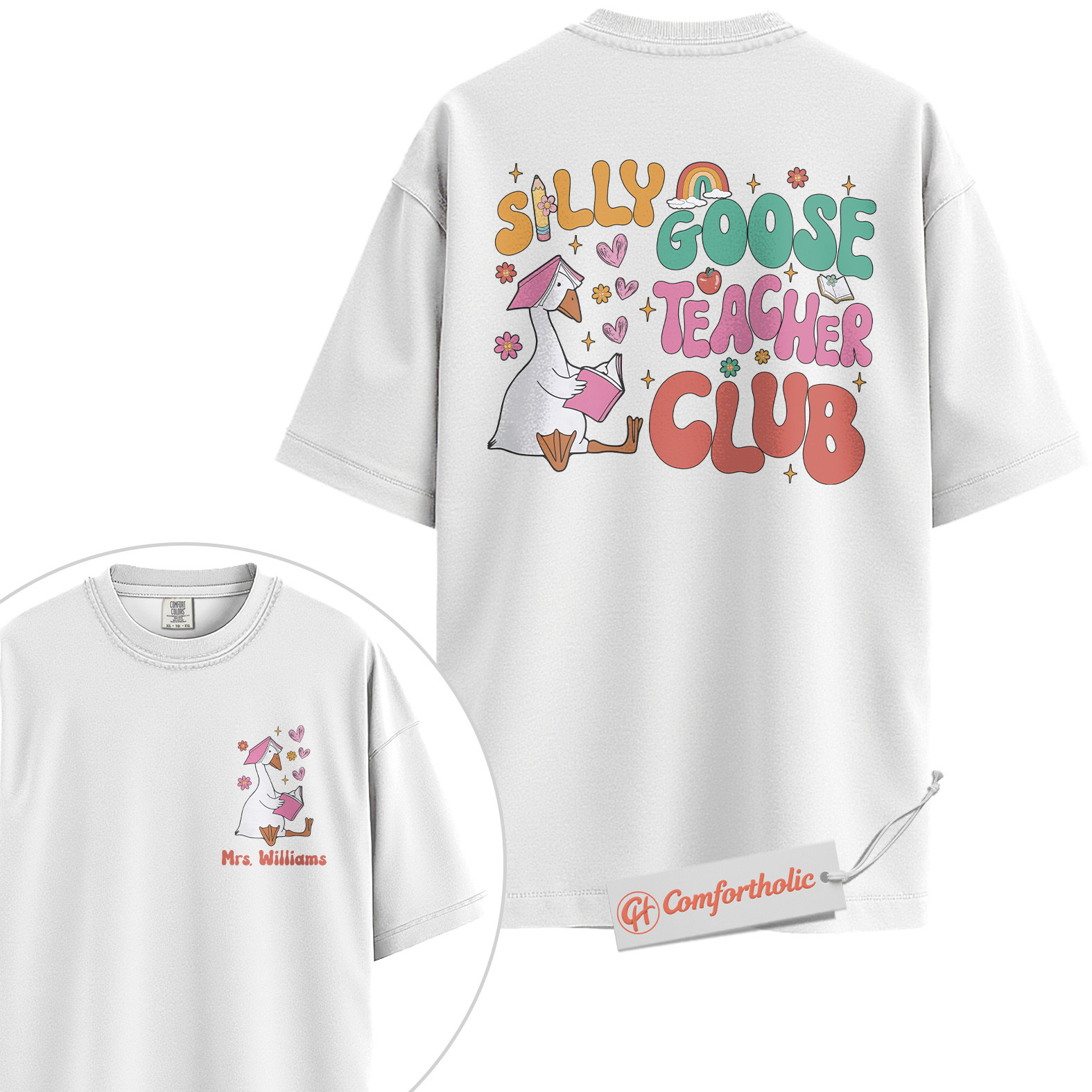 Personalized Silly Goose Teacher Club Shirt, Custom Teacher Name T-Shirt, Funny Classroom Graphic Tee, Back to School Comfort Colors Shirt 2-Sided