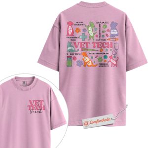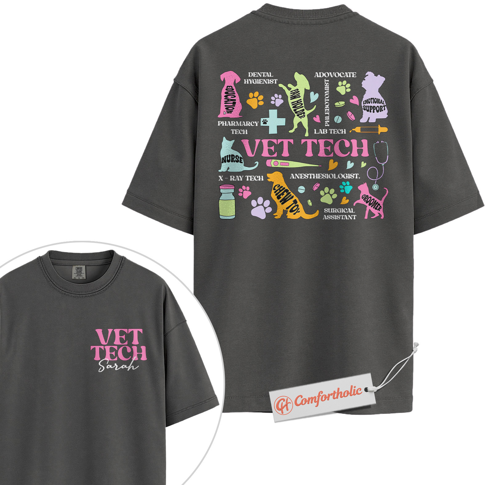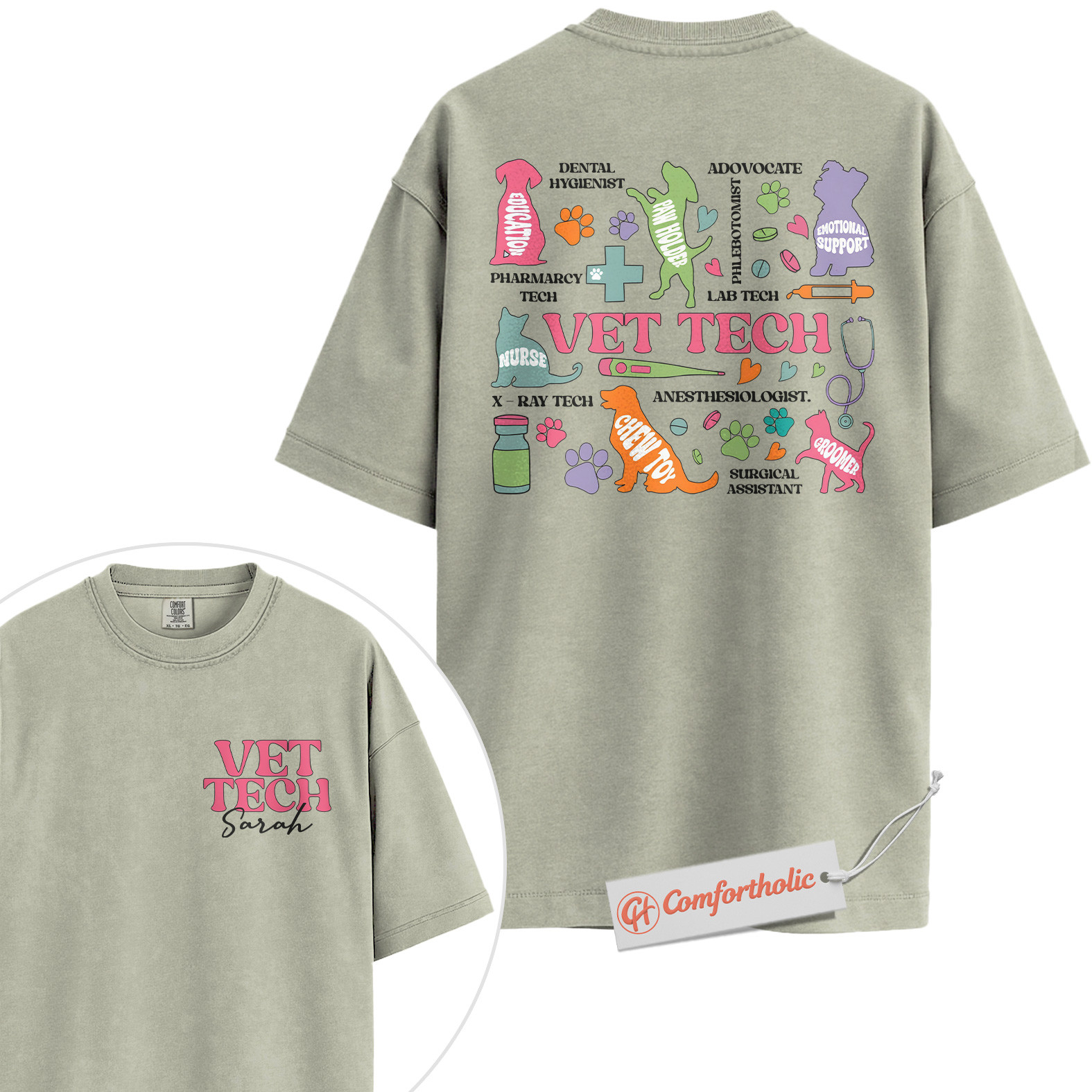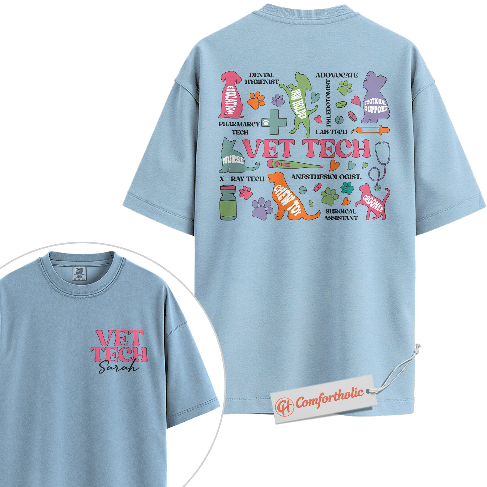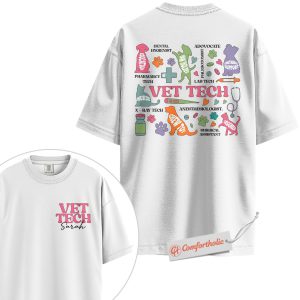Personalized Vet Tech Shirt, Colorful Veterinary Roles T-Shirt, Animal Care Team Tee, Cute Gift for Veterinary Nurses, Custom Pet Clinic Staff Comfort Colors Shirt 2-Sided