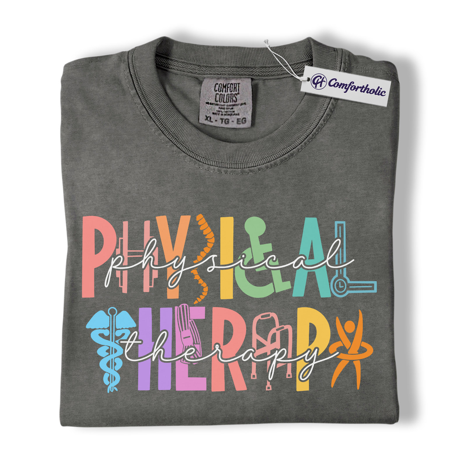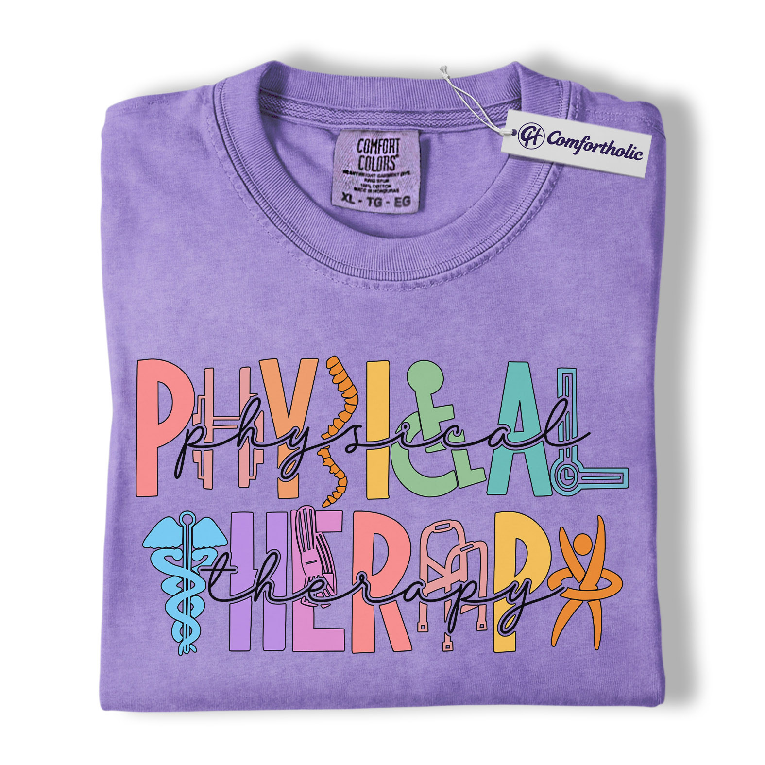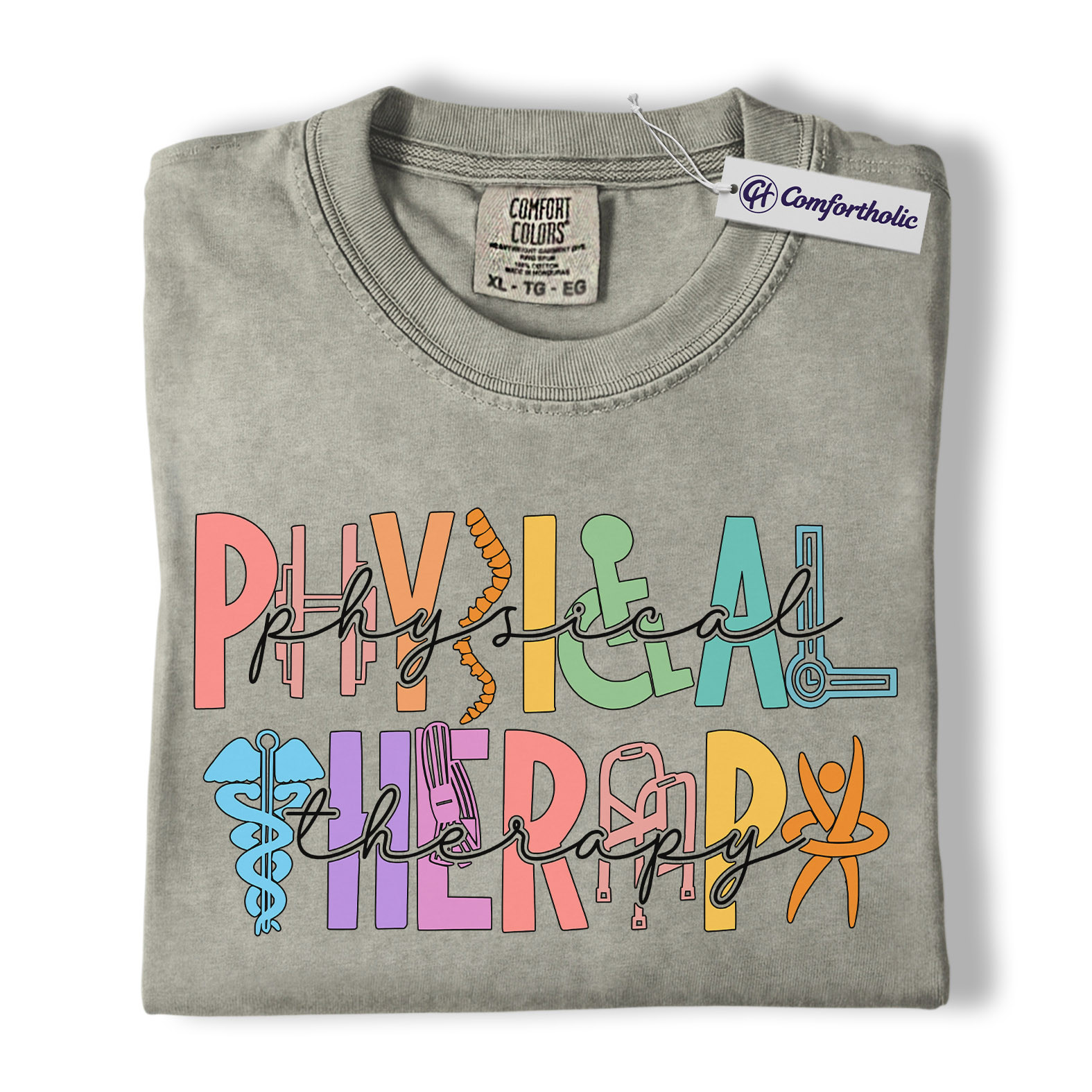 Physical Therapy Shirt, Colorful Retro Medical Graphic Tee, Physical Therapist PT Clinic T-Shirt, Gift for Physical Therapists & Rehab Staff, Comfort Colors Shirt