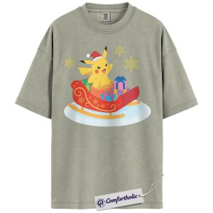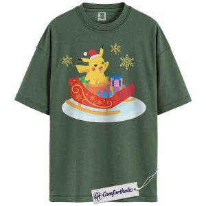 Pikachu Shirt, Pokemon Shirt, PKM Shirt, Christmas Shirt, Anime Graphic Tee, Christmas Comfort Colors Shirt