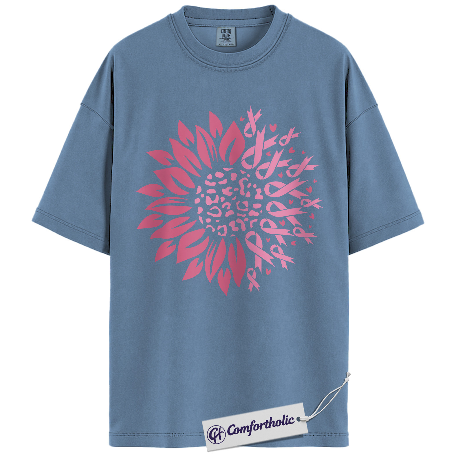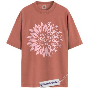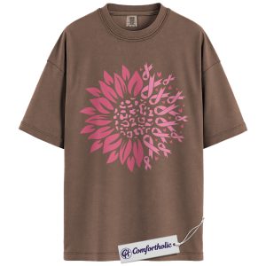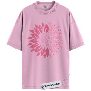 Pink Ribbon Sunflower Shirt, Breast Cancer Awareness T-Shirt, Leopard Print Floral Graphic Tee, Support Gift for Women, Comfort Colors Shirt