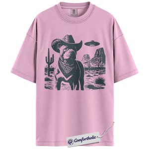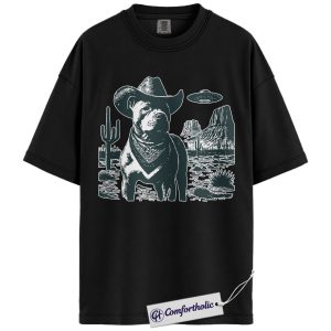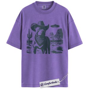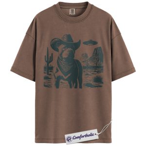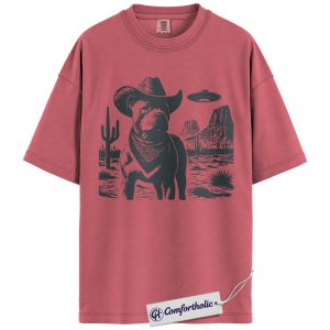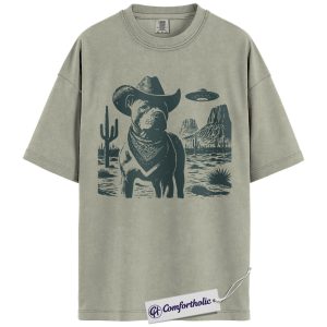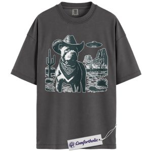 Pit Bull Shirt, Cowboy Dog UFO Western Desert Graphic Tee, Pitbull T-Shirt for Dog Moms & Dads, Funny Gift for Pitbull Lovers, Comfort Colors Shirt