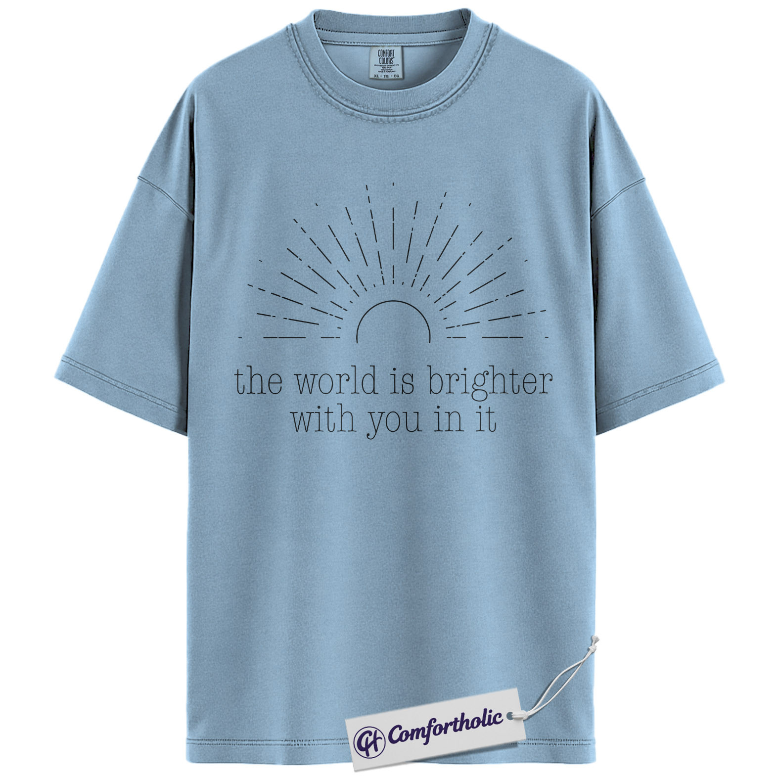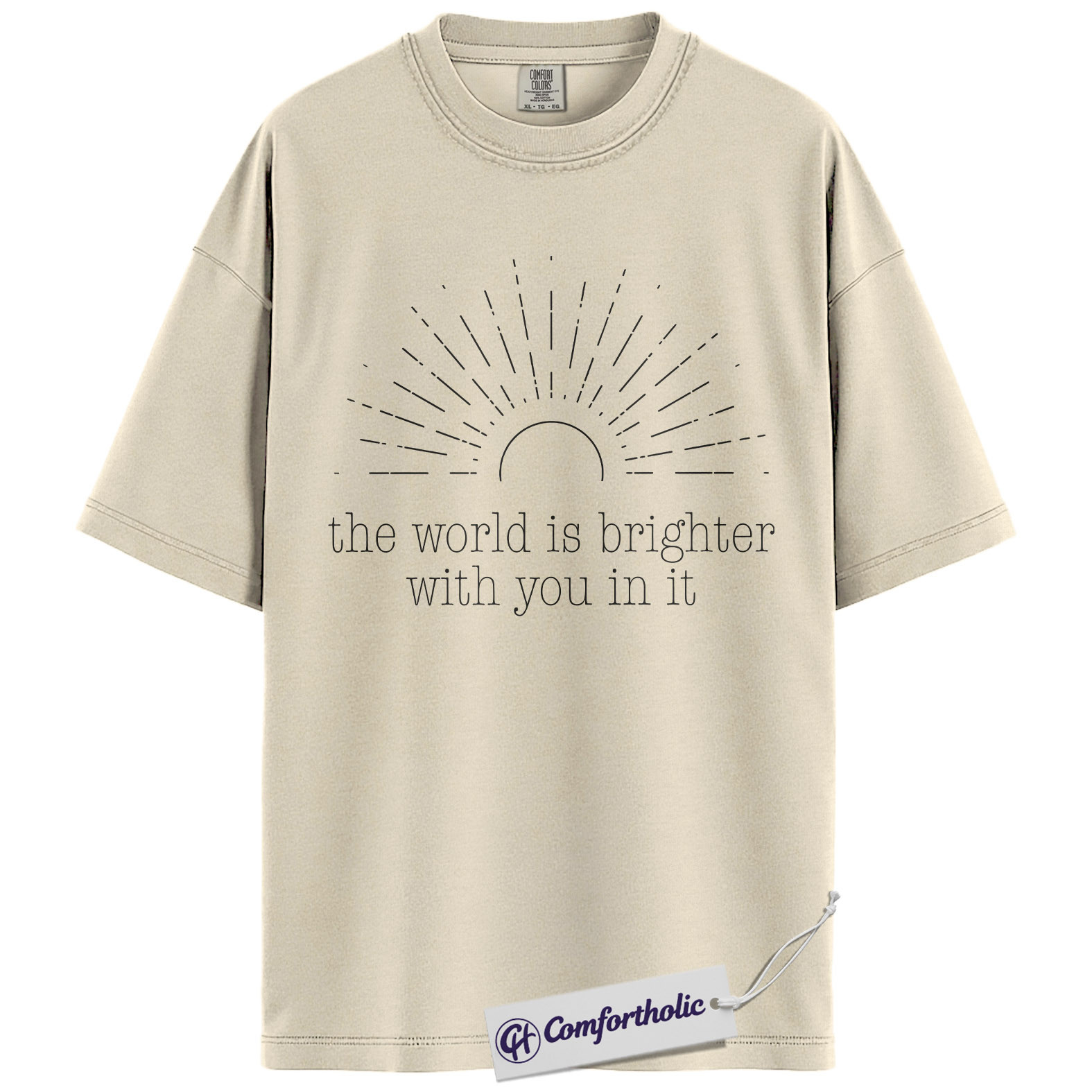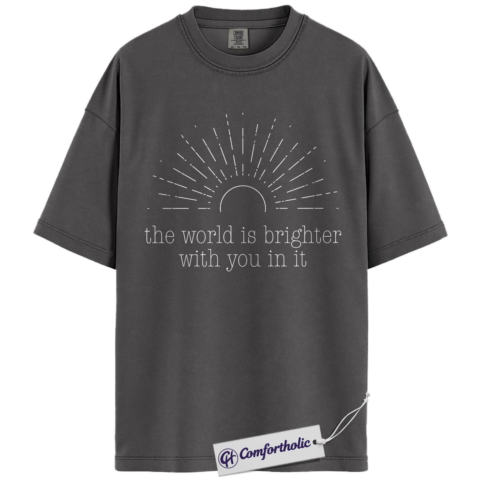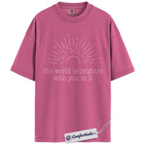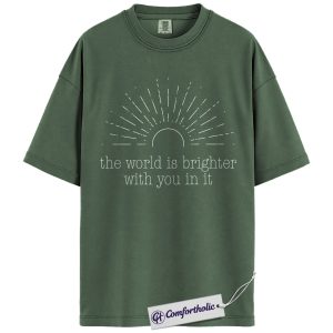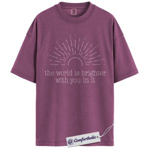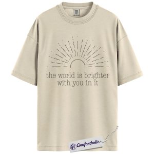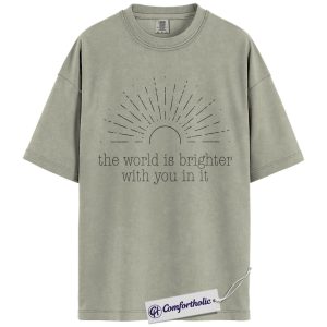 Positive Quote Shirt, The World Is Brighter With You In It Sun Graphic Tee, Encouragement T-Shirt for Women, Mental Health Gift, Comfort Colors Shirt