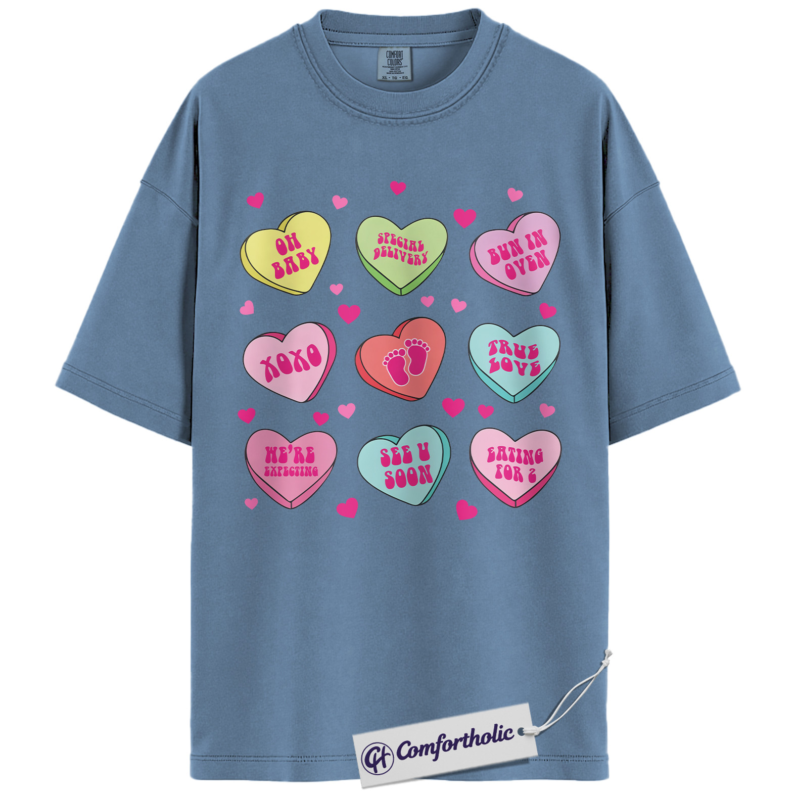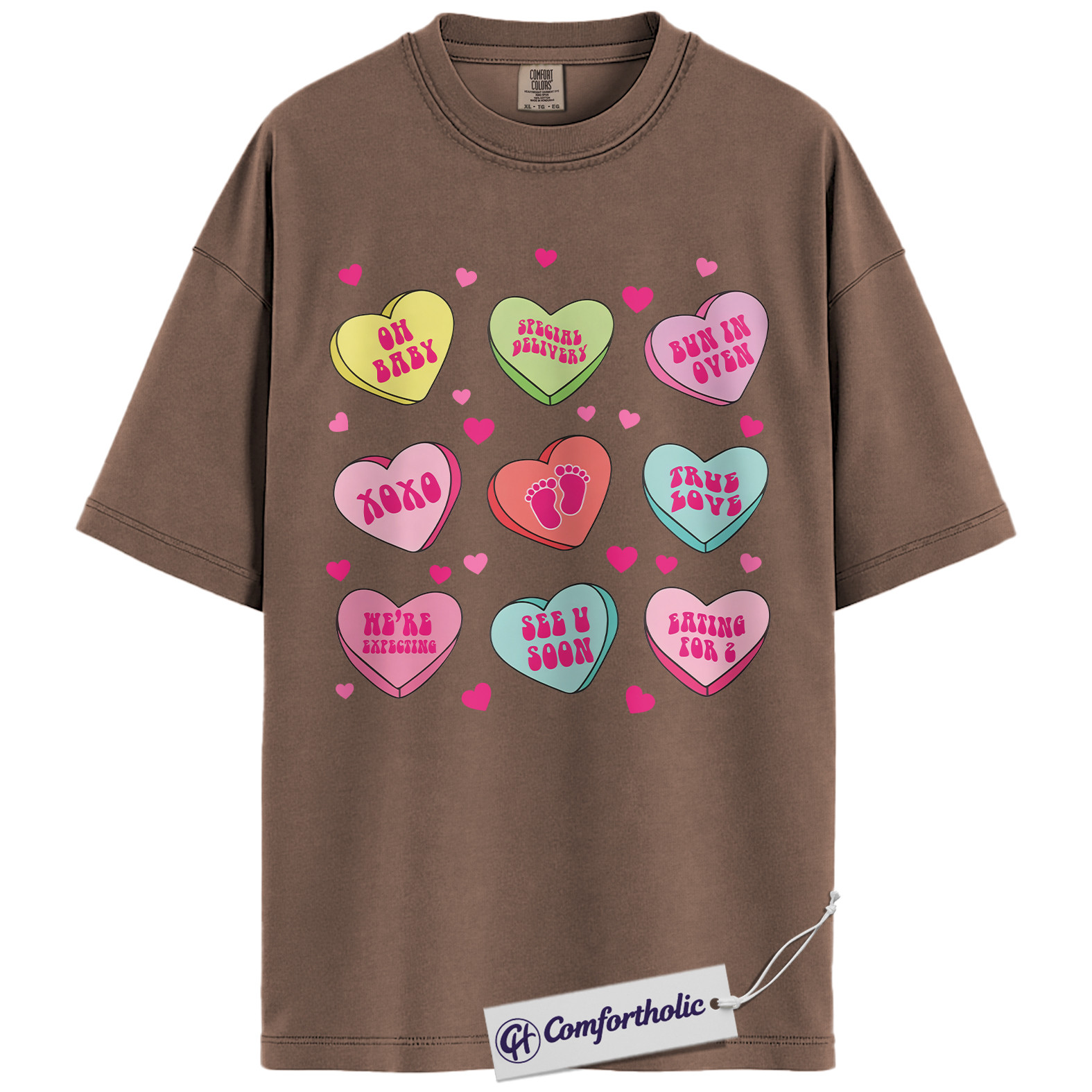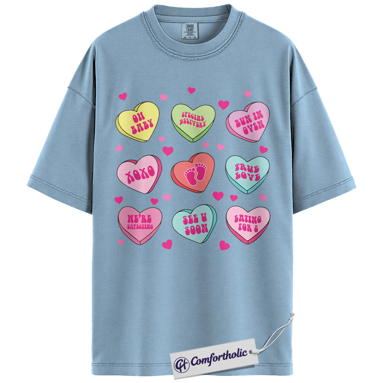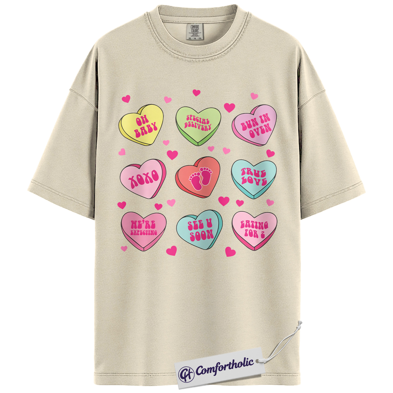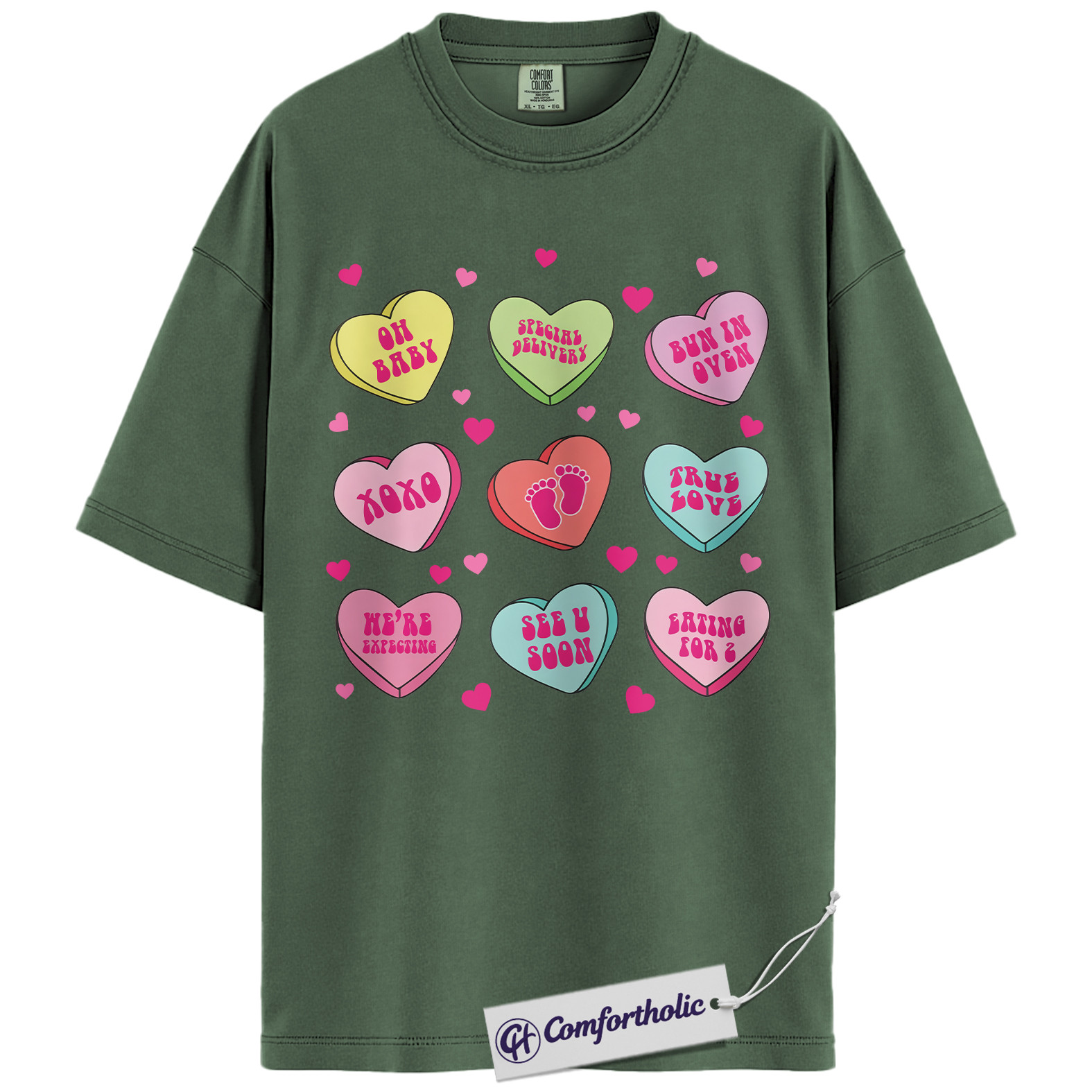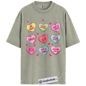 Pregnancy Announcement Shirt, Cute Valentine Mom-to-Be Graphic Tee, Baby Reveal Heart Candy T-Shirt, Gift for Expecting Moms and Parents, Comfort Colors Shirt
