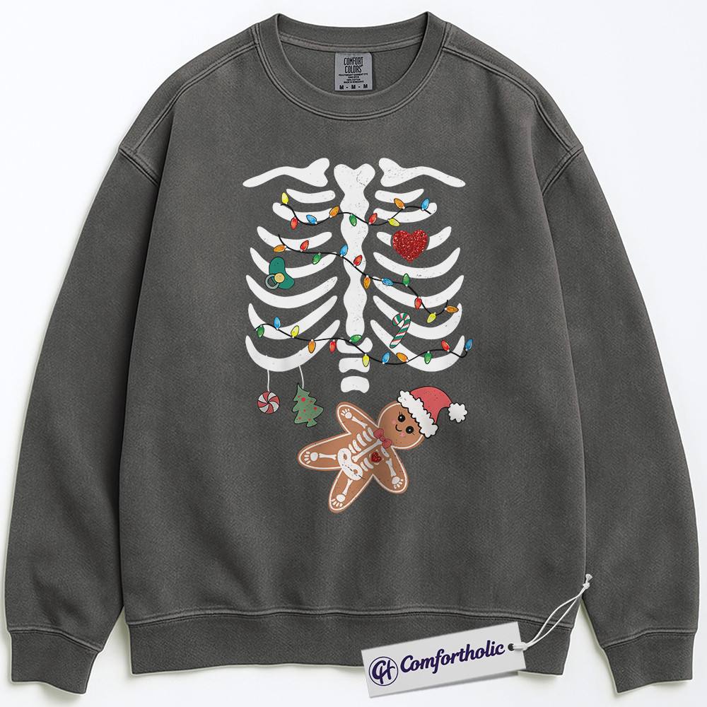 Pregnancy Christmas Sweatshirt, Maternity Skeleton Gingerbread Baby Pullover, Funny Holiday Pregnancy Announcement Graphic Sweatshirt, Cute Expecting Mom Gift, Christmas Comfort Colors Sweatshirt