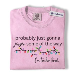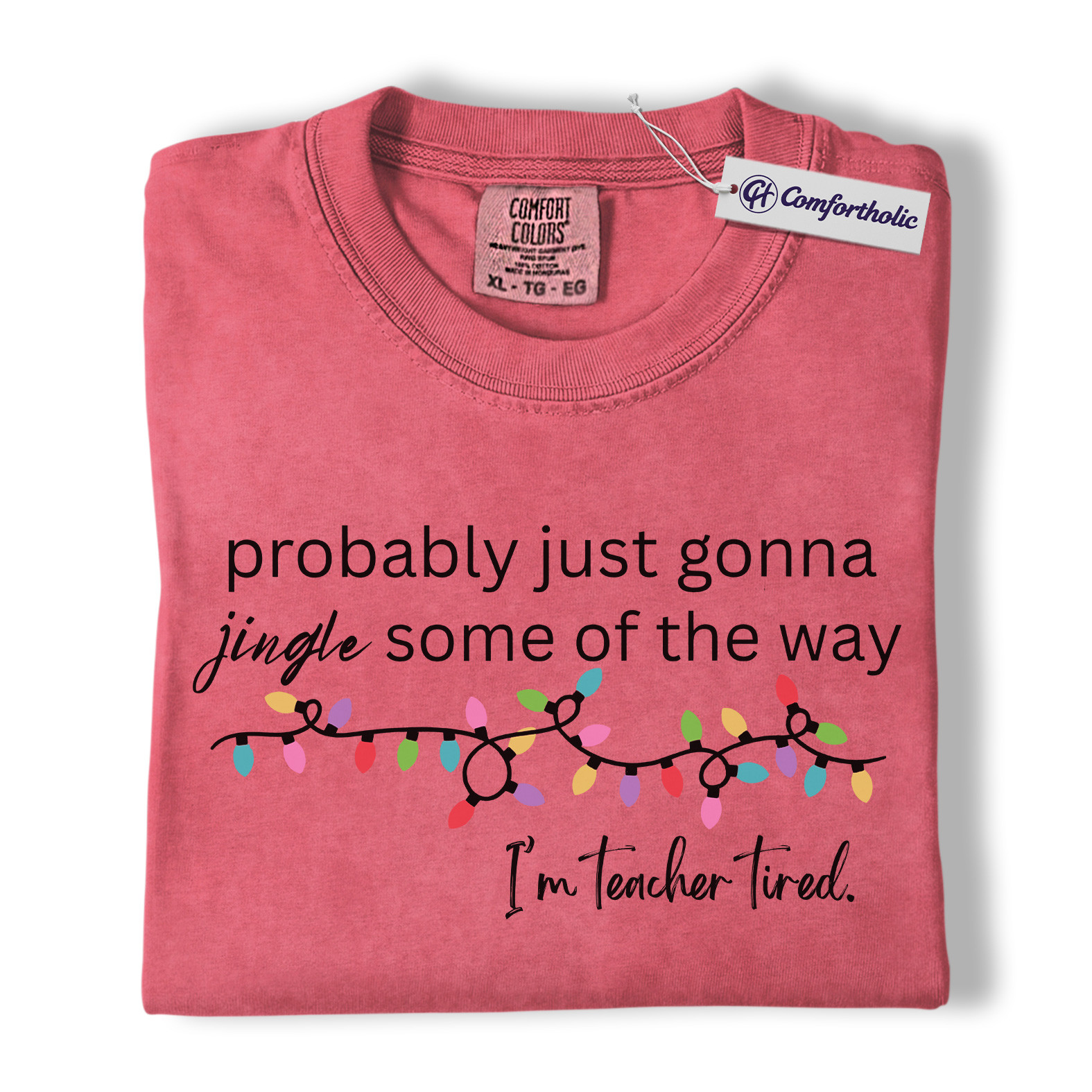 Probably Just Gonna Jingle Shirt, Funny Teacher Christmas T-Shirt, Cute Holiday Teacher Tired Graphic Tee, Christmas Gift for Educators, Christmas Comfort Colors Shirt
