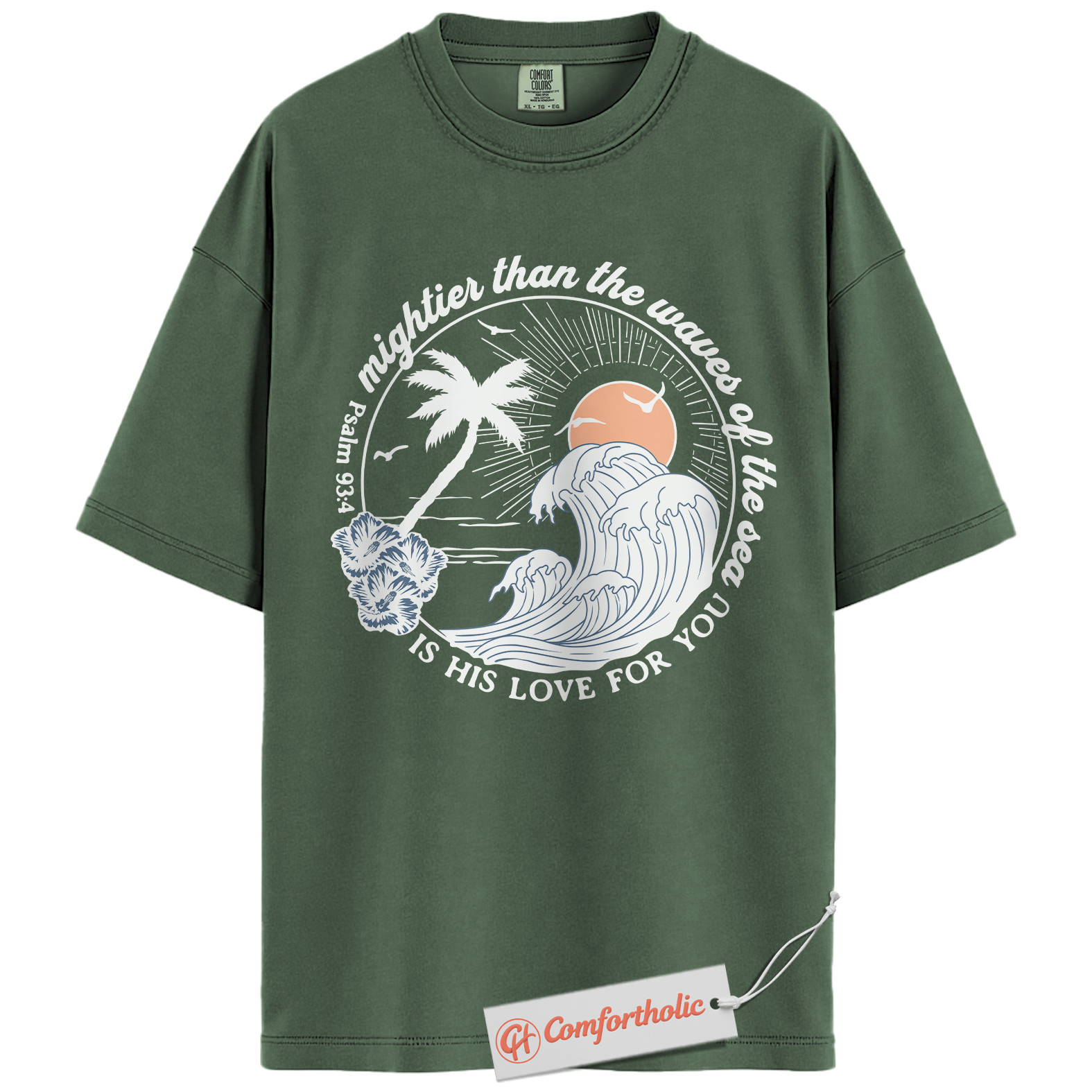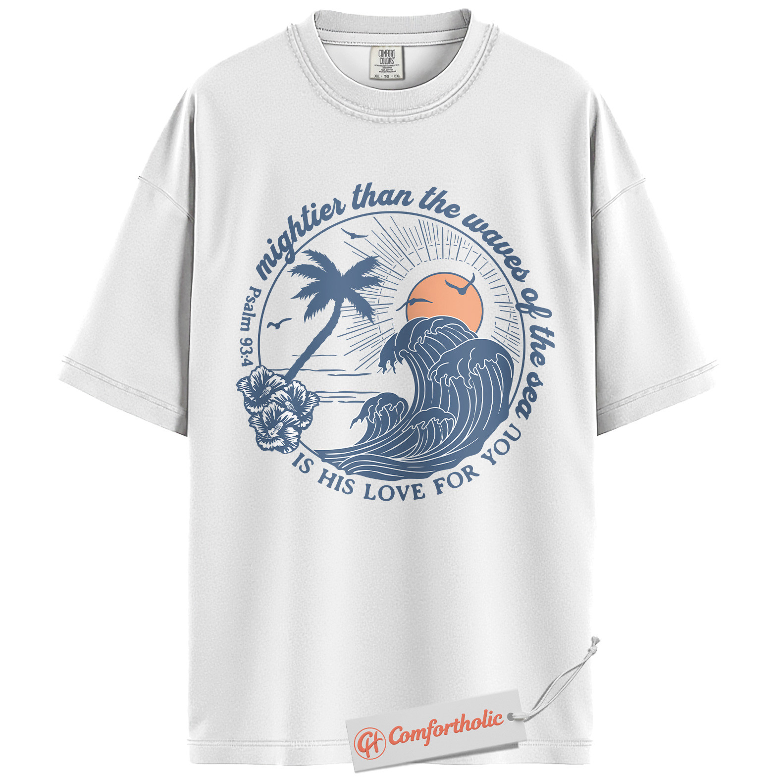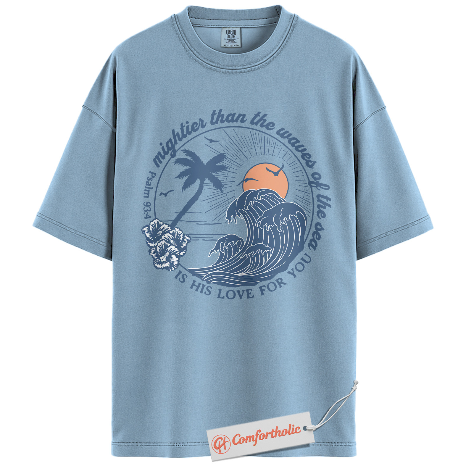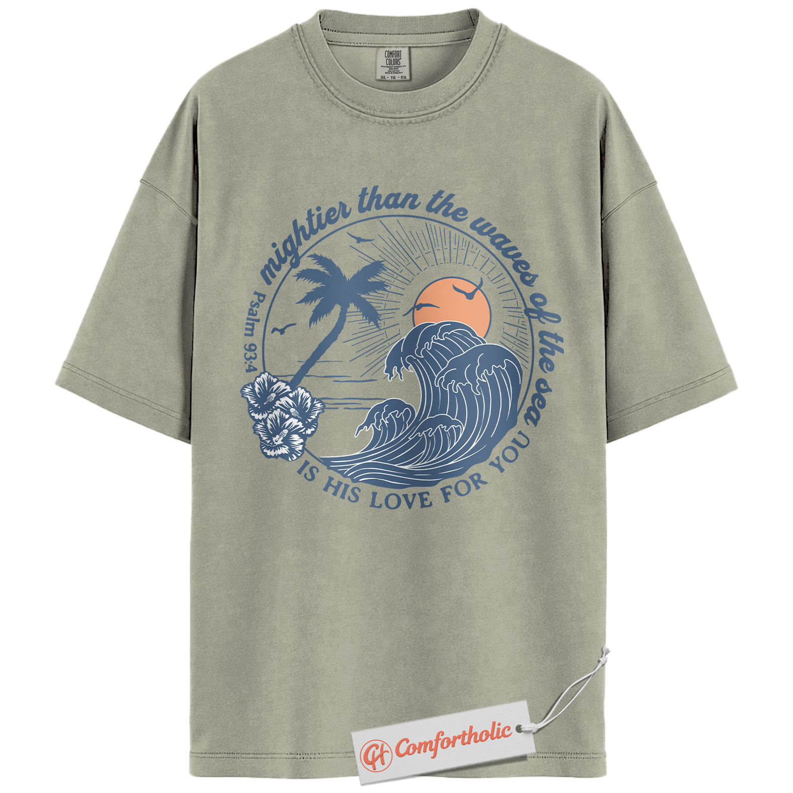 Psalm 93:4 Shirt, Christian Shirt, Bible Verse Beach T-Shirt, Mighty Wave Faith Graphic Tee, Religious Comfort Colors Shirt
