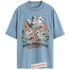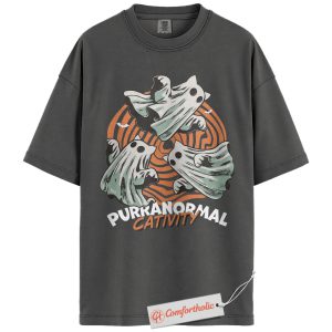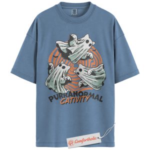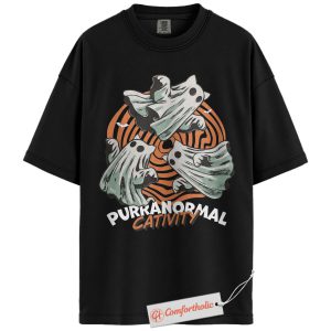 Purranormal Cativity Shirt, Funny Halloween Cat T-Shirt, Cute Ghost Kitty Graphic Tee, Spooky Animal Lover Pun Gift, Cute Cat Comfort Colors Shirt