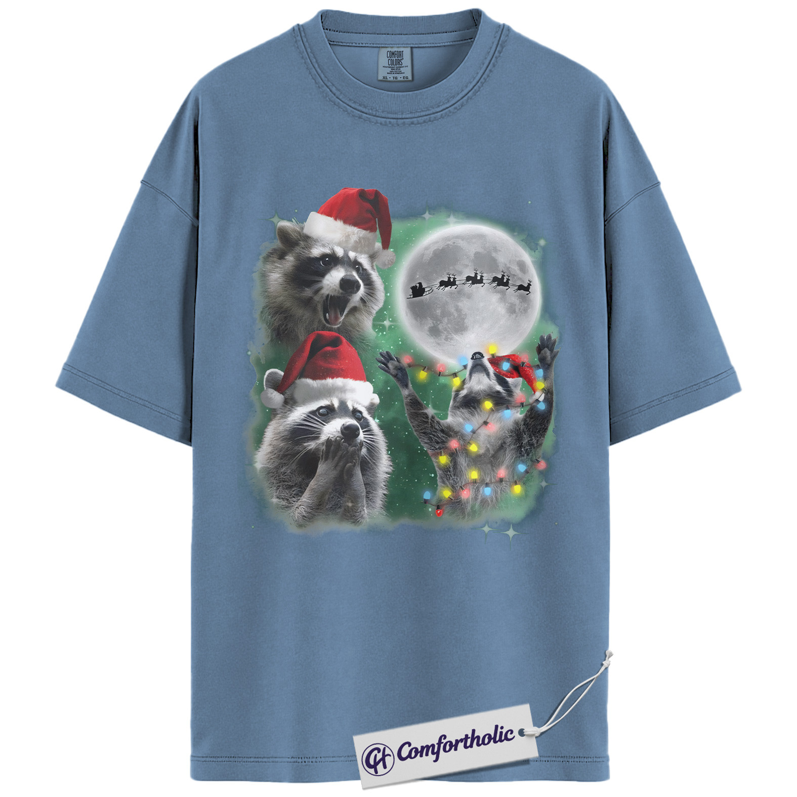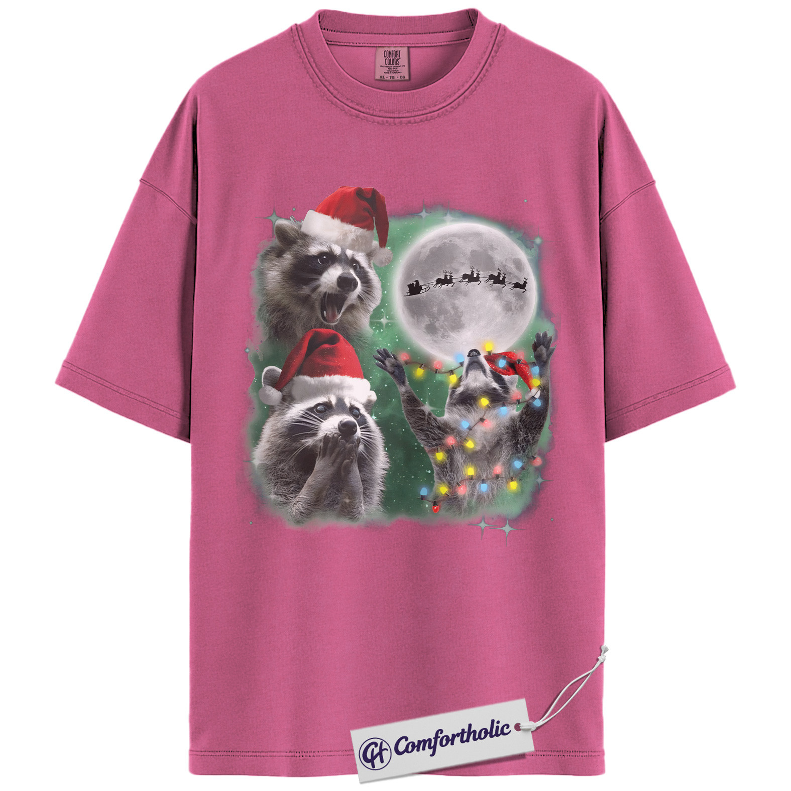 Raccoon Christmas Shirt, Funny Animal Holiday T-Shirt, Cute Raccoon in Santa Hat Graphic Tee, Christmas Gift for Animal Lovers, Christmas Comfort Colors Shirt