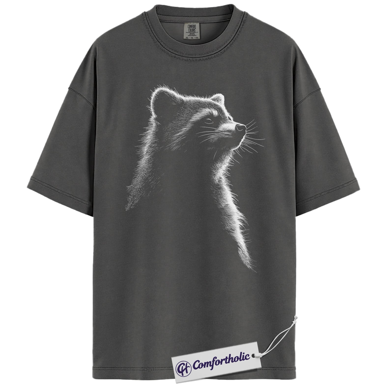 Raccoon Shirt, Realistic Animal Art T-Shirt, Wildlife Nature Lover Graphic Tee, Minimal Monochrome Forest Animal Gift, Comfort Colors Shirt