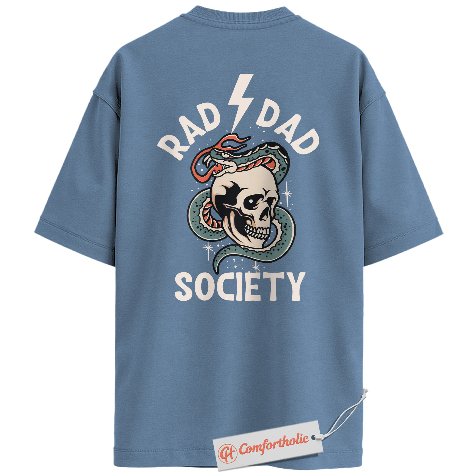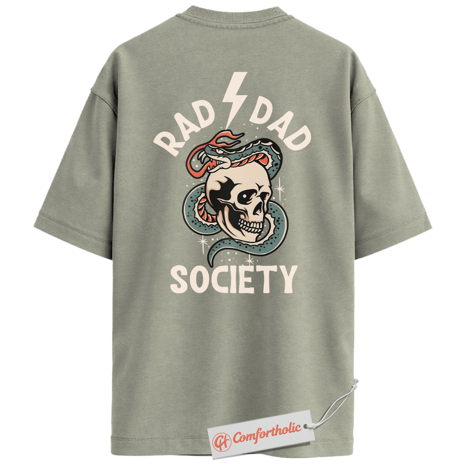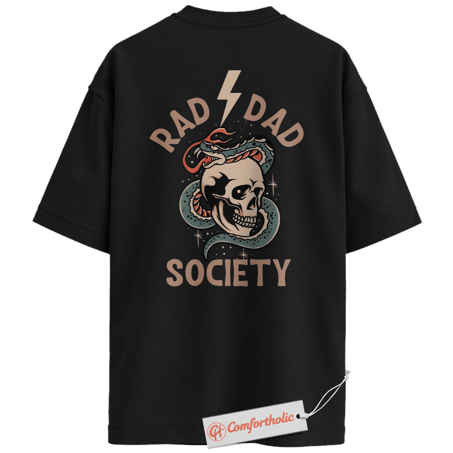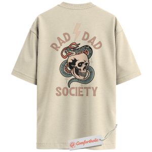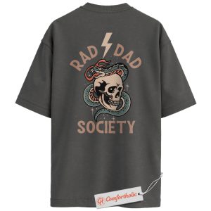 Rad Dad Society Back Print Shirt, Skull Snake Tattoo Dad Shirt, Cool Rock Dad Graphic Tee, Alternative Father’s Day Gift, Comfort Colors Shirt
