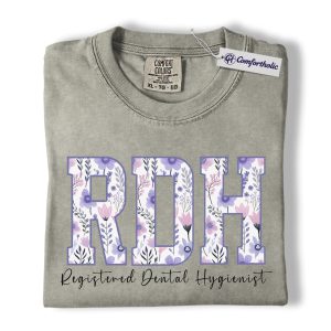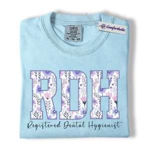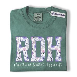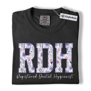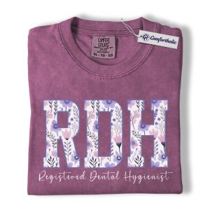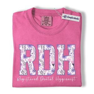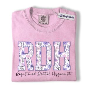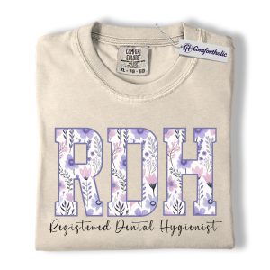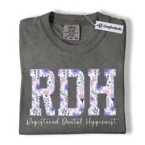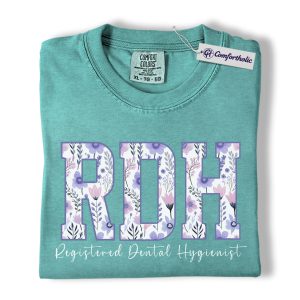 RDH Shirt, Registered Dental Hygienist Floral Lettering Graphic Tee, Dental Hygienist T-Shirt for Women, Dental Hygiene Graduation Gift, Comfort Colors Shirt