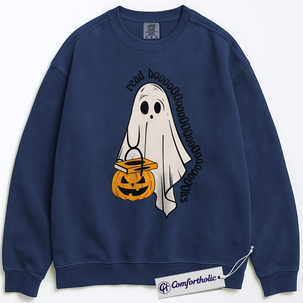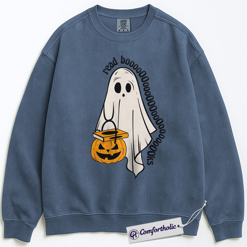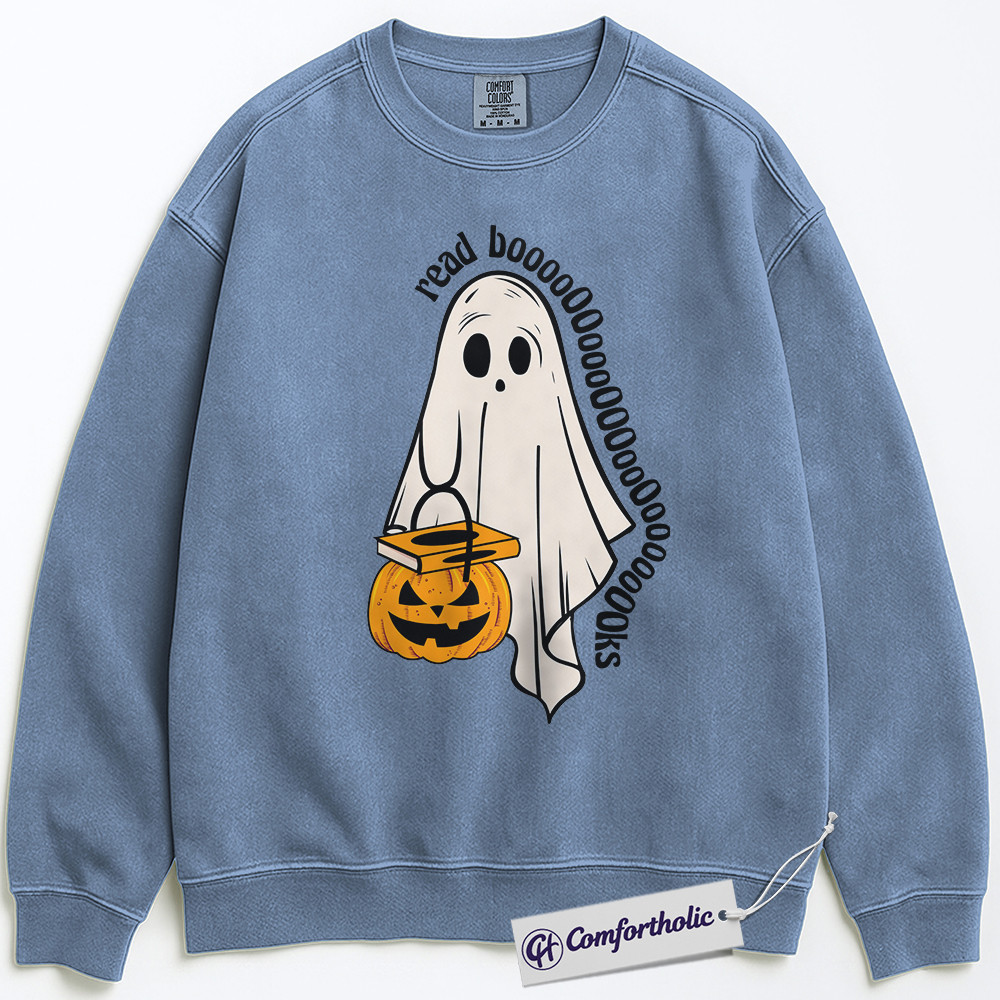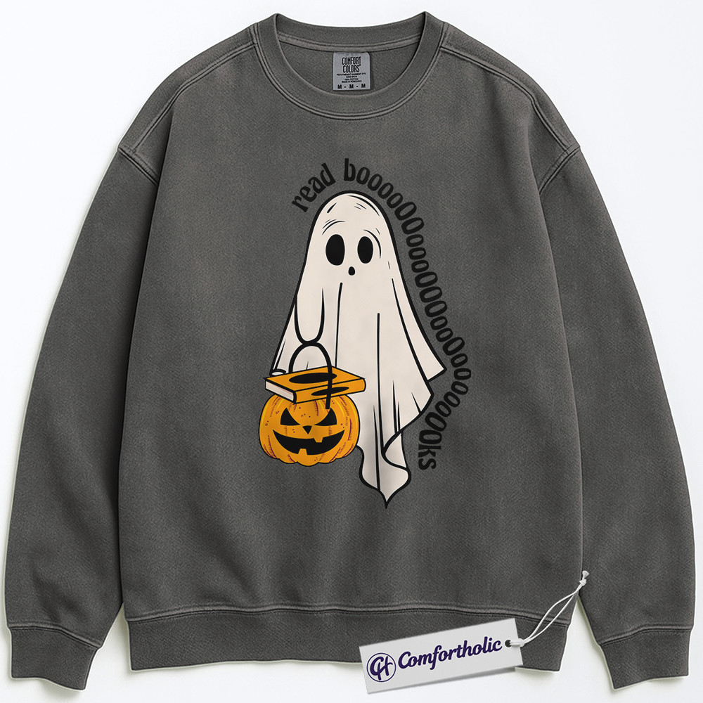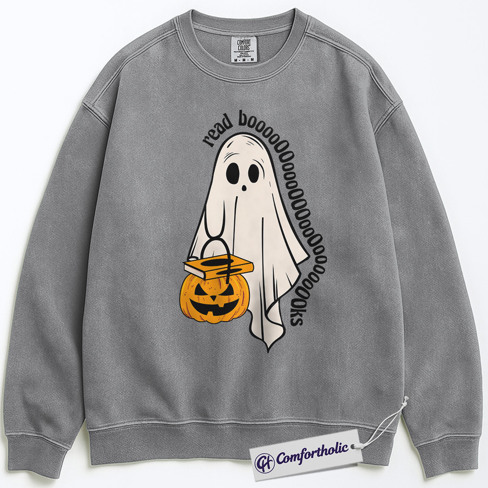 Read Books Sweatshirt, Funny Ghost Halloween Pullover, Spooky Bookworm Graphic Crewneck, Cute Literary Pun Gift, Book Lover Comfort Colors Sweatshirt
