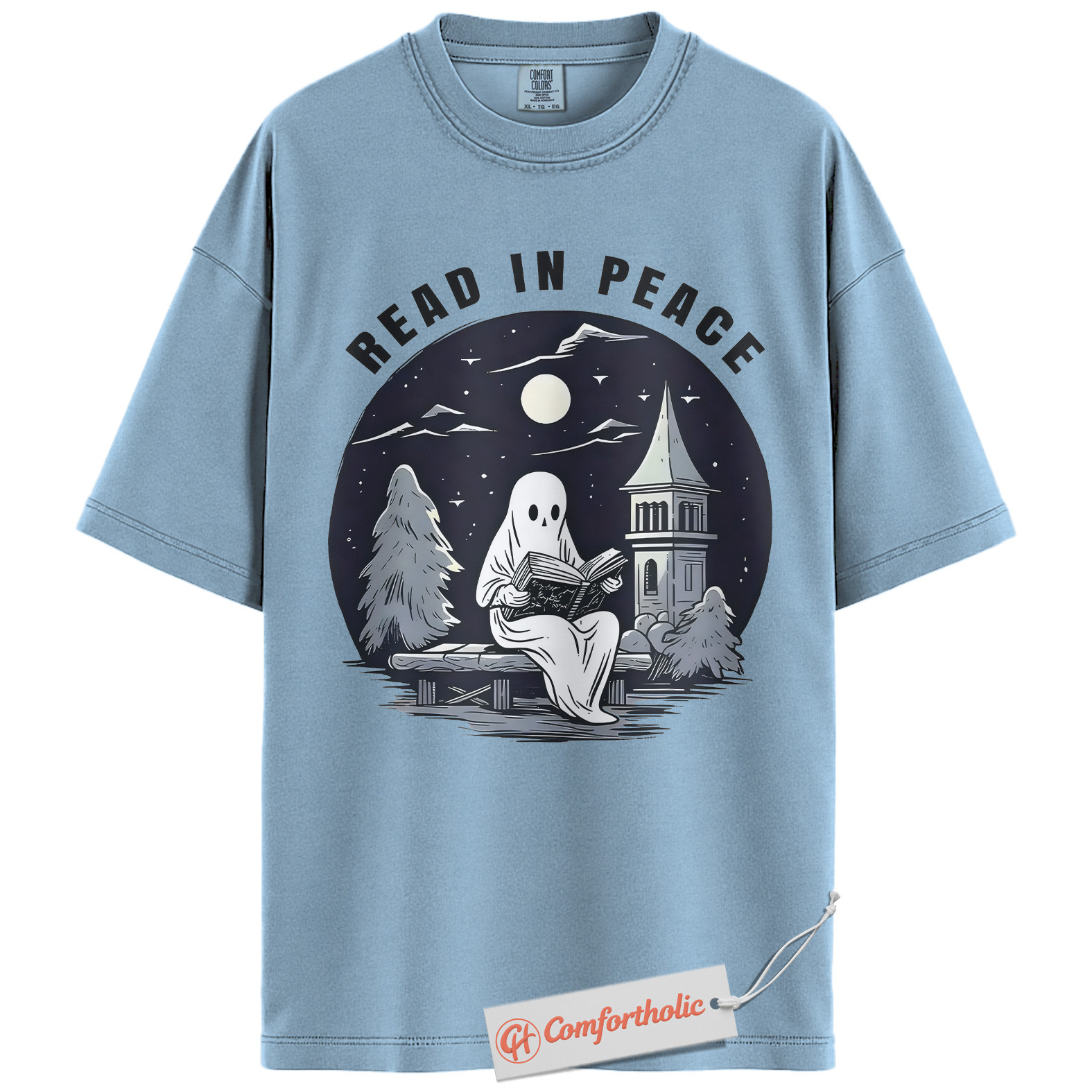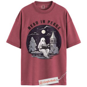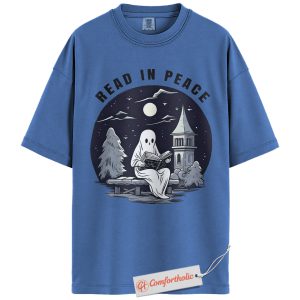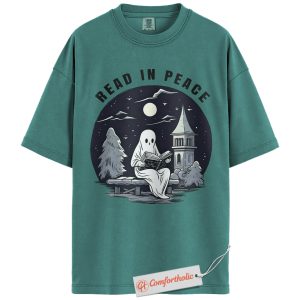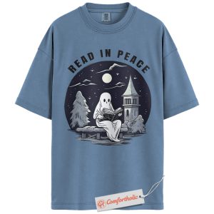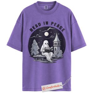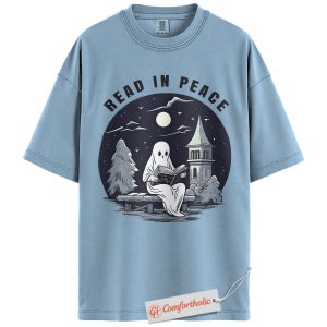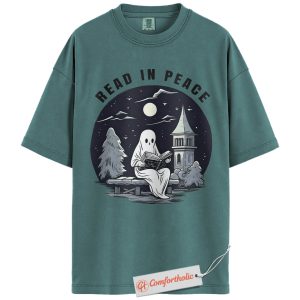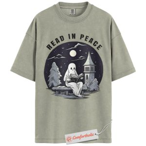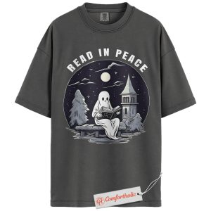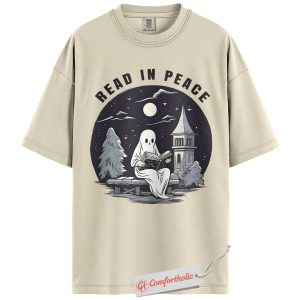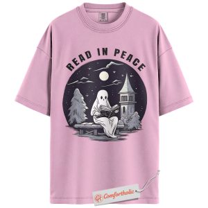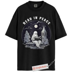 Read In Peace Shirt, Halloween Ghost Reading Graphic Tee, Spooky Season Book Lover T-Shirt, Halloween Comfort Colors Shirt