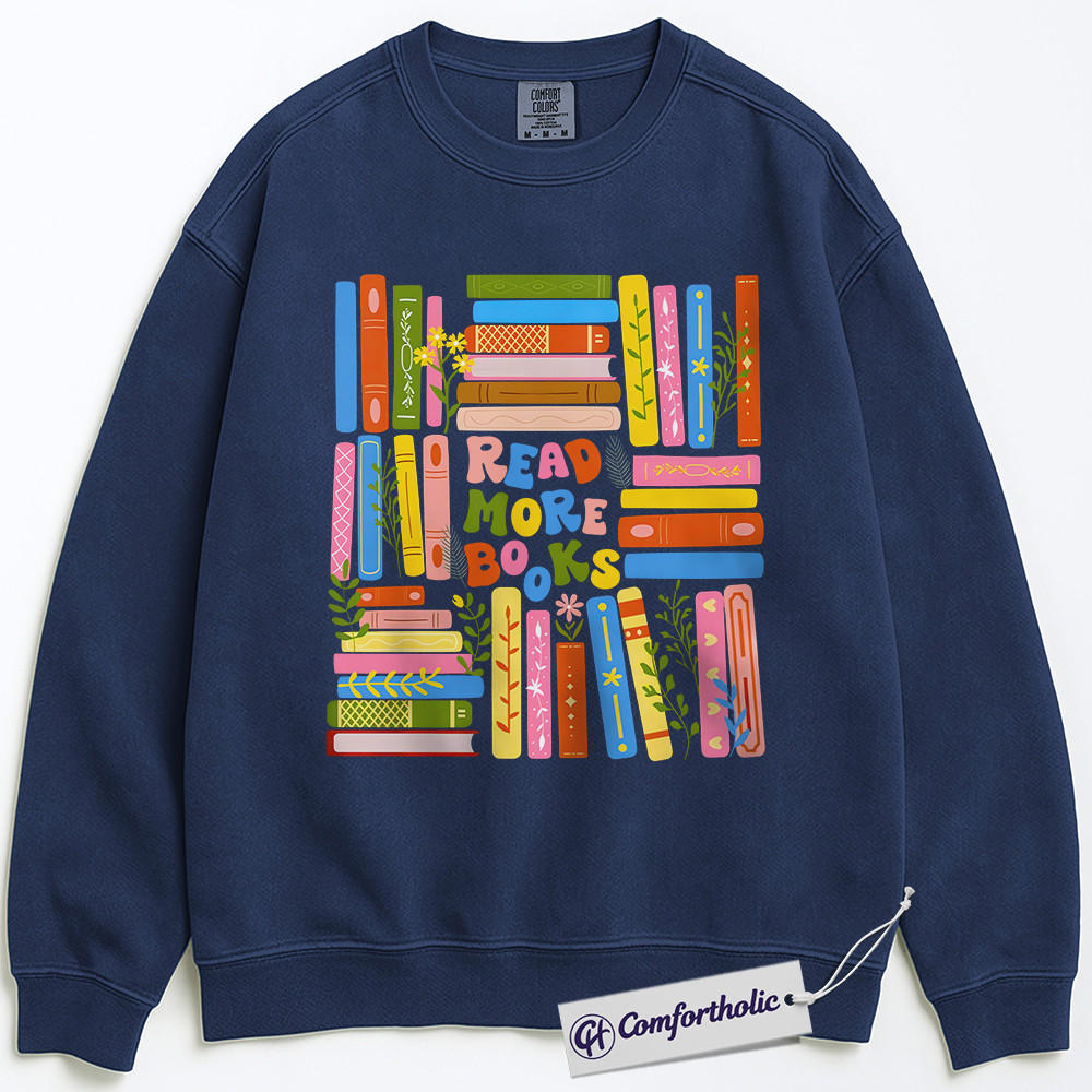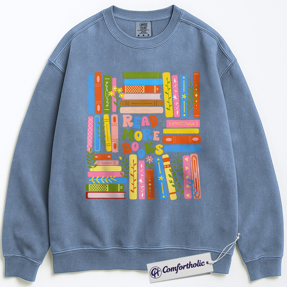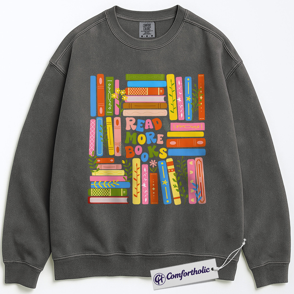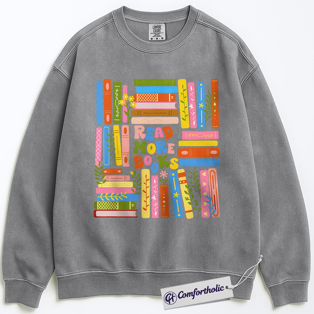 Read More Books Sweatshirt, Colorful Book Lover Pullover, Aesthetic Library Reading Graphic Crewneck, Cute Literary Gift for Readers, Comfort Colors Sweatshirt