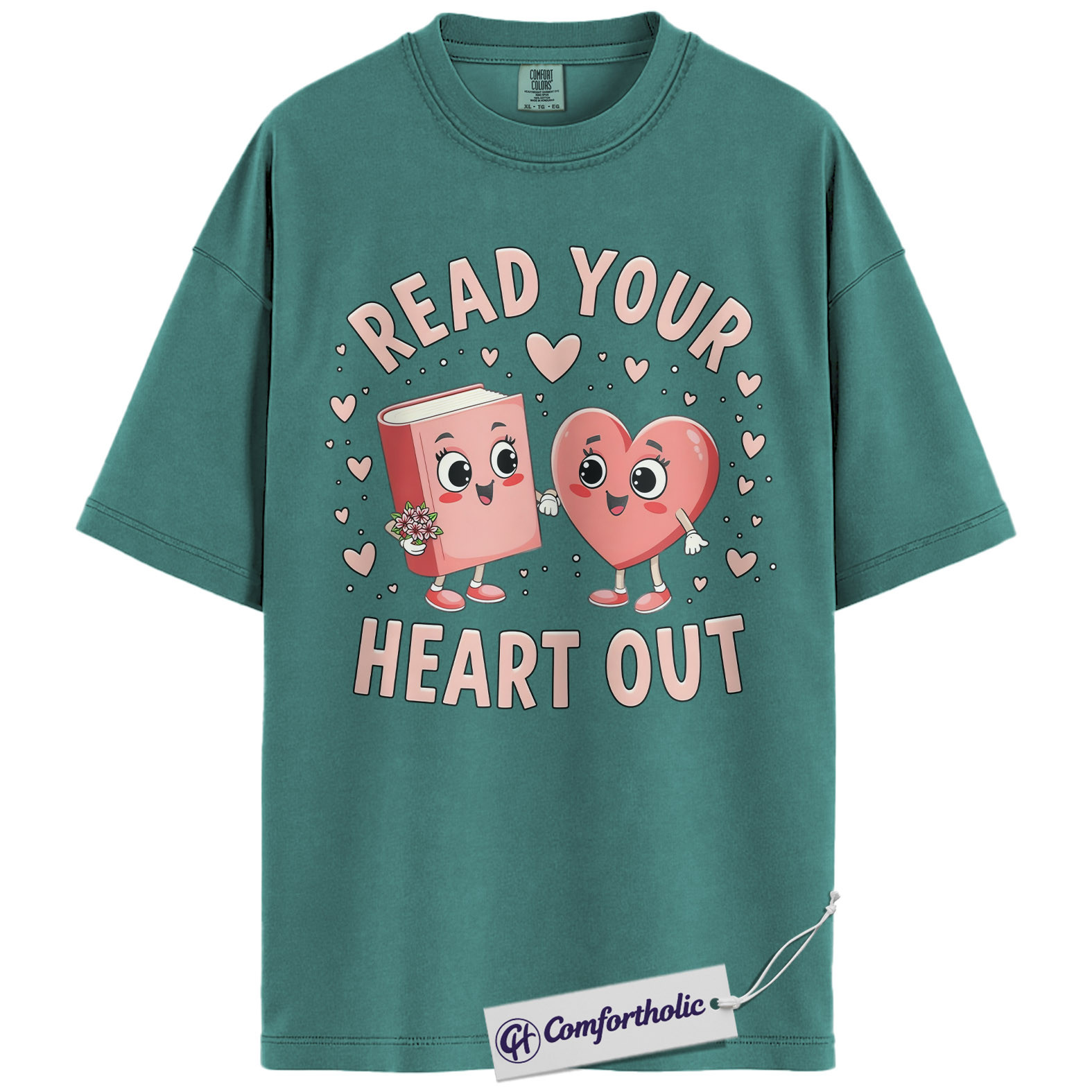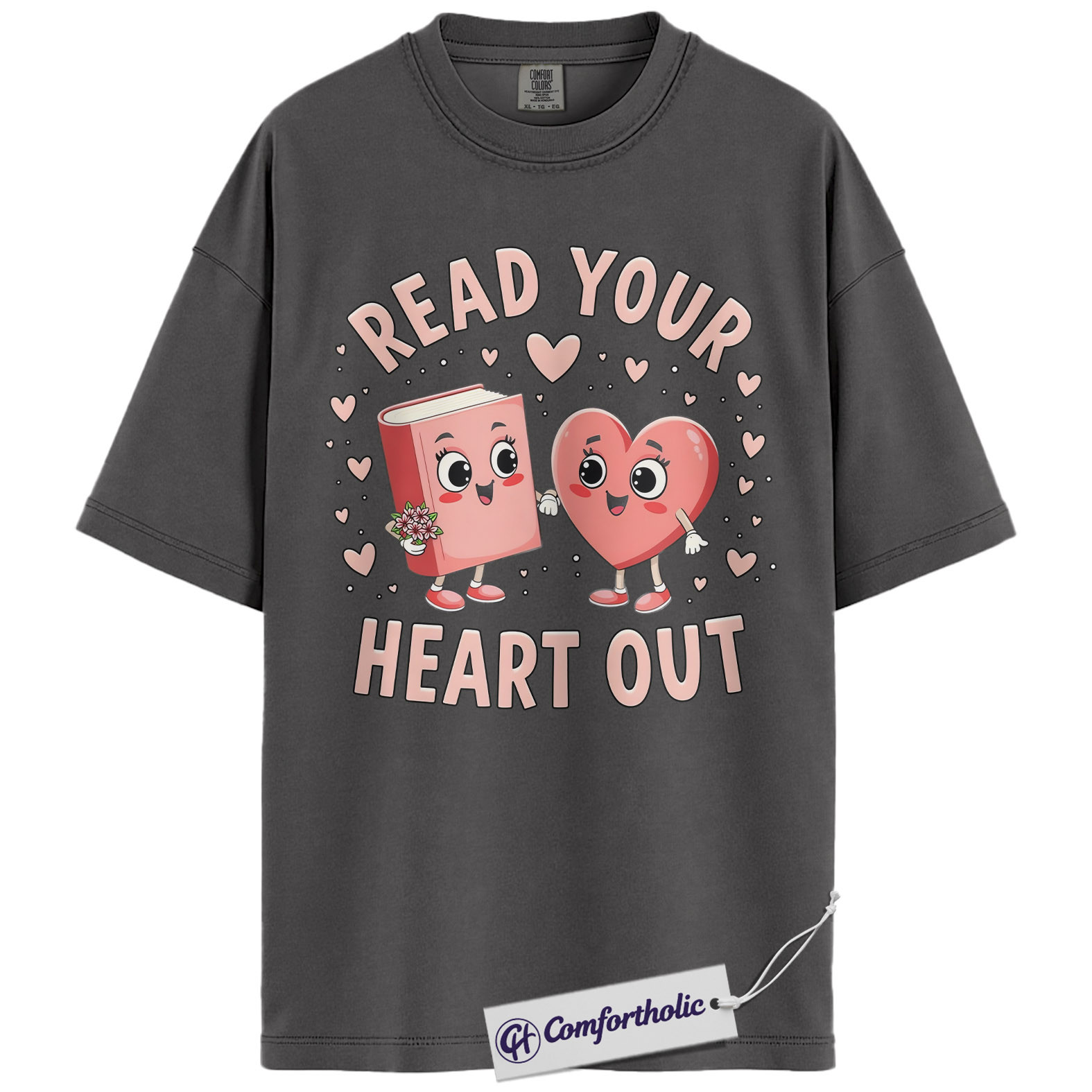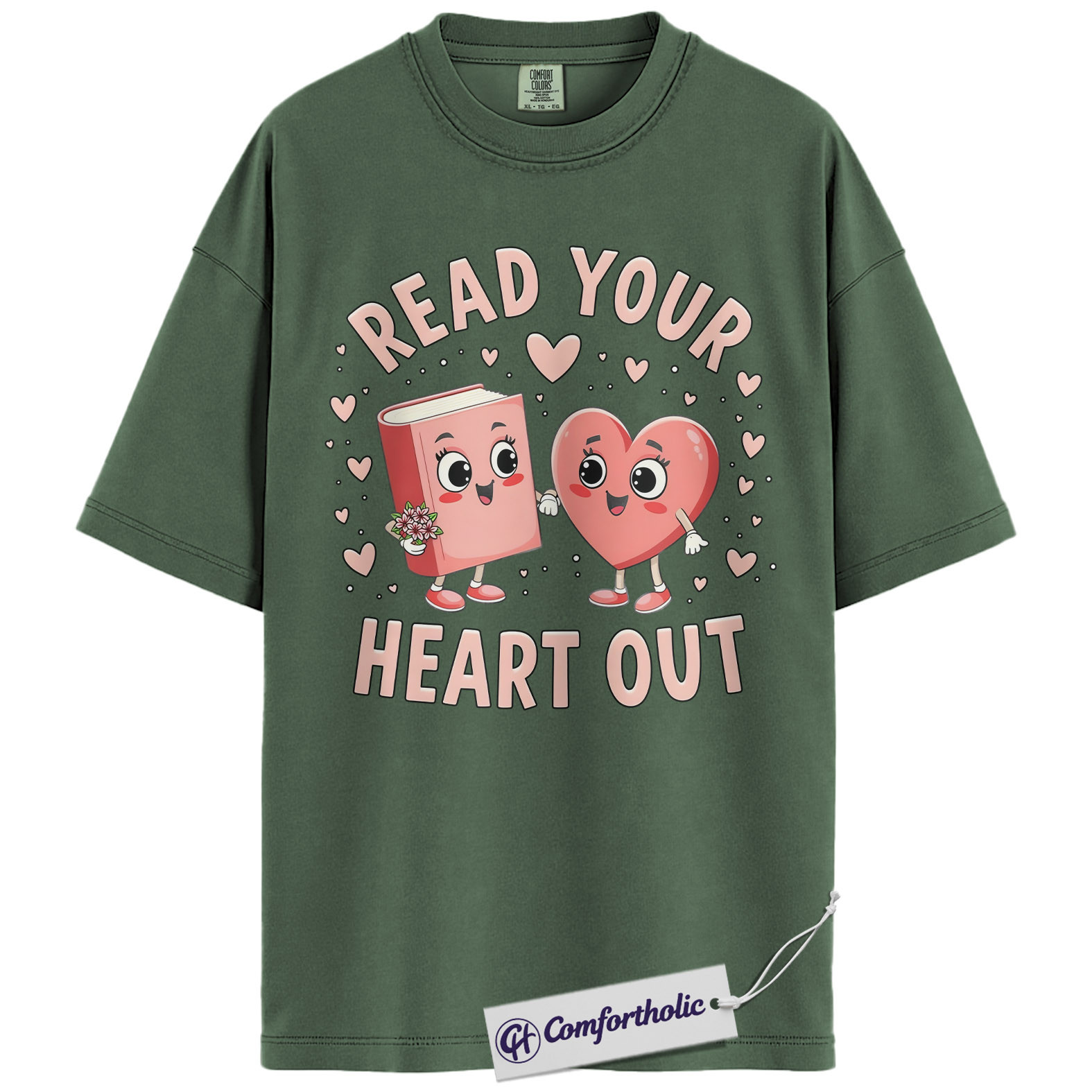 Read Your Heart Out Shirt, Cute Kawaii Book & Heart Graphic Tee, Book Lover Valentine T-Shirt, Gift for Readers & Librarians, Comfort Colors Shirt