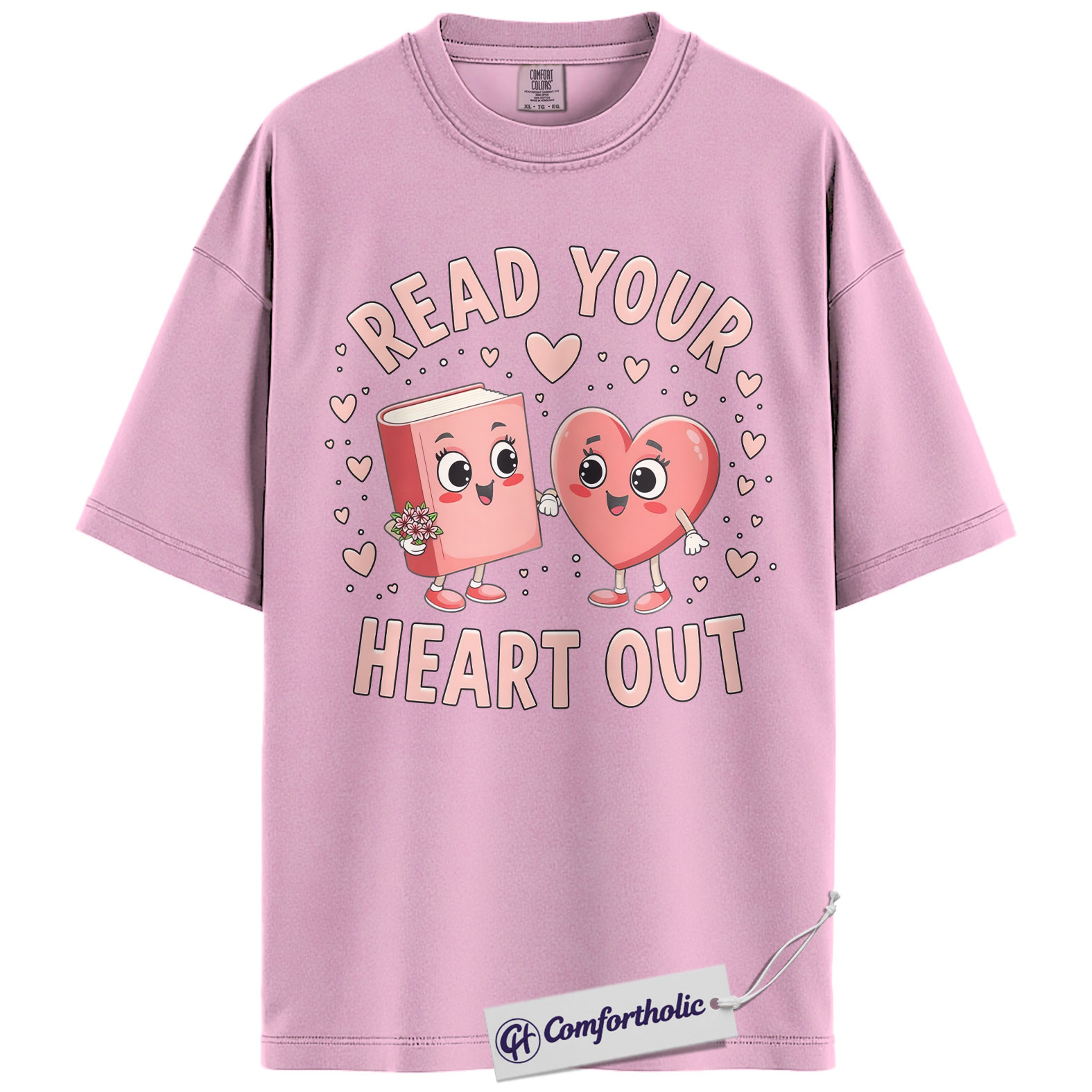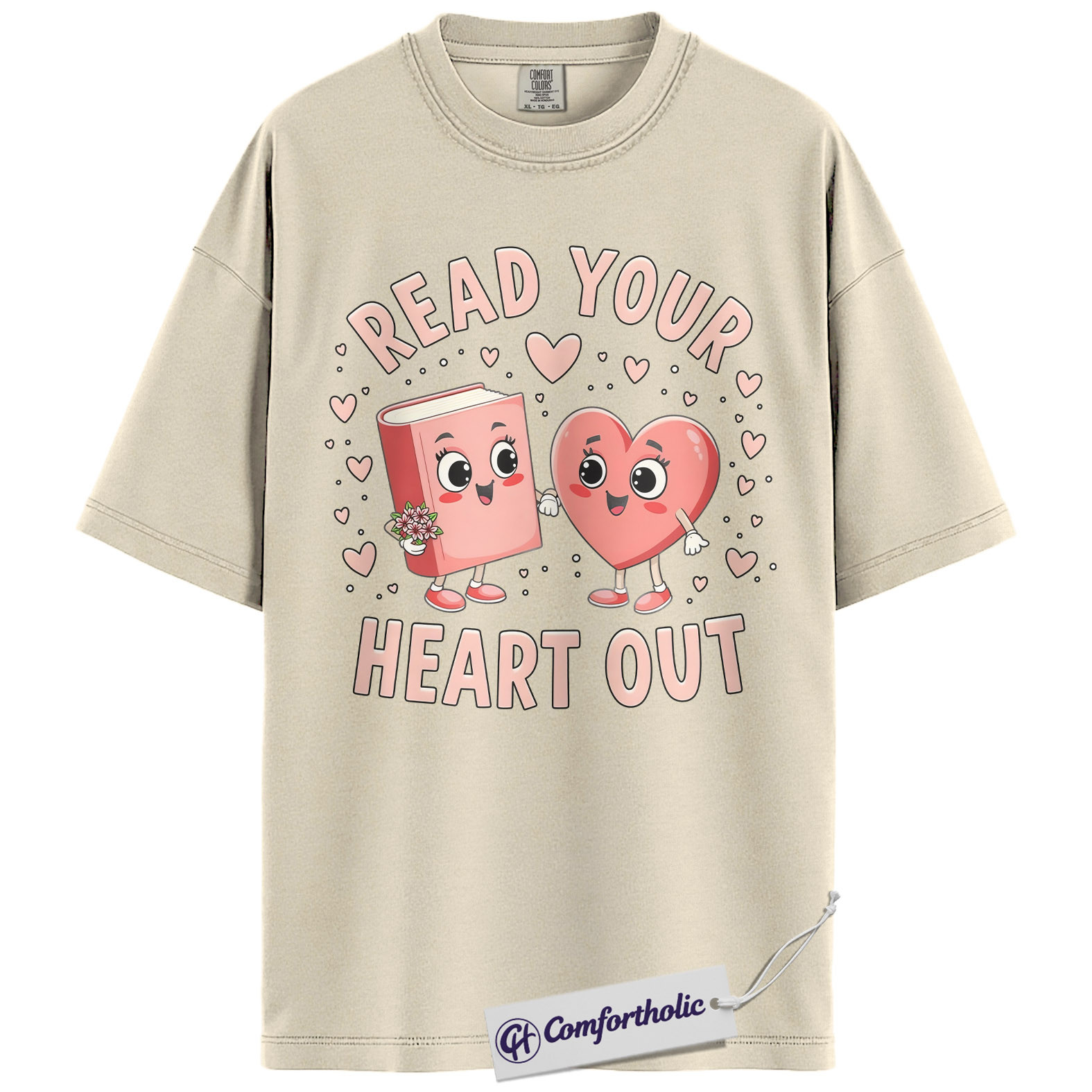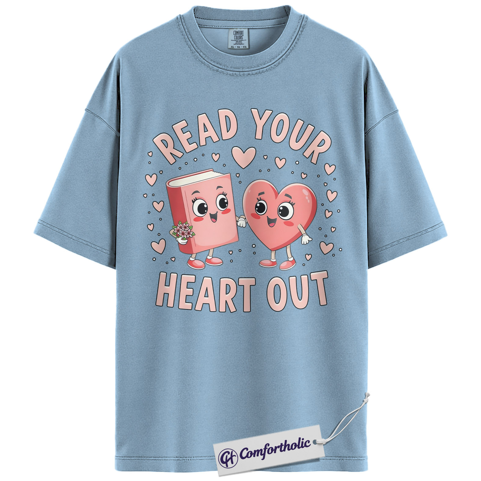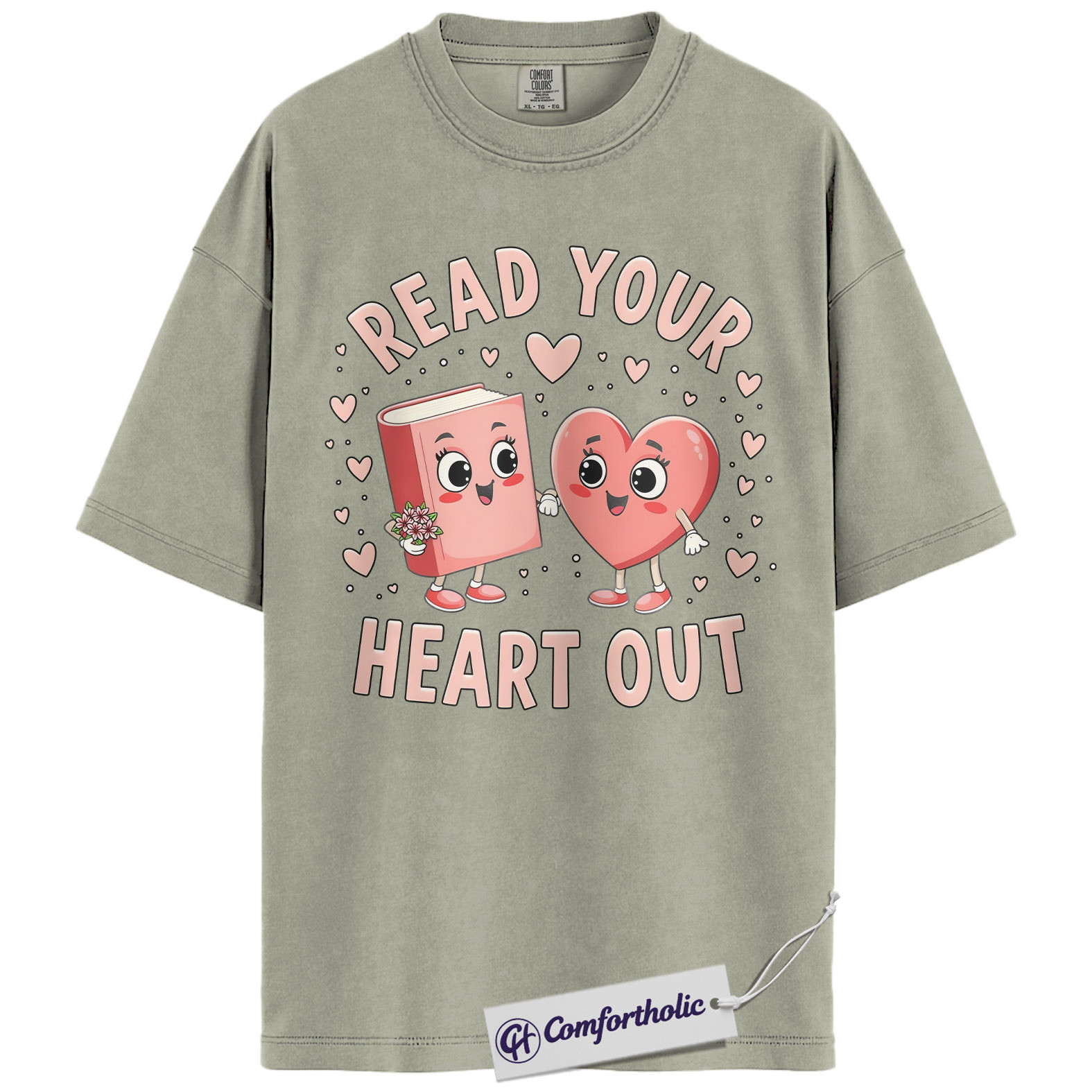 Read Your Heart Out Shirt, Cute Kawaii Book & Heart Graphic Tee, Book Lover Valentine T-Shirt, Gift for Readers & Librarians, Comfort Colors Shirt