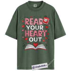 Read Your Heart Out Shirt, Cute Valentine Book Graphic Tee, Book Lover Reader T-Shirt, Valentine’s Day Gift for Bookworms, Comfort Colors Shirt