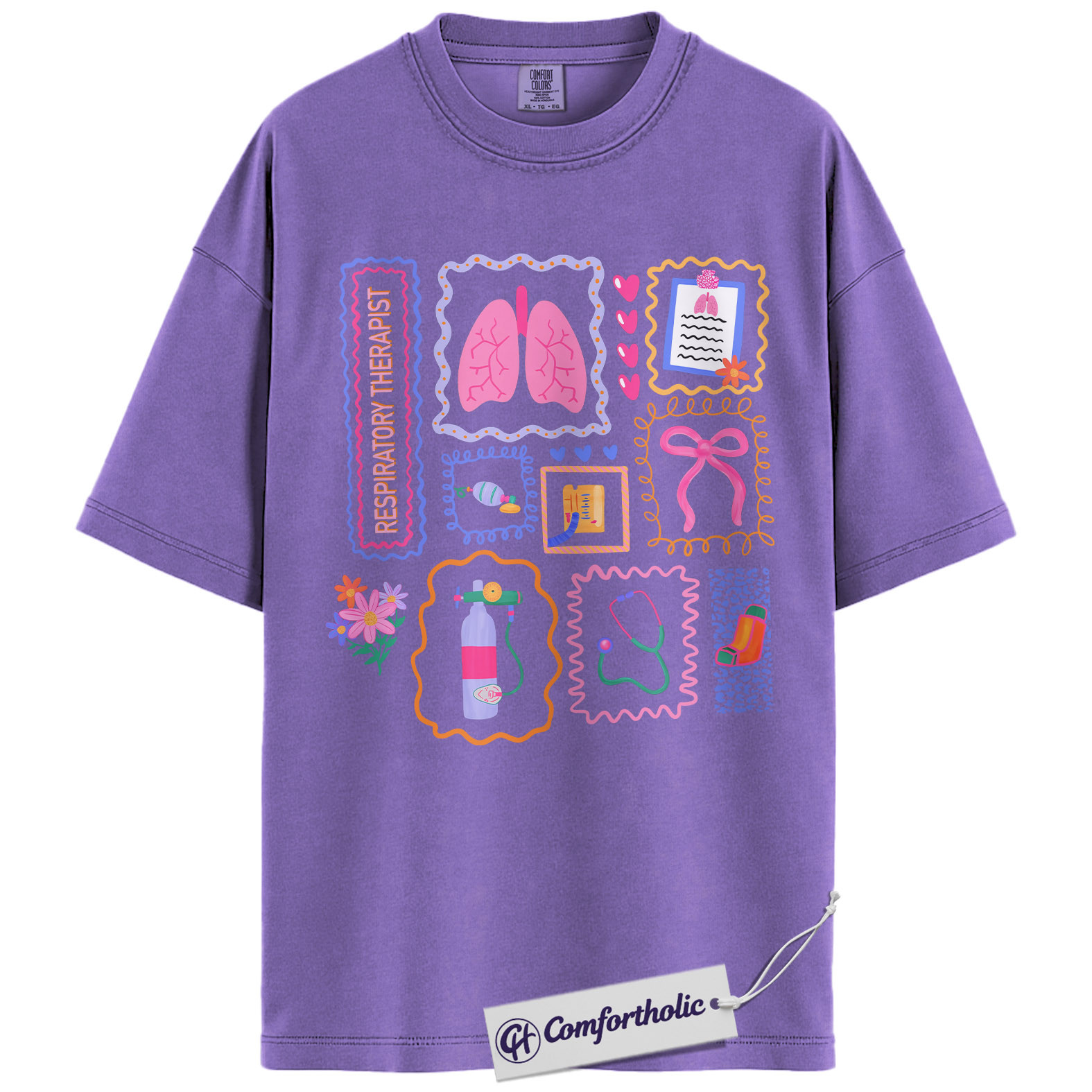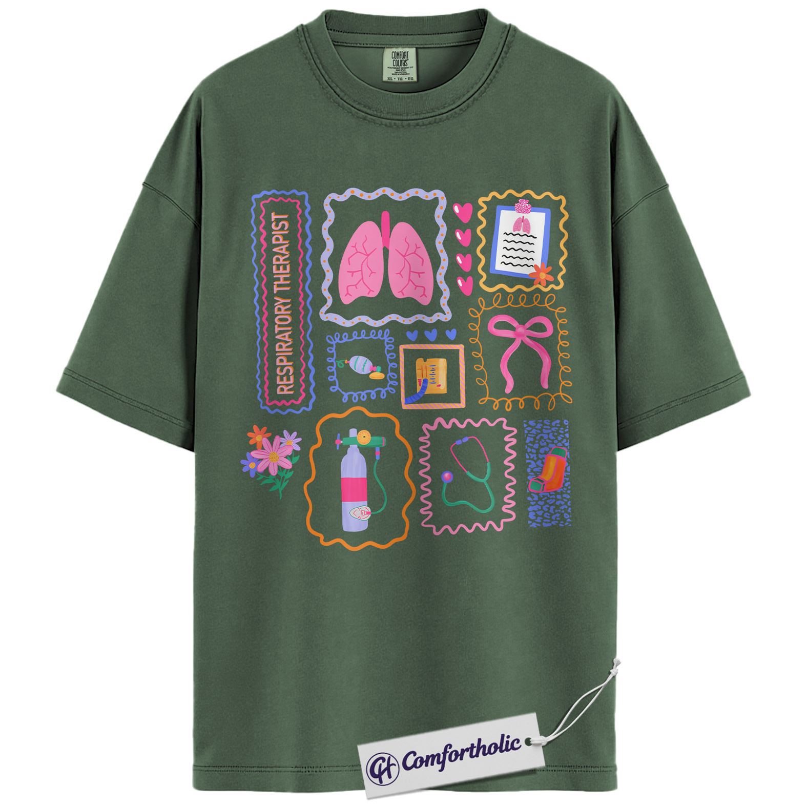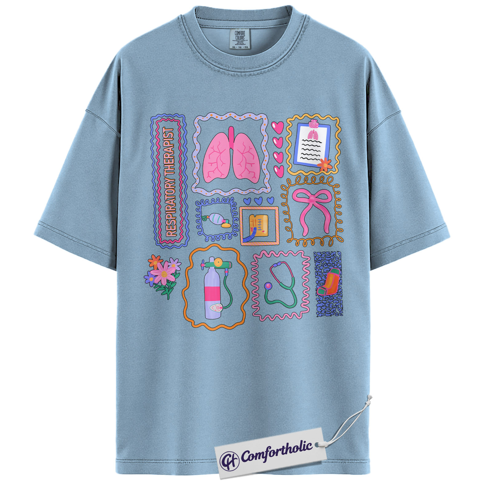 Respiratory Therapist Shirt, Cute Lungs Oxygen Tank Graphic Tee, RT RRT Respiratory Care T-Shirt, Respiratory Week Gift for ICU Hospital Staff, Comfort Colors Shirt