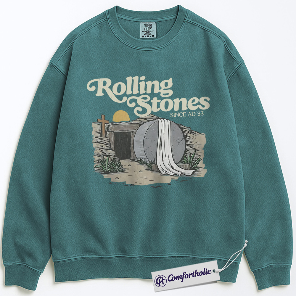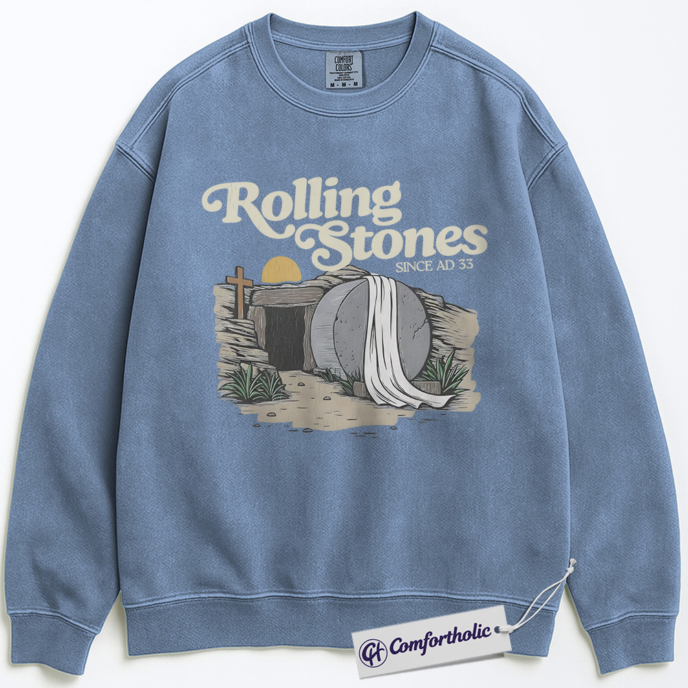 Rolling Stones AD 33 Sweatshirt, Funny Christian Easter Graphic Pullover, Resurrection Bible Verse Crewneck Sweatshirt, Faith-Based Gift, Comfort Colors Sweatshirt