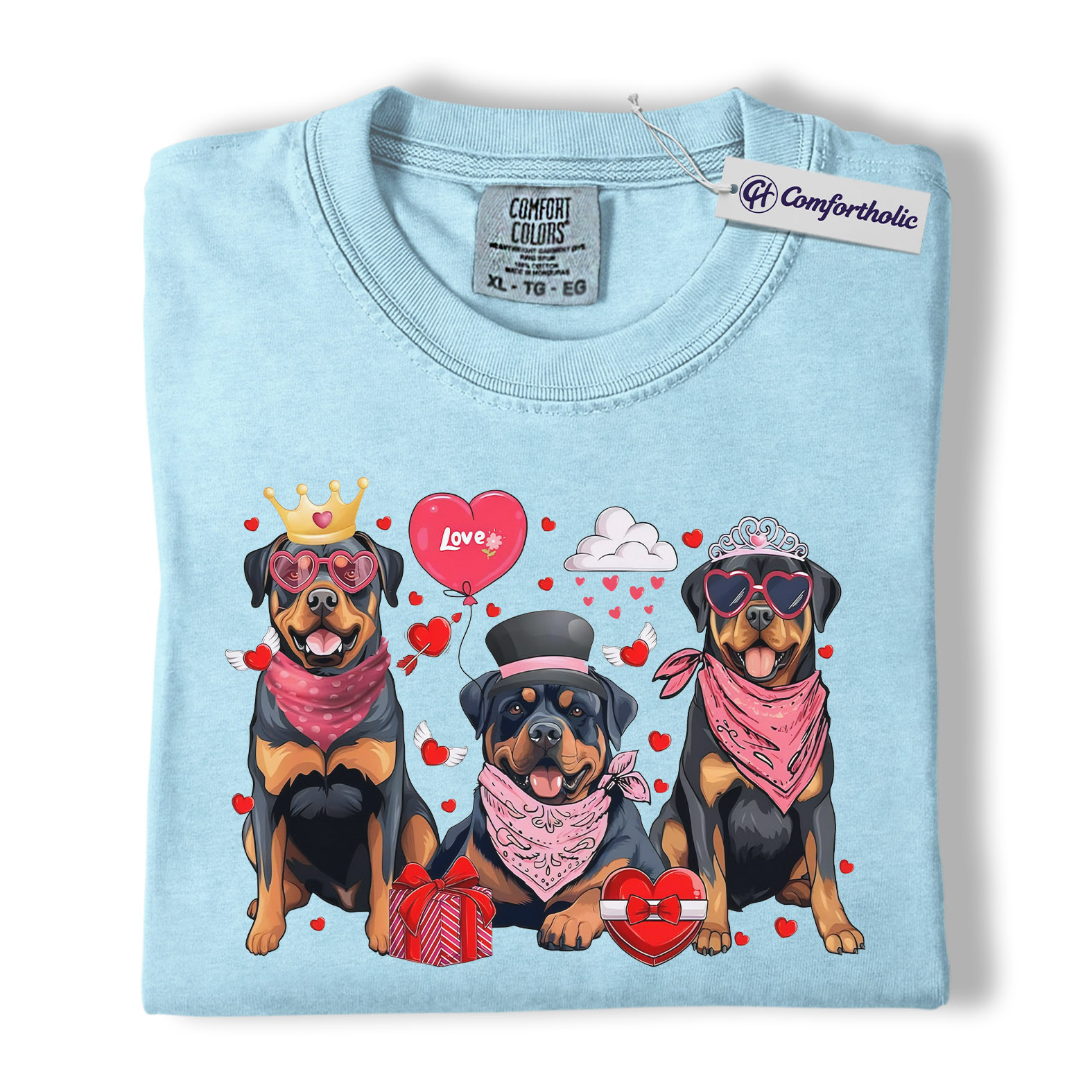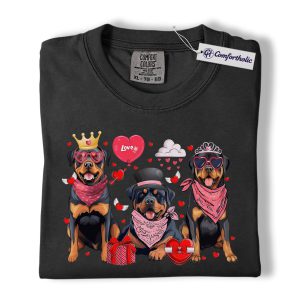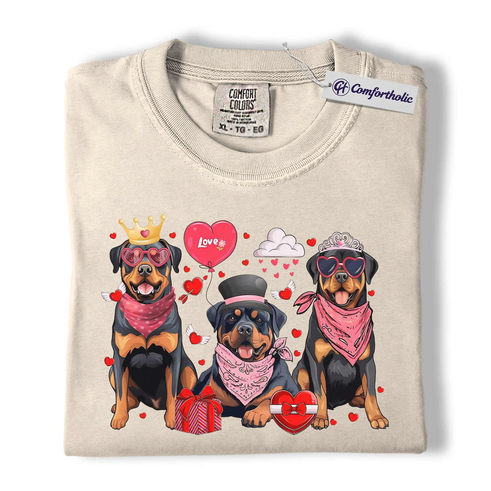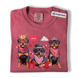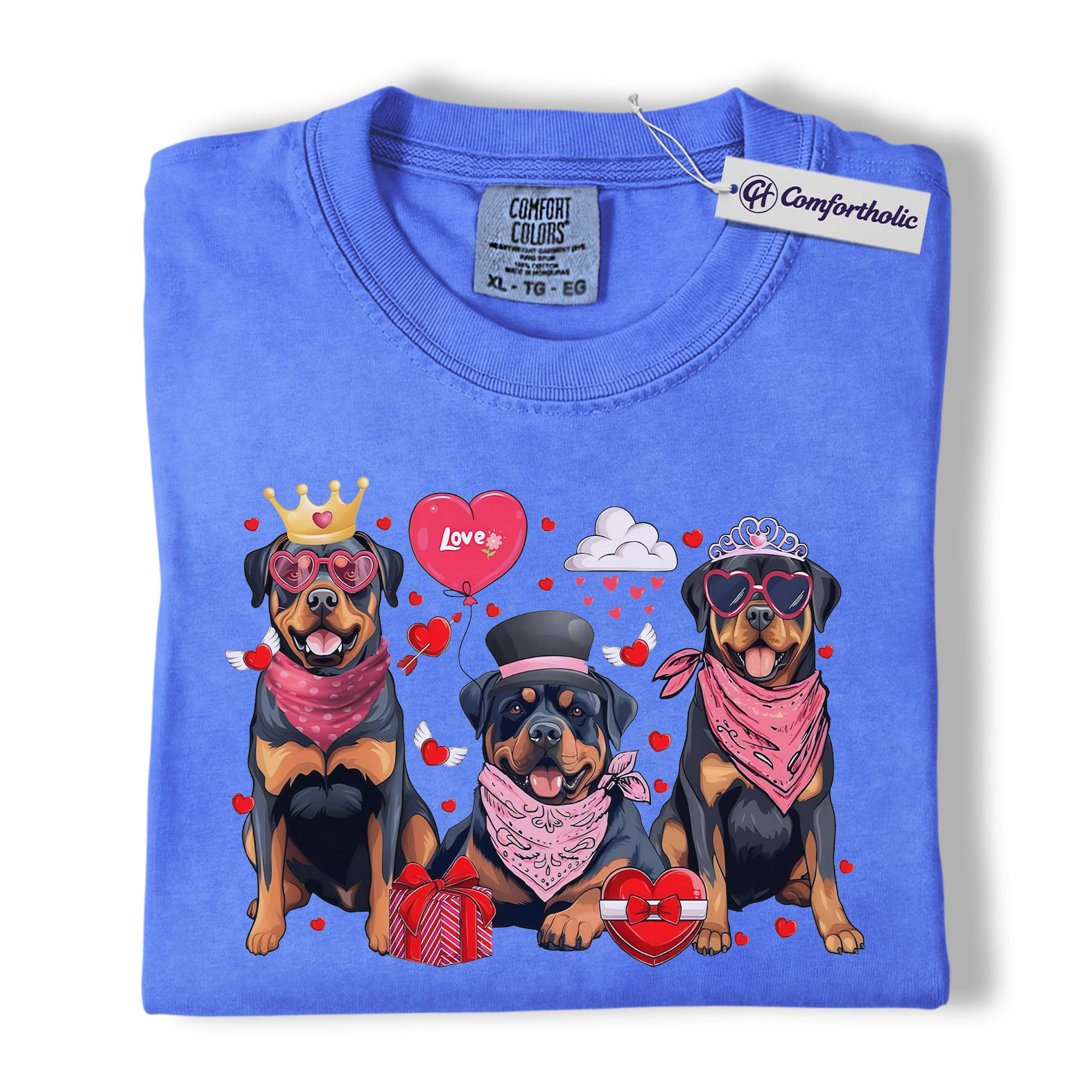 Rottweiler Valentine Shirt, Cute Heart Dogs Graphic Tee, Rottweiler Mom T-Shirt, Valentine’s Day Gift for Dog Lovers, Comfort Colors Shirt