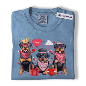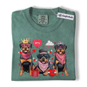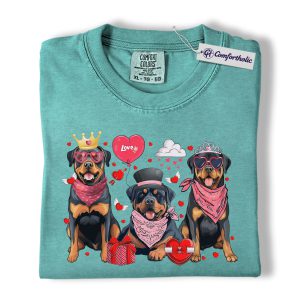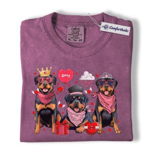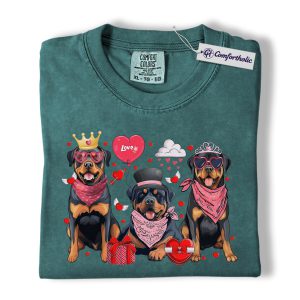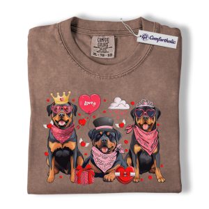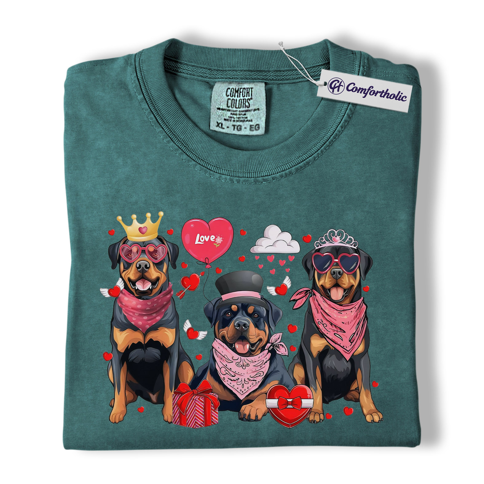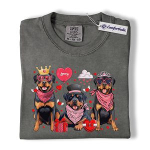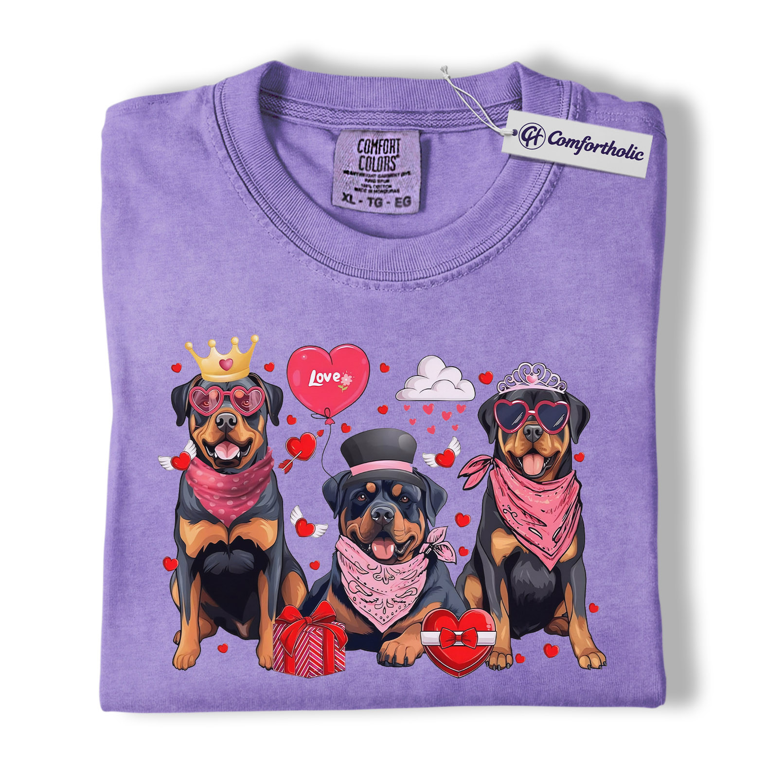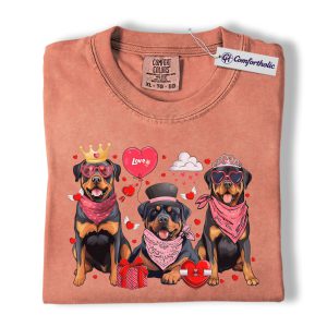 Rottweiler Valentine Shirt, Cute Heart Dogs Graphic Tee, Rottweiler Mom T-Shirt, Valentine’s Day Gift for Dog Lovers, Comfort Colors Shirt