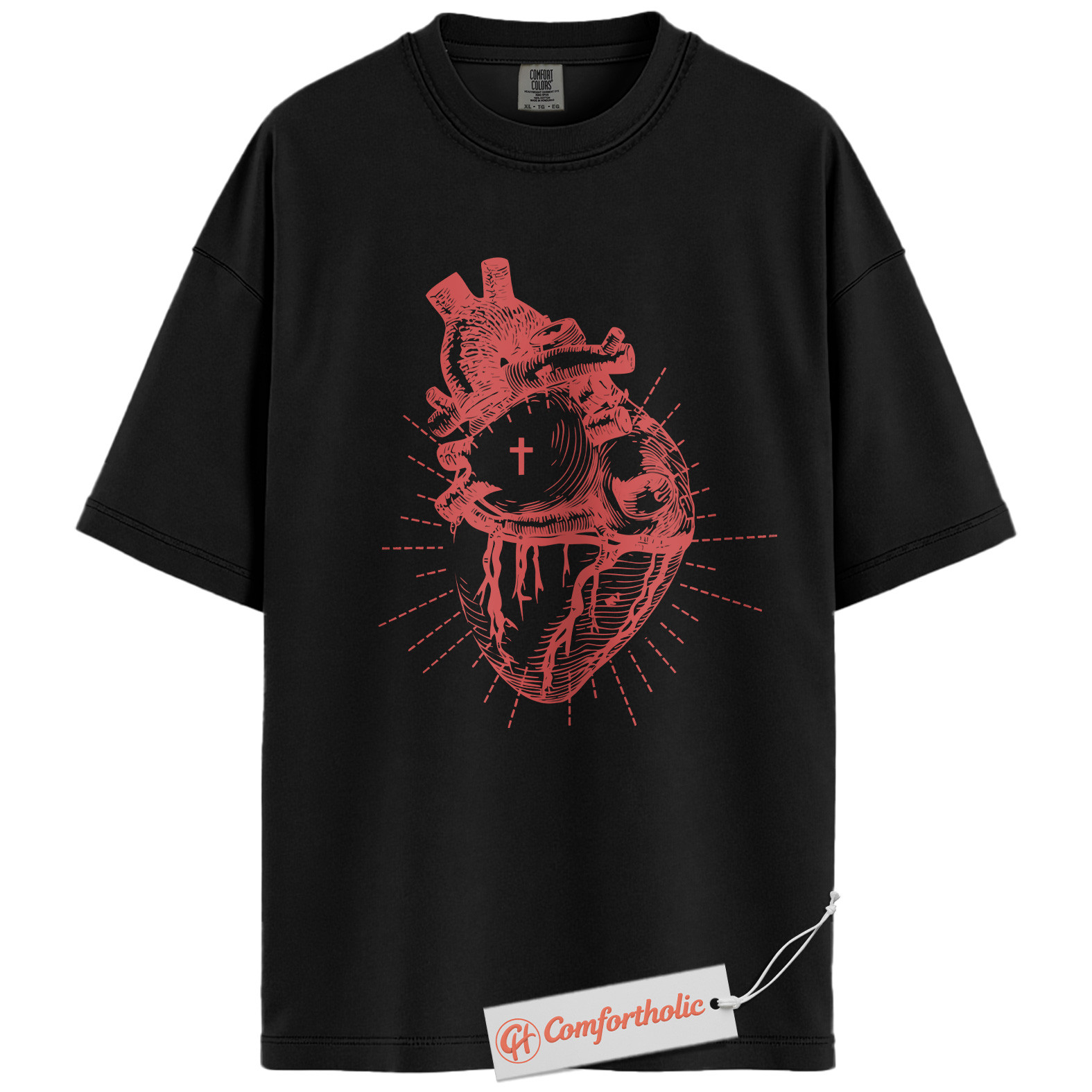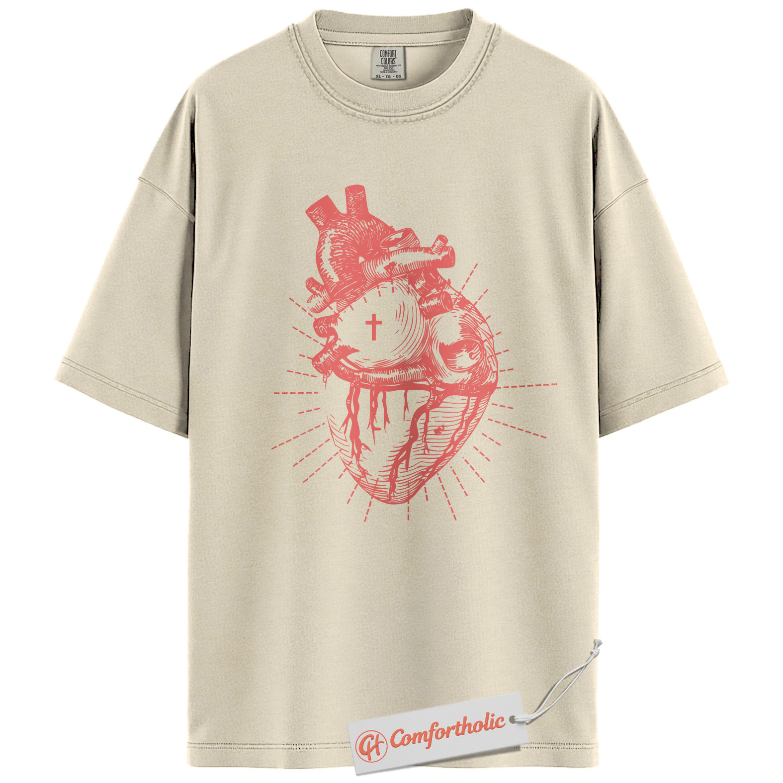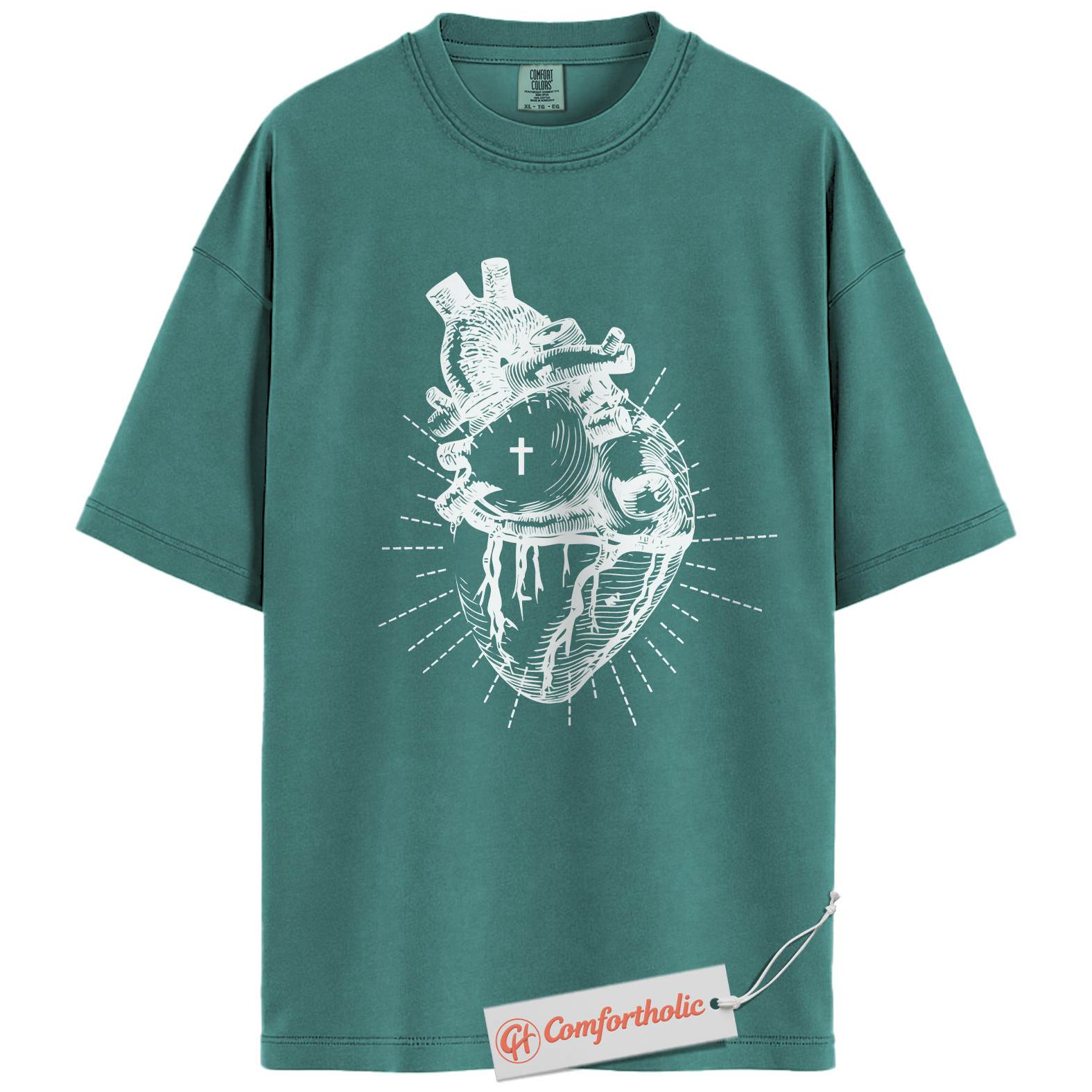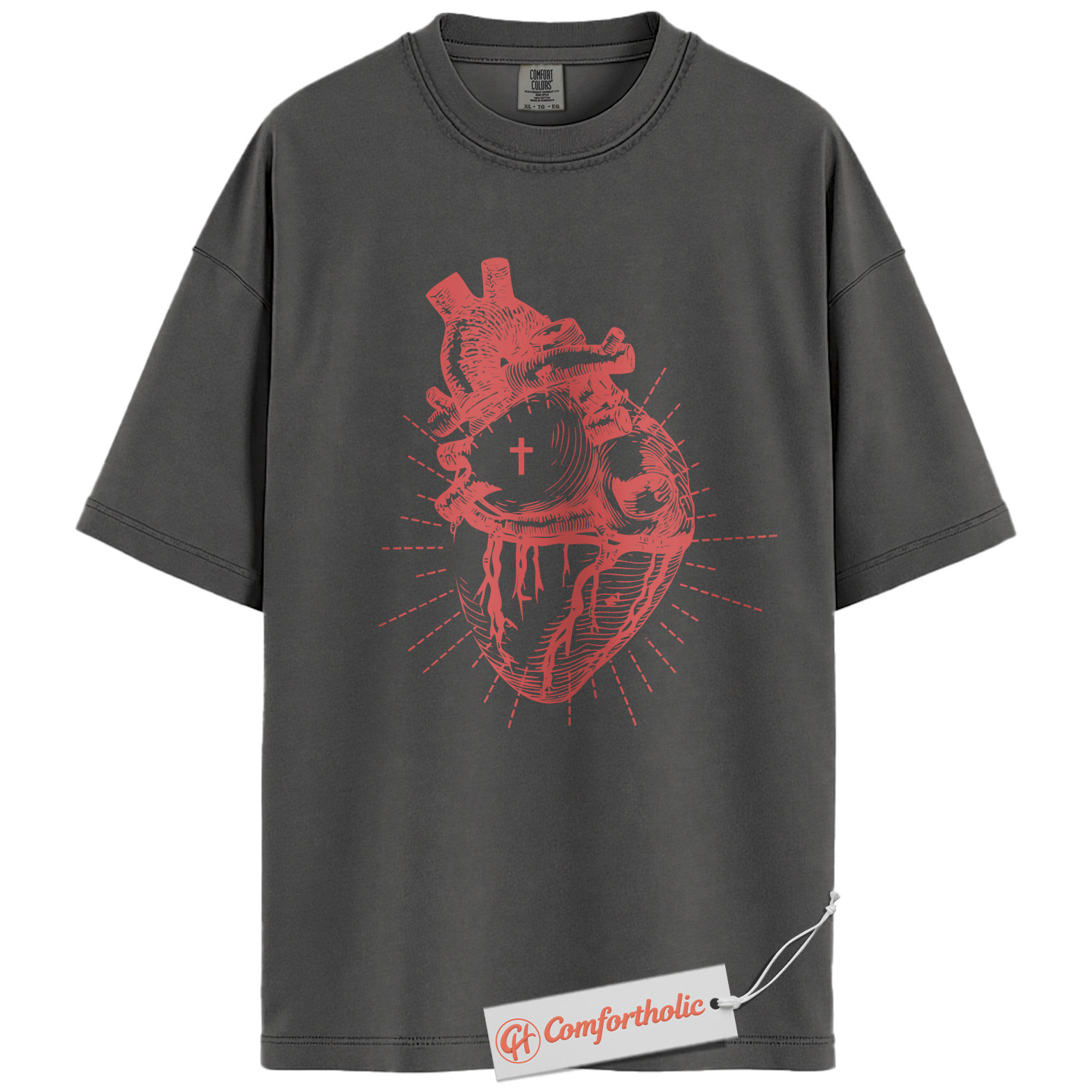 Sacred Heart Shirt, Christian T-Shirt, Religious Cross Graphic Tee, Faith-Based Spiritual Comfort Colors Shirt