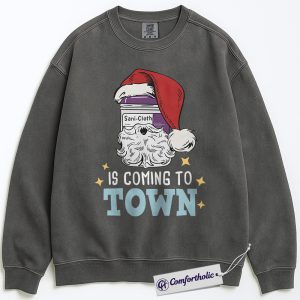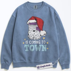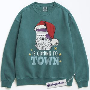 Sani-Cloth Santa Is Coming to Town Sweatshirt, Funny Nurse Christmas Pullover, Medical Worker Holiday Graphic Crewneck, Christmas Gift for Nurses, Comfort Colors Sweatshirt