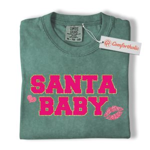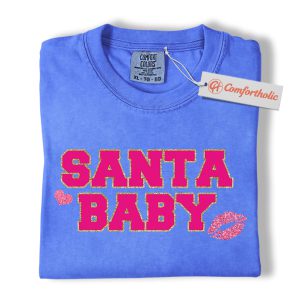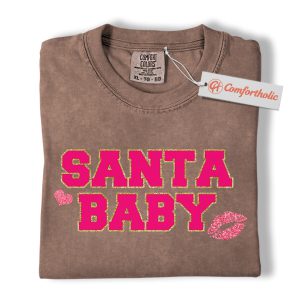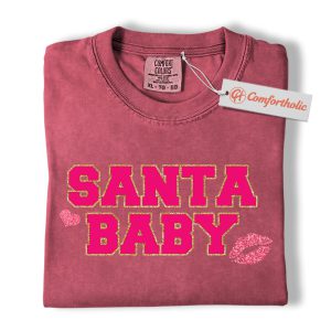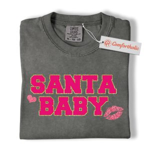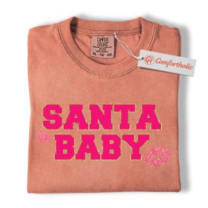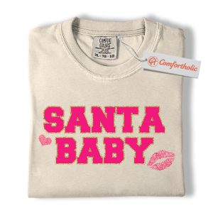 Santa Baby Shirt, Cute Pink Christmas T-Shirt for Women, Girly Holiday Graphic Tee, Christmas Comfort Colors Shirt
